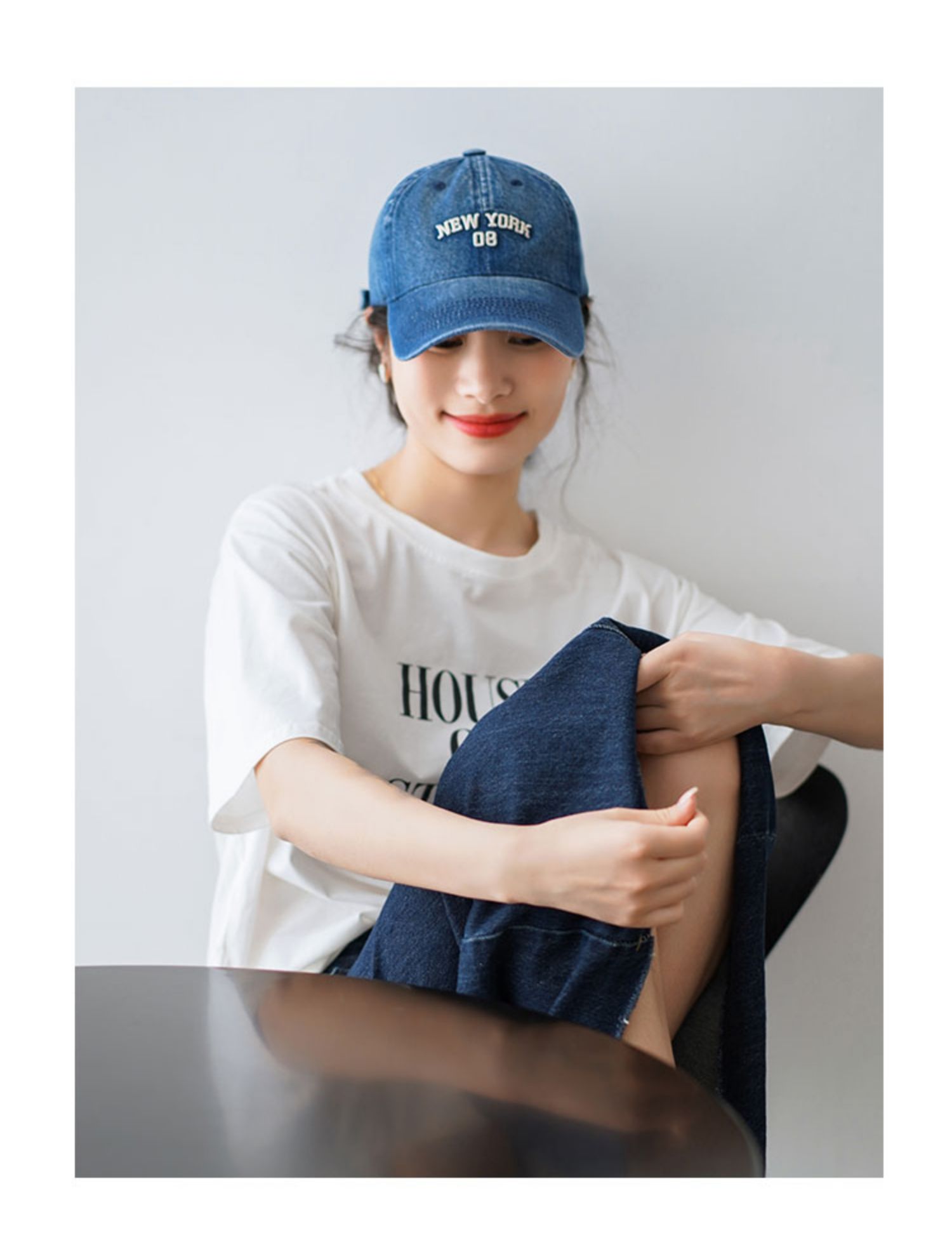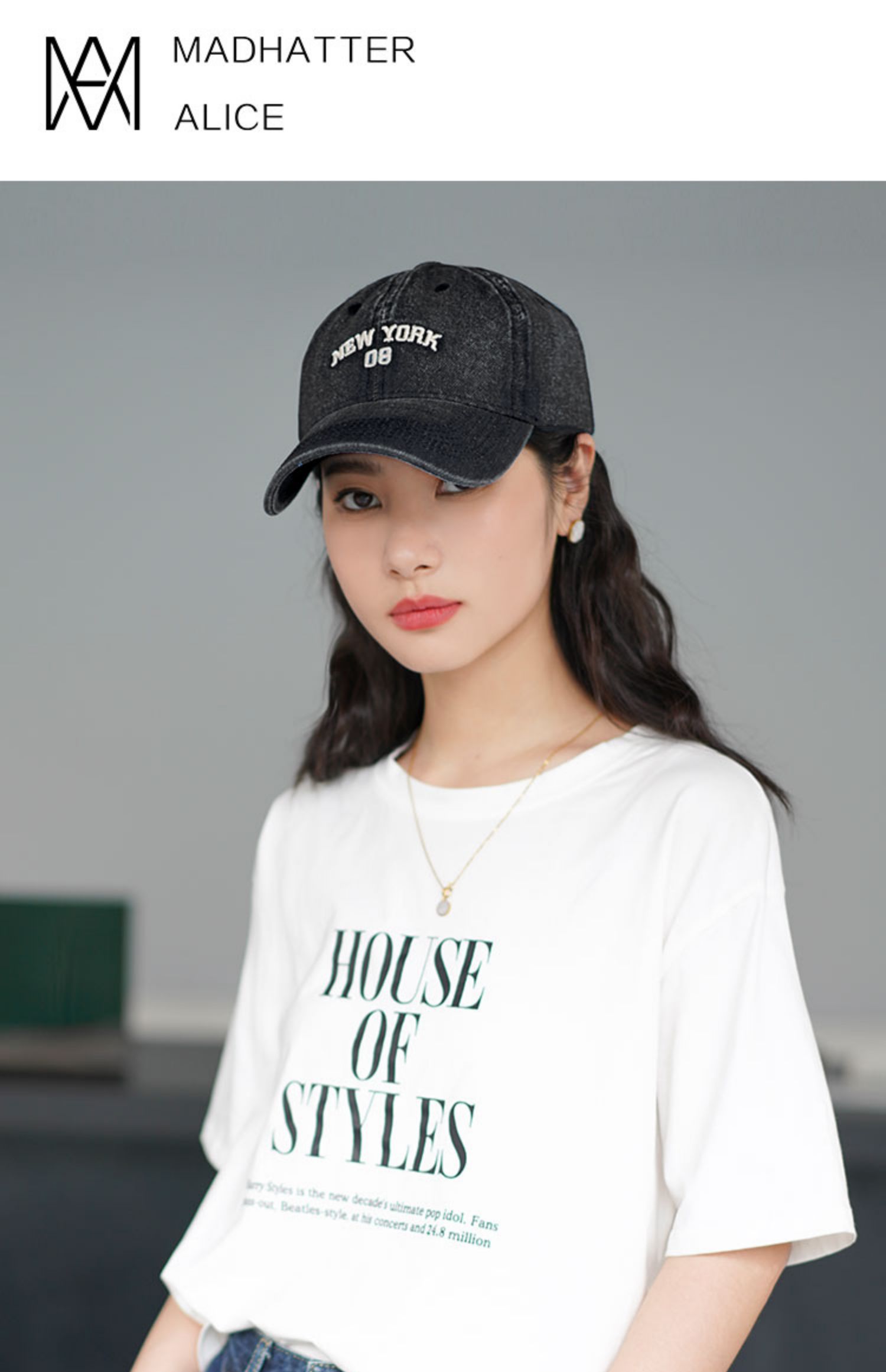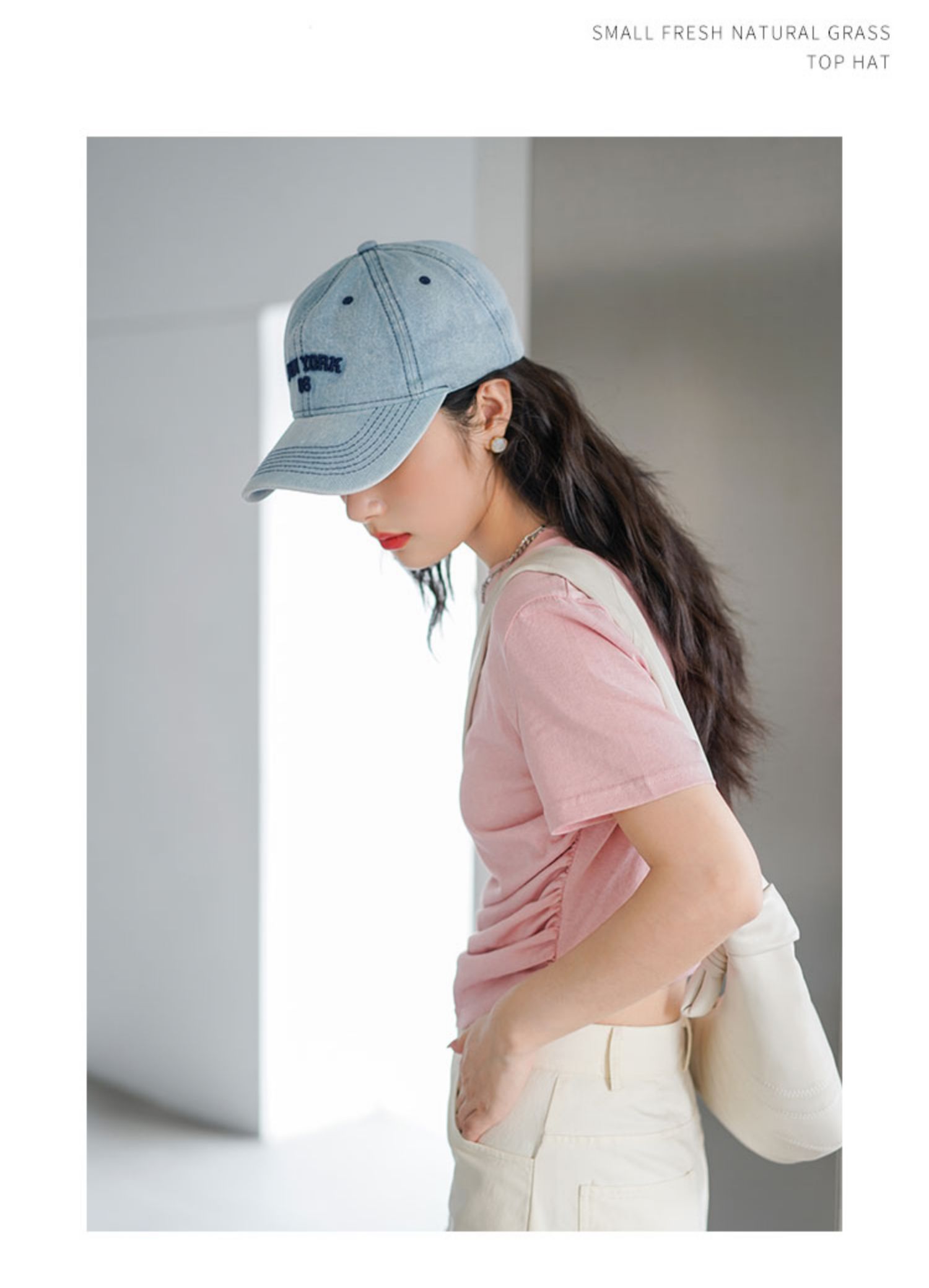 疯帽子 字母刺绣水洗牛仔鸭舌帽子女韩版时尚棒球帽女 春夏防晒帽BY294