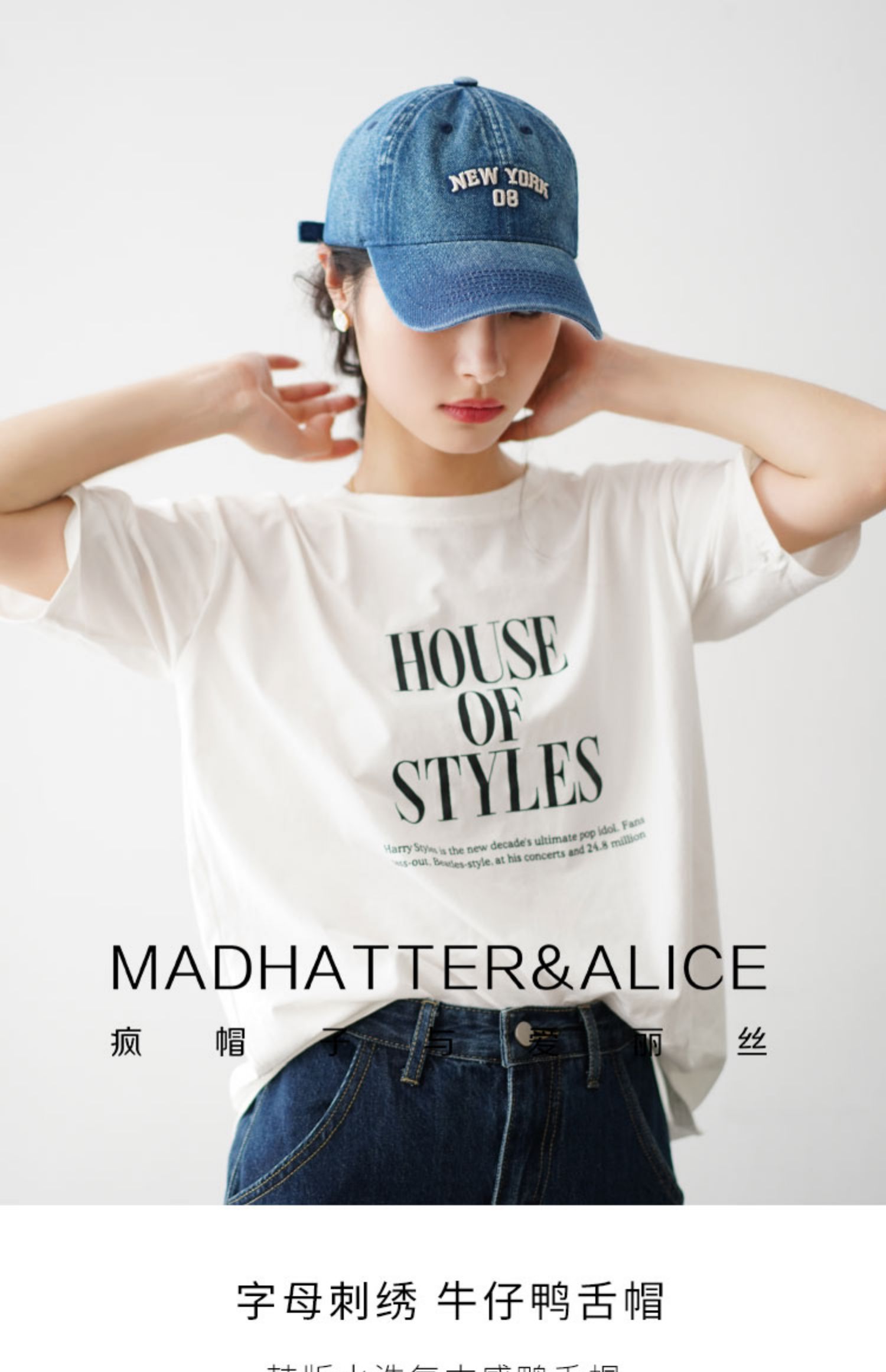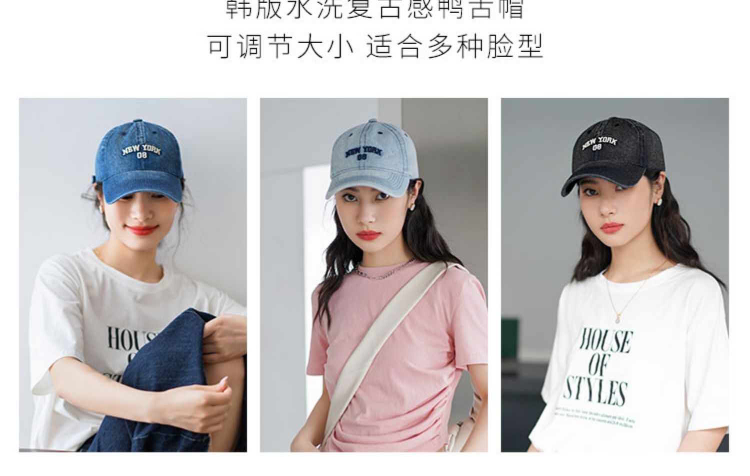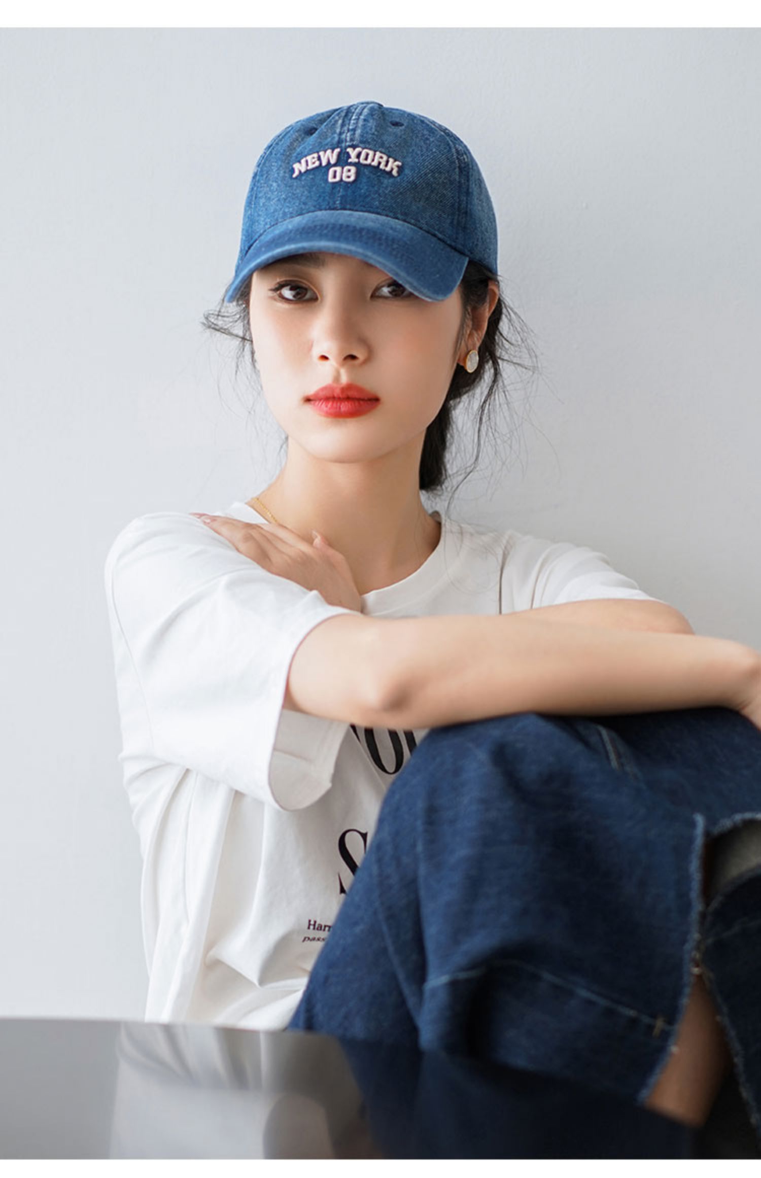 疯帽子 字母刺绣水洗牛仔鸭舌帽子女韩版时尚棒球帽女 春夏防晒帽BY294