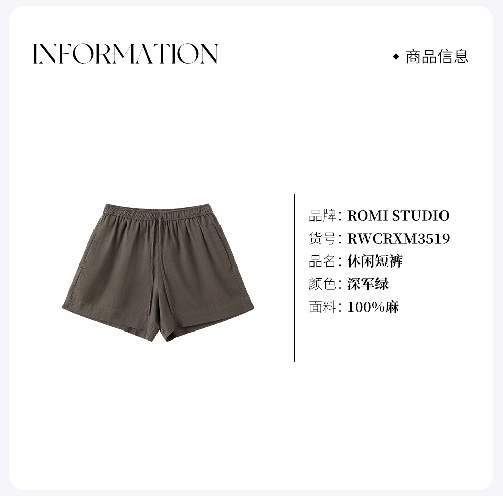 ROMI STUDIO“质感亚麻”100%亚麻轻柔自然褶皱休闲短裤 RWCRXM3519