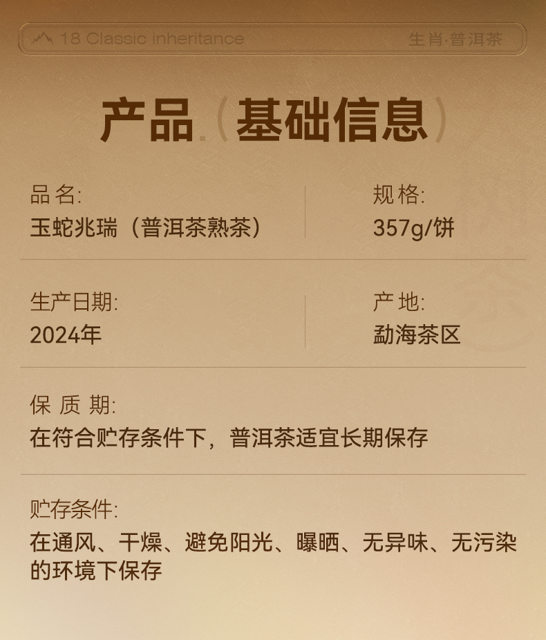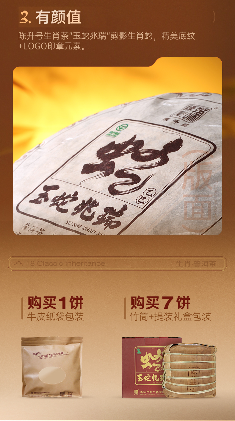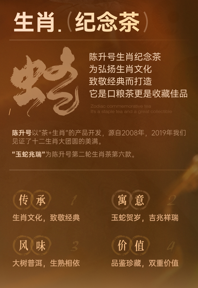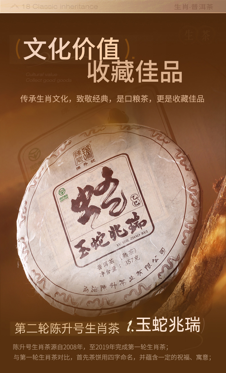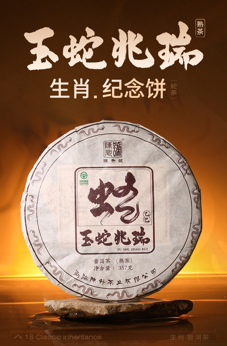 【蛇年生肖茶】陈升号 2025年玉蛇兆瑞357g(熟茶)