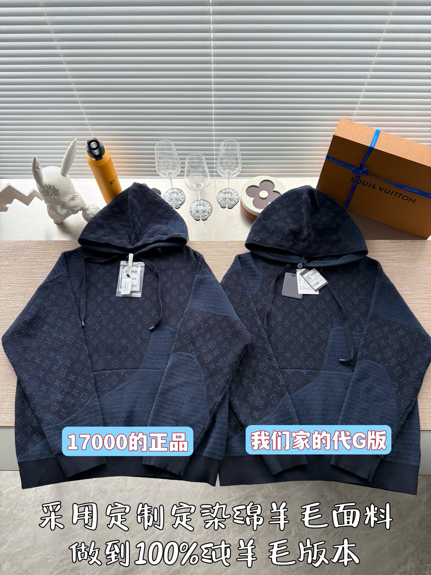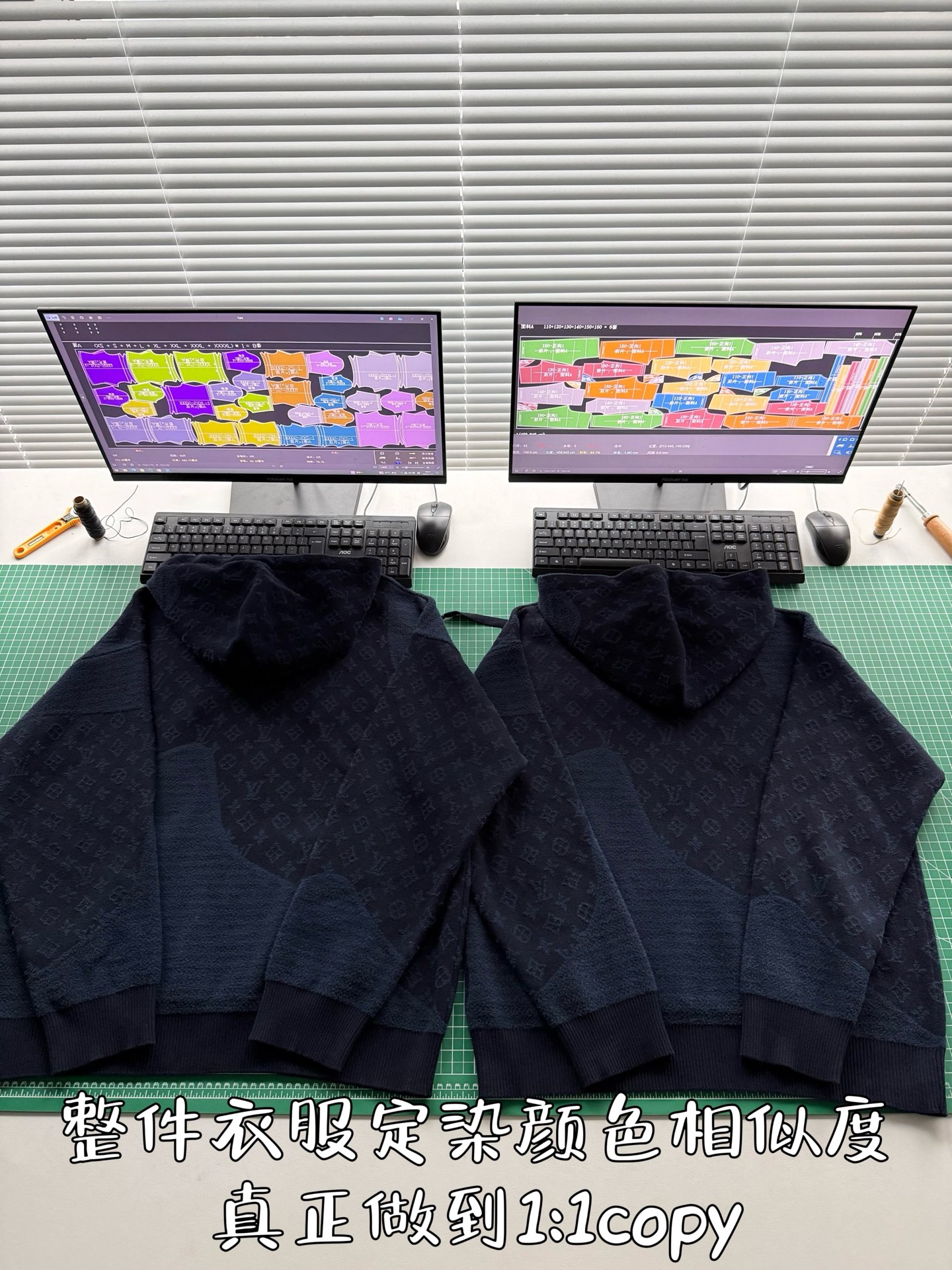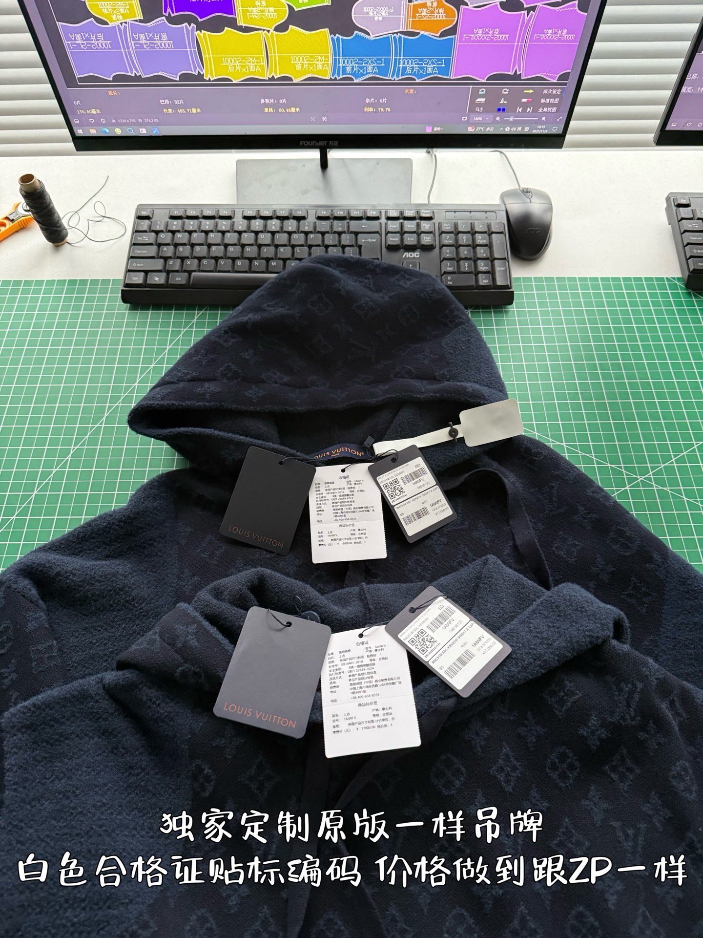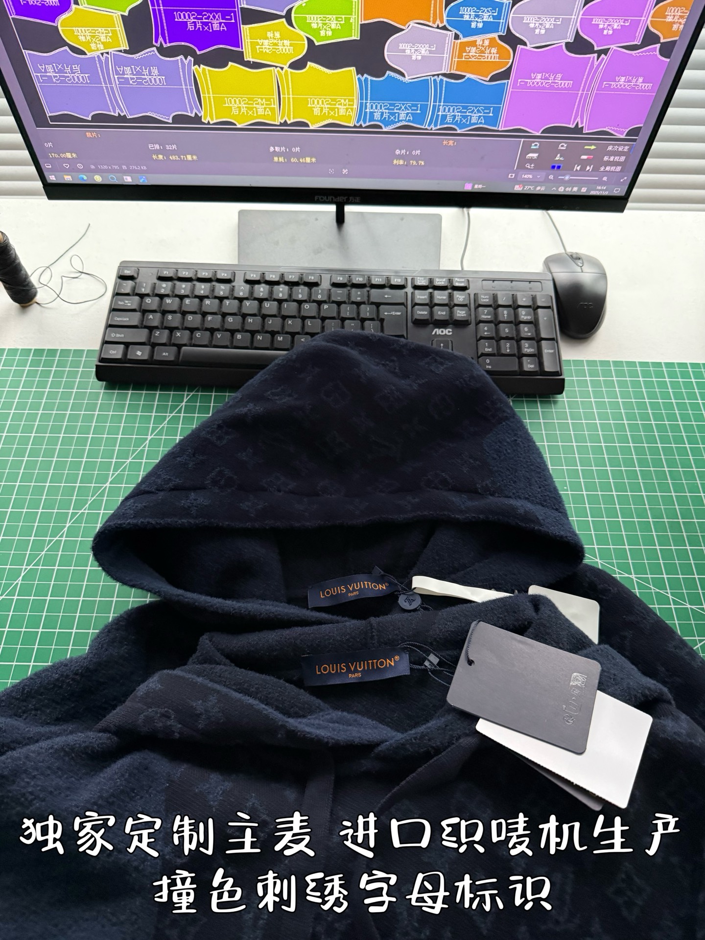 Louis Vuitton25FWMonogram提花连帽卫衣‼️整件衣服17000购买ZP拆解打造,采用定制绵羊毛面料,做到100%纯羊毛版本,意大利制造,连帽抽绳设计,全幅融汇monogram元素和横向丝绒质感条纹设计,前幅袋鼠口袋,定织标志性罗纹袖口 下摆,超紧密度局部编织,真正做到1:1copy 码数:S M L XL