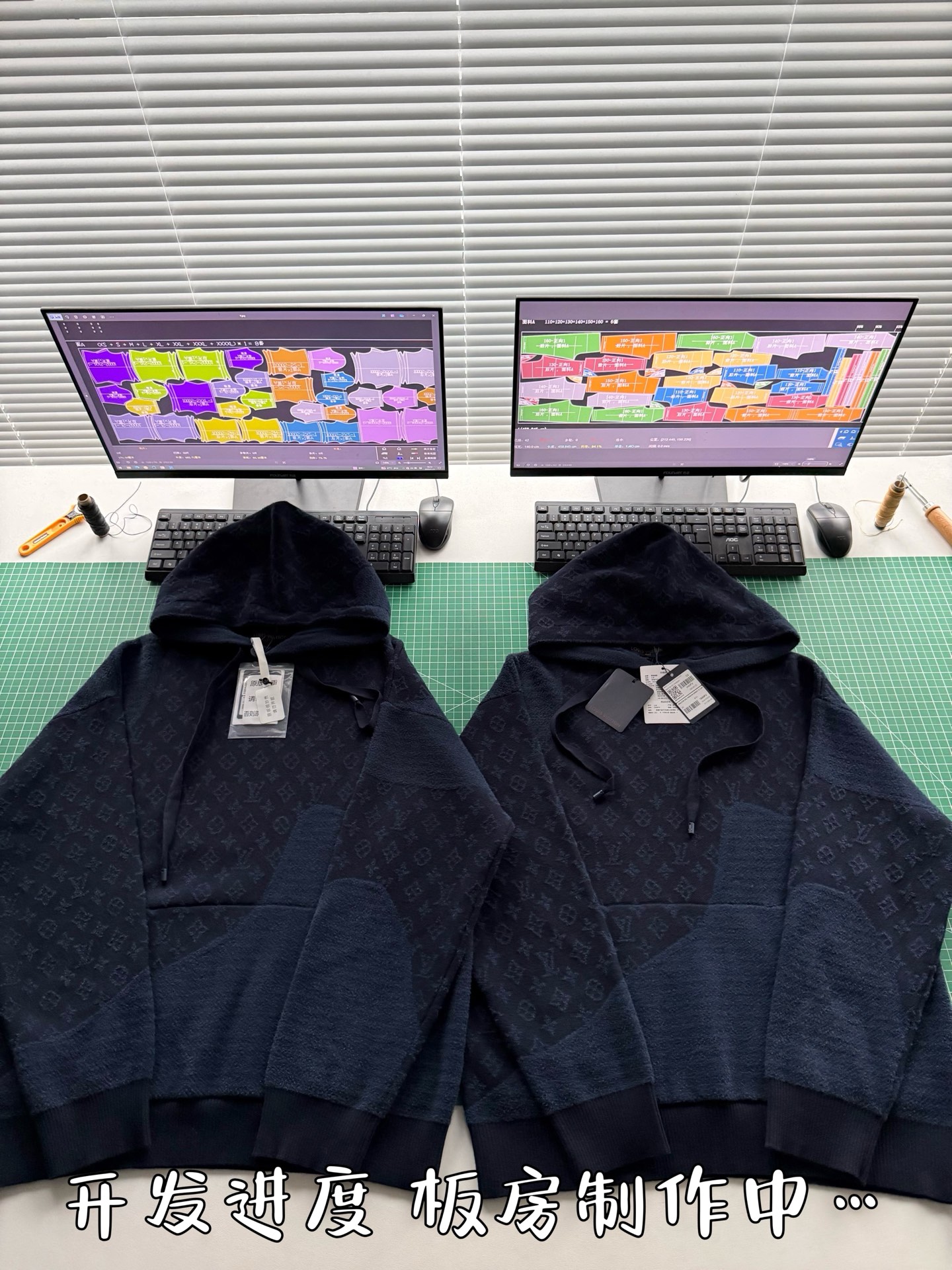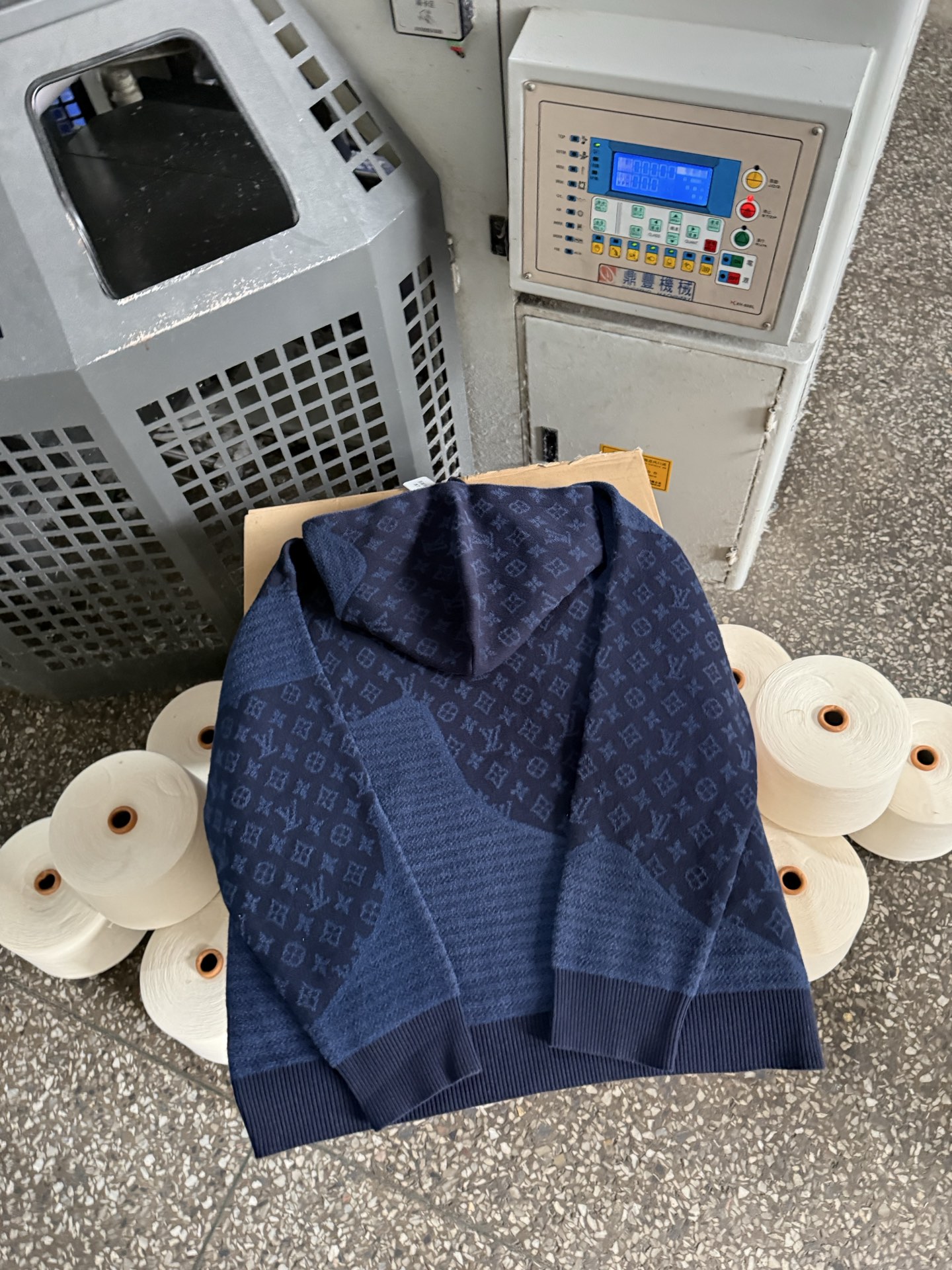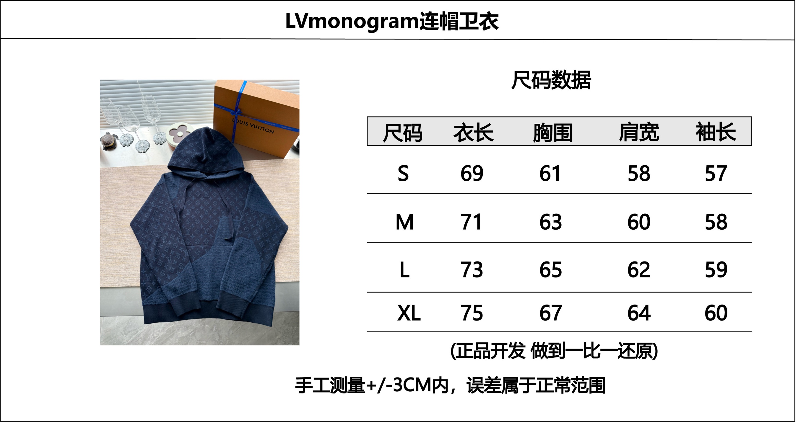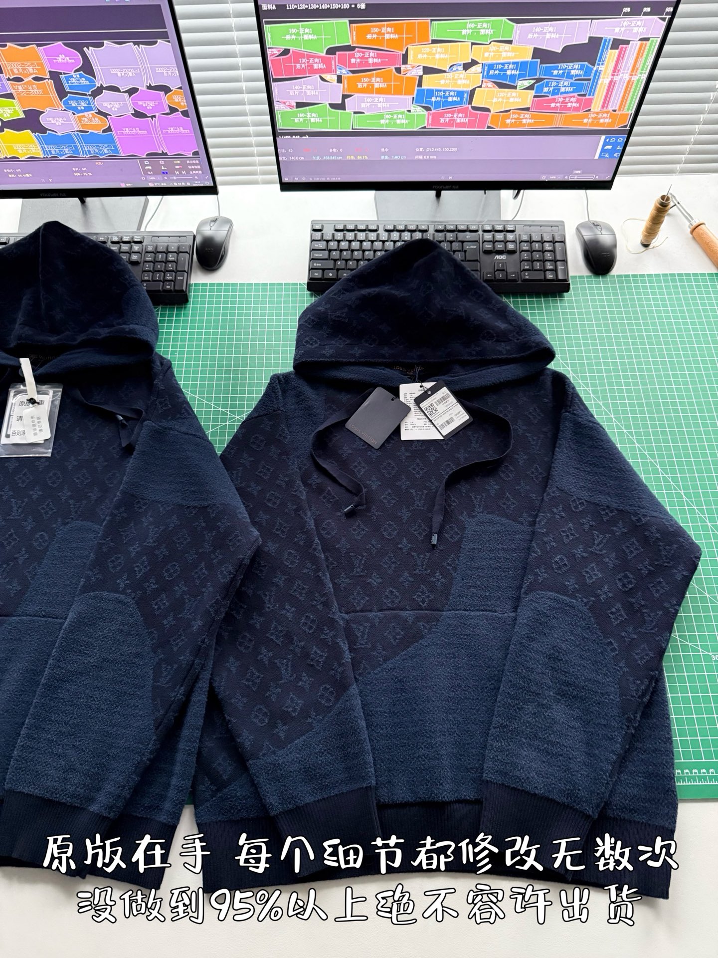 Louis Vuitton25FWMonogram提花连帽卫衣‼️整件衣服17000购买ZP拆解打造,采用定制绵羊毛面料,做到100%纯羊毛版本,意大利制造,连帽抽绳设计,全幅融汇monogram元素和横向丝绒质感条纹设计,前幅袋鼠口袋,定织标志性罗纹袖口 下摆,超紧密度局部编织,真正做到1:1copy 码数:S M L XL