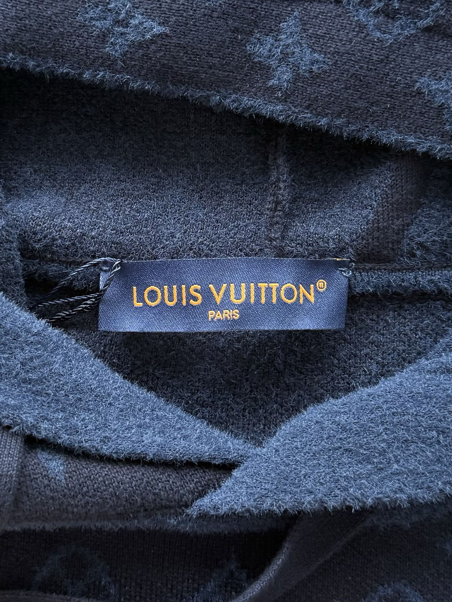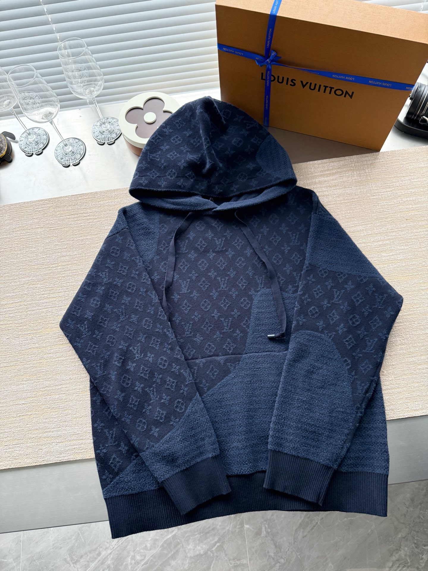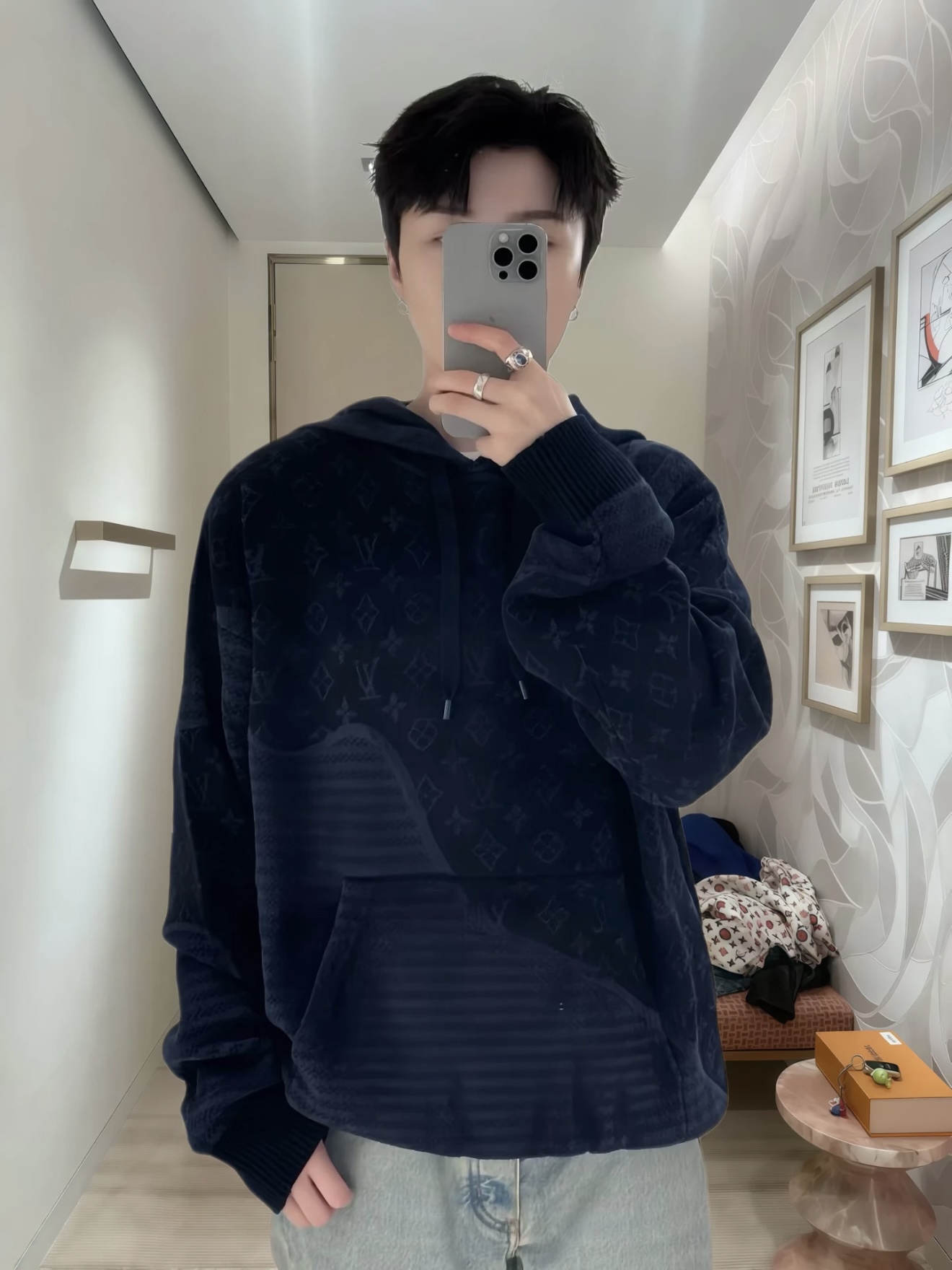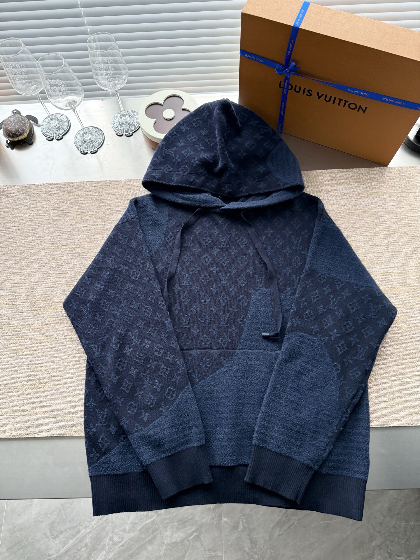 Louis Vuitton25FWMonogram提花连帽卫衣‼️整件衣服17000购买ZP拆解打造,采用定制绵羊毛面料,做到100%纯羊毛版本,意大利制造,连帽抽绳设计,全幅融汇monogram元素和横向丝绒质感条纹设计,前幅袋鼠口袋,定织标志性罗纹袖口 下摆,超紧密度局部编织,真正做到1:1copy 码数:S M L XL