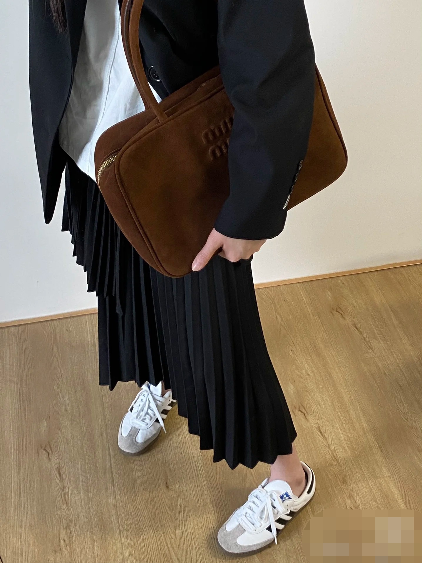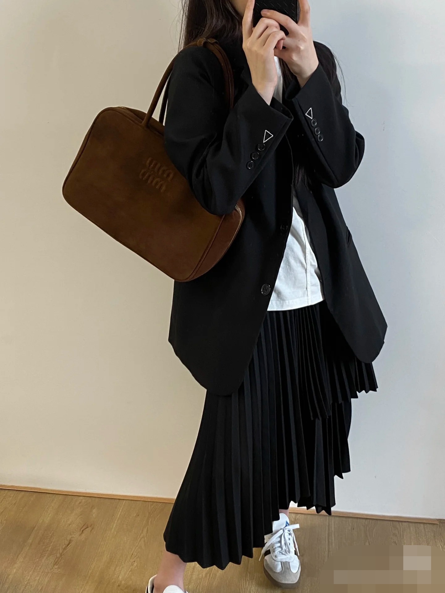 加上美拉德色系,上身效果非常松弛自带慵懒气氛。