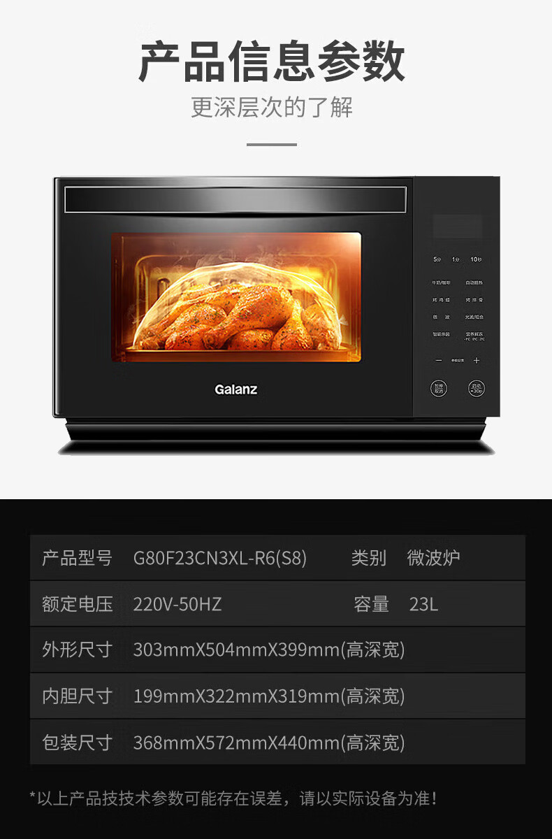 格兰仕(Galanz)微波炉烤箱一体机 下拉门 家用23升大容量800瓦速热电脑操控快速解冻 R6S8 G80F23CN3XL-R6(S8)