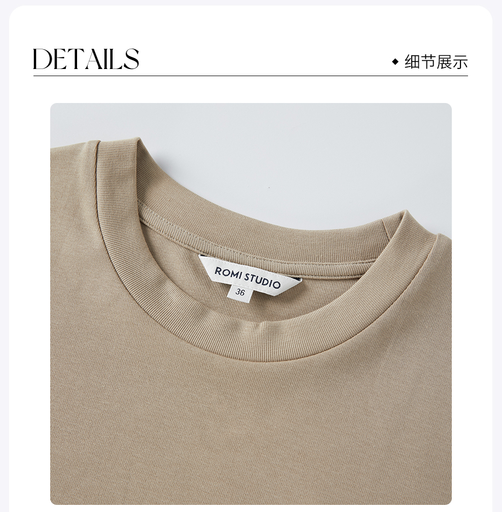ROMI STUDIO“简约亲肤” 百搭透气纯色刺绣圆领小版短袖T恤T3630