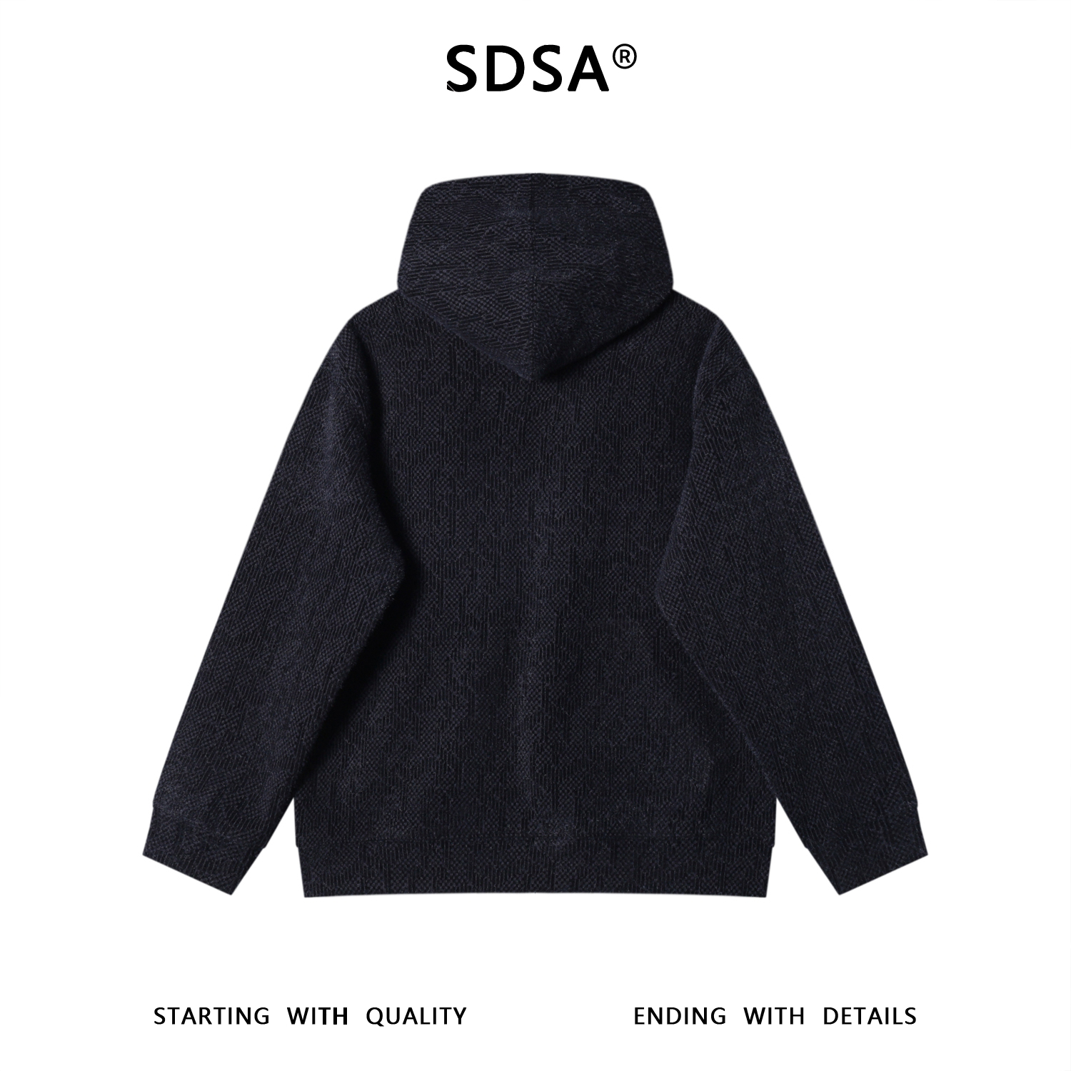 WY1465SDSA男士秋冬新款痞帅男装简约提花暗纹绒毛抽绳连帽卫衣百搭情侣