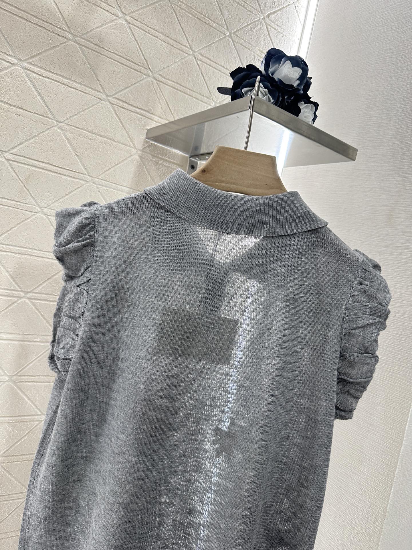 ♥罗家♥2025新品上架 木耳袖翻领针织背心
