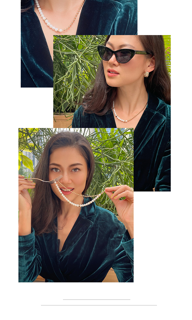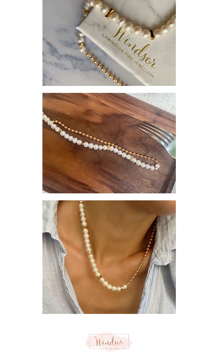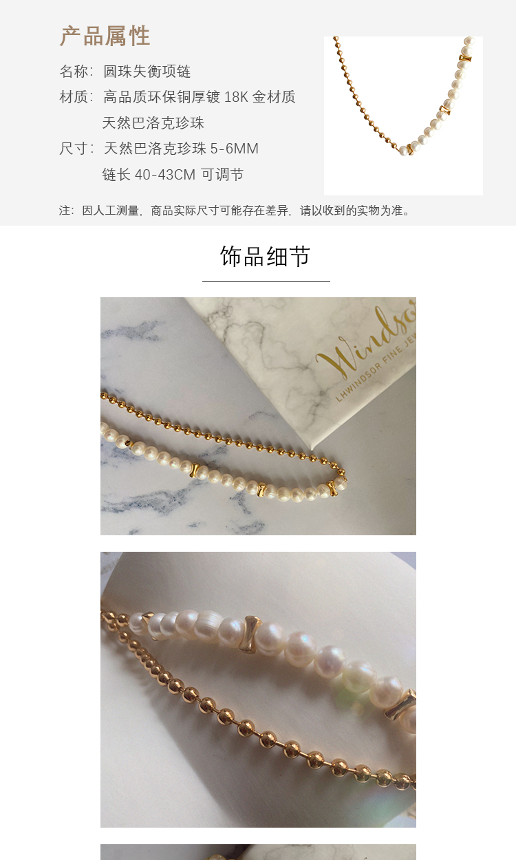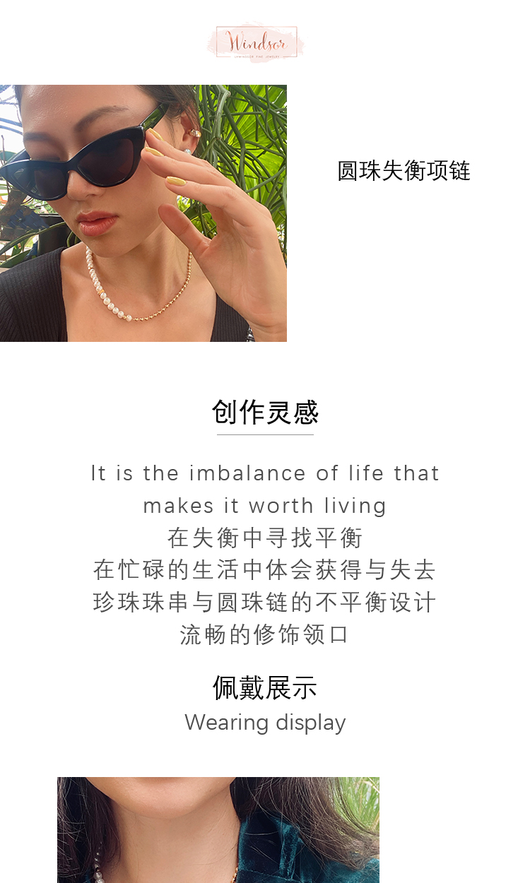 LHWINDSOR 圆珠失衡项链巴洛克珍珠不平衡设计颈链小众轻奢时尚饰品