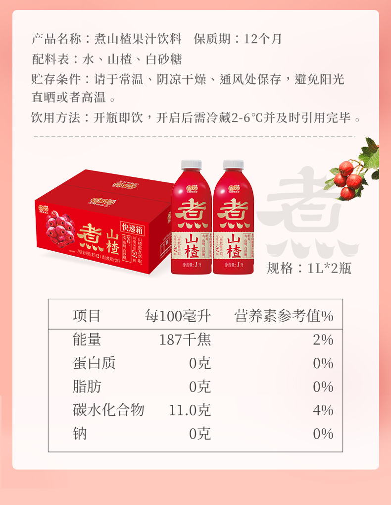 煮山楂山楂汁水果汁大餐解腻饮料原汁草本健康解腻冰镇更爽口1L/350ml