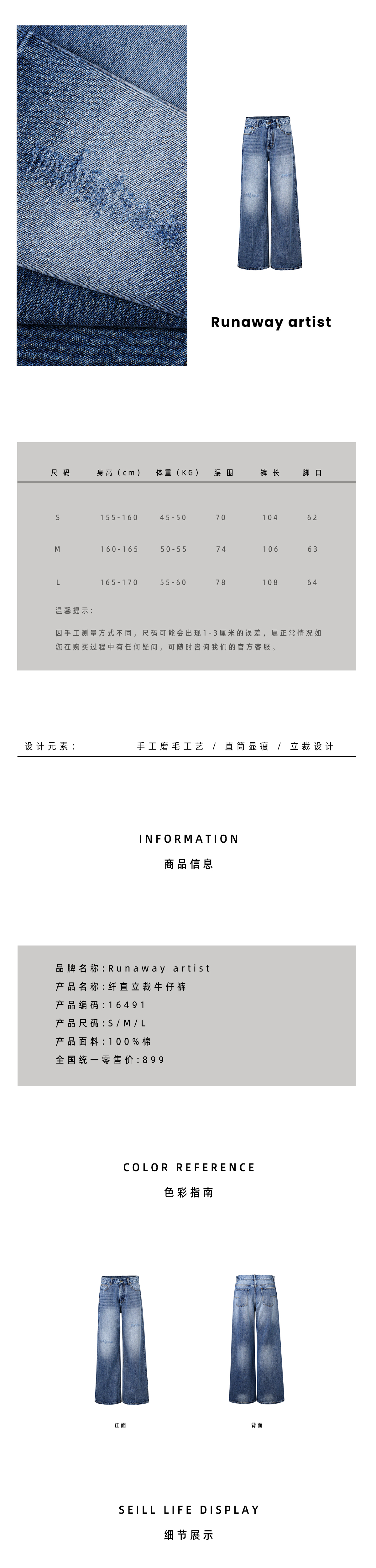 Runaway artist 沈梦辰明星同款原创设计纤直立裁牛仔裤