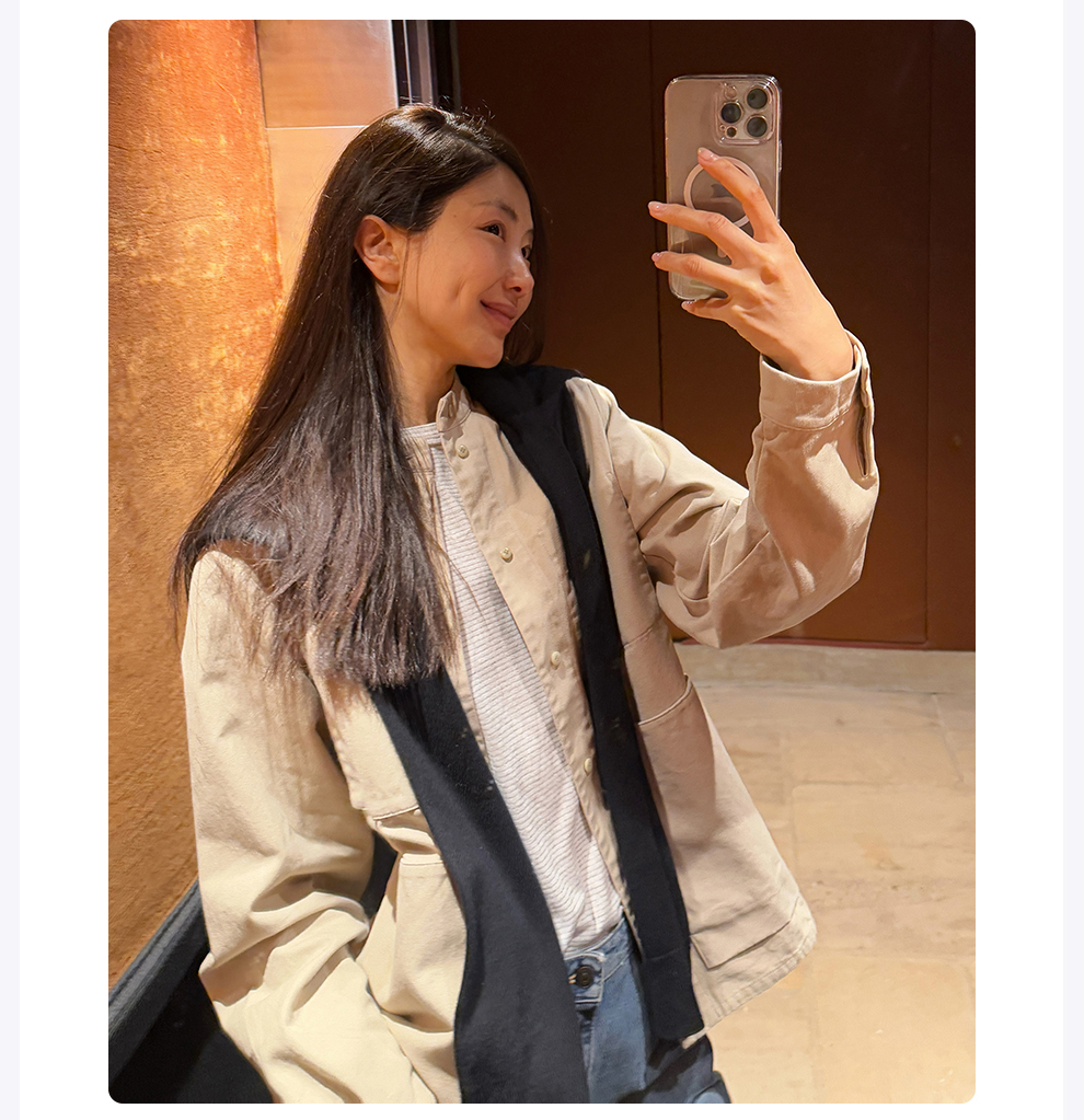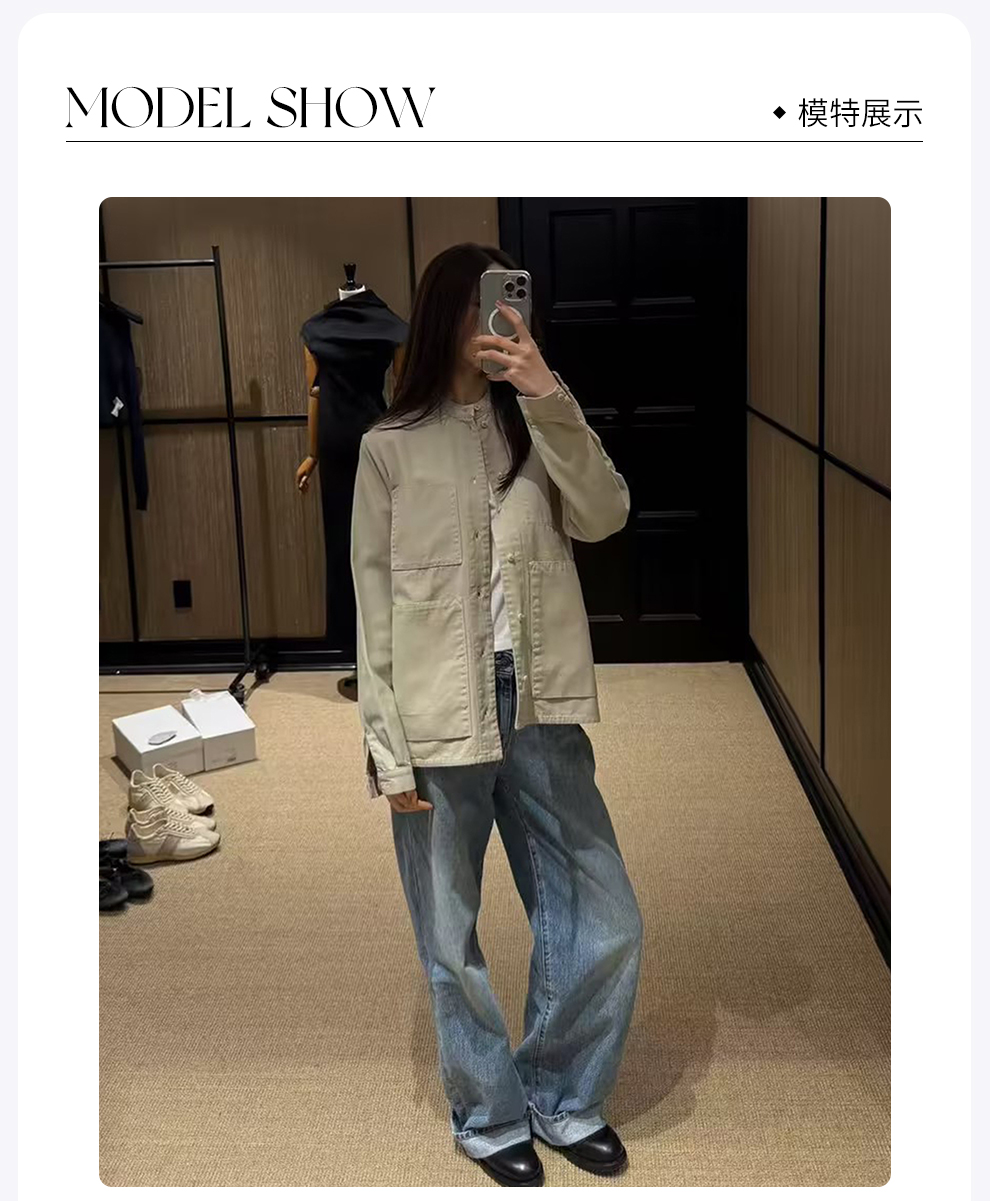 ROMI STUDIO“休闲复古”100%棉柔软多口袋立领宽松外套 RWBWWH1627