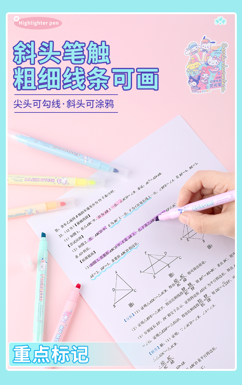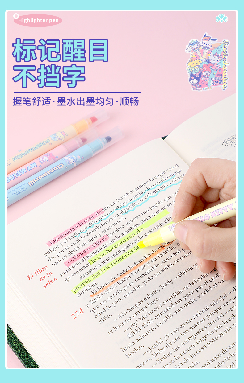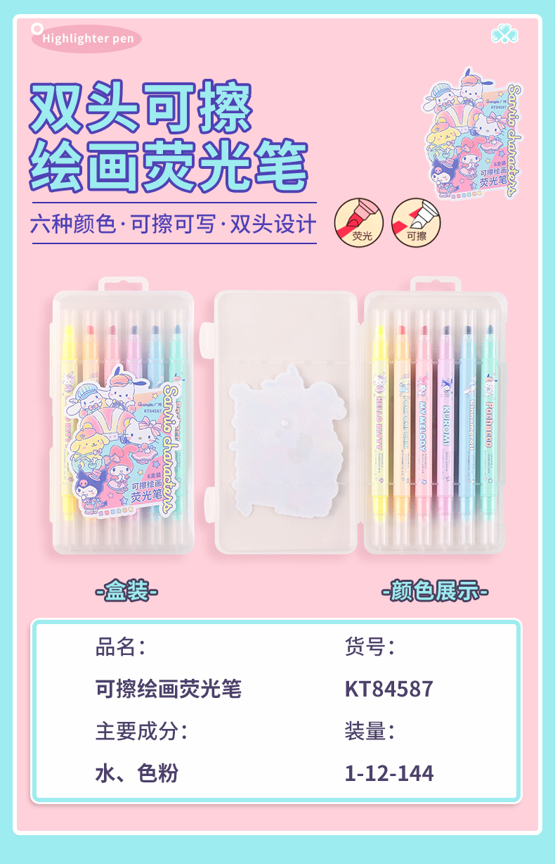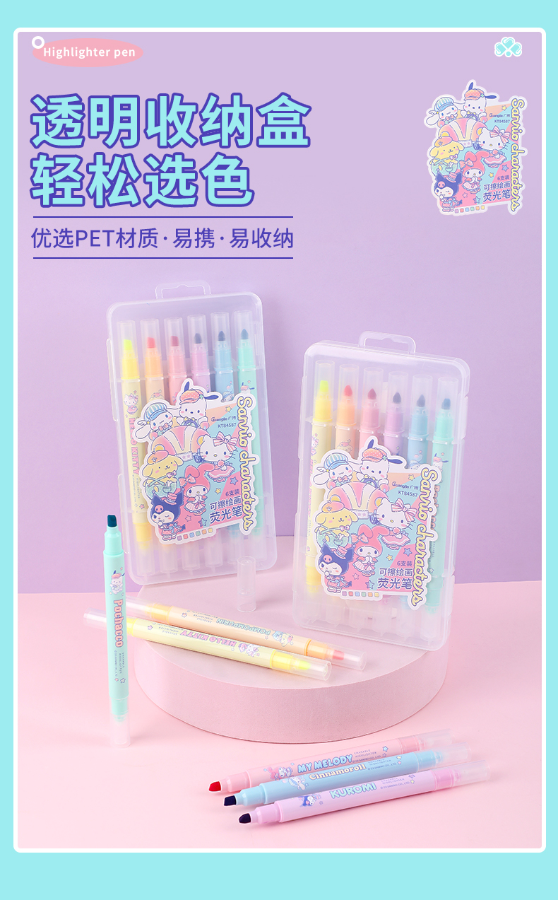 广博三丽鸥系列开学季文具正版授权可擦荧光笔6支装