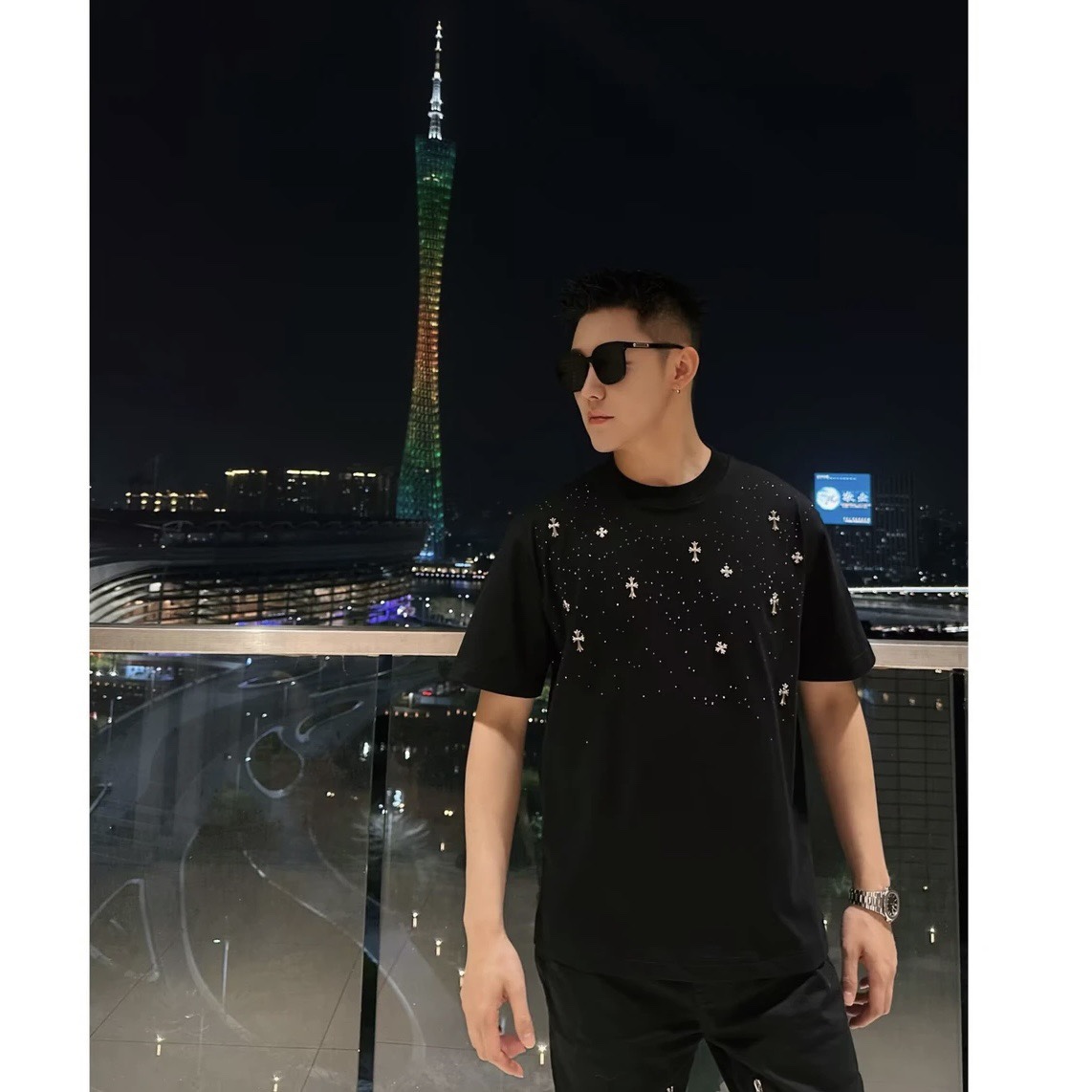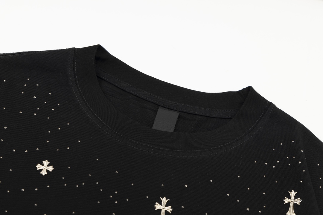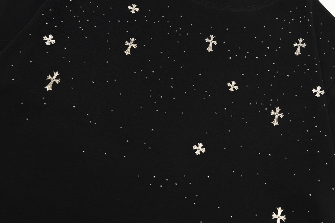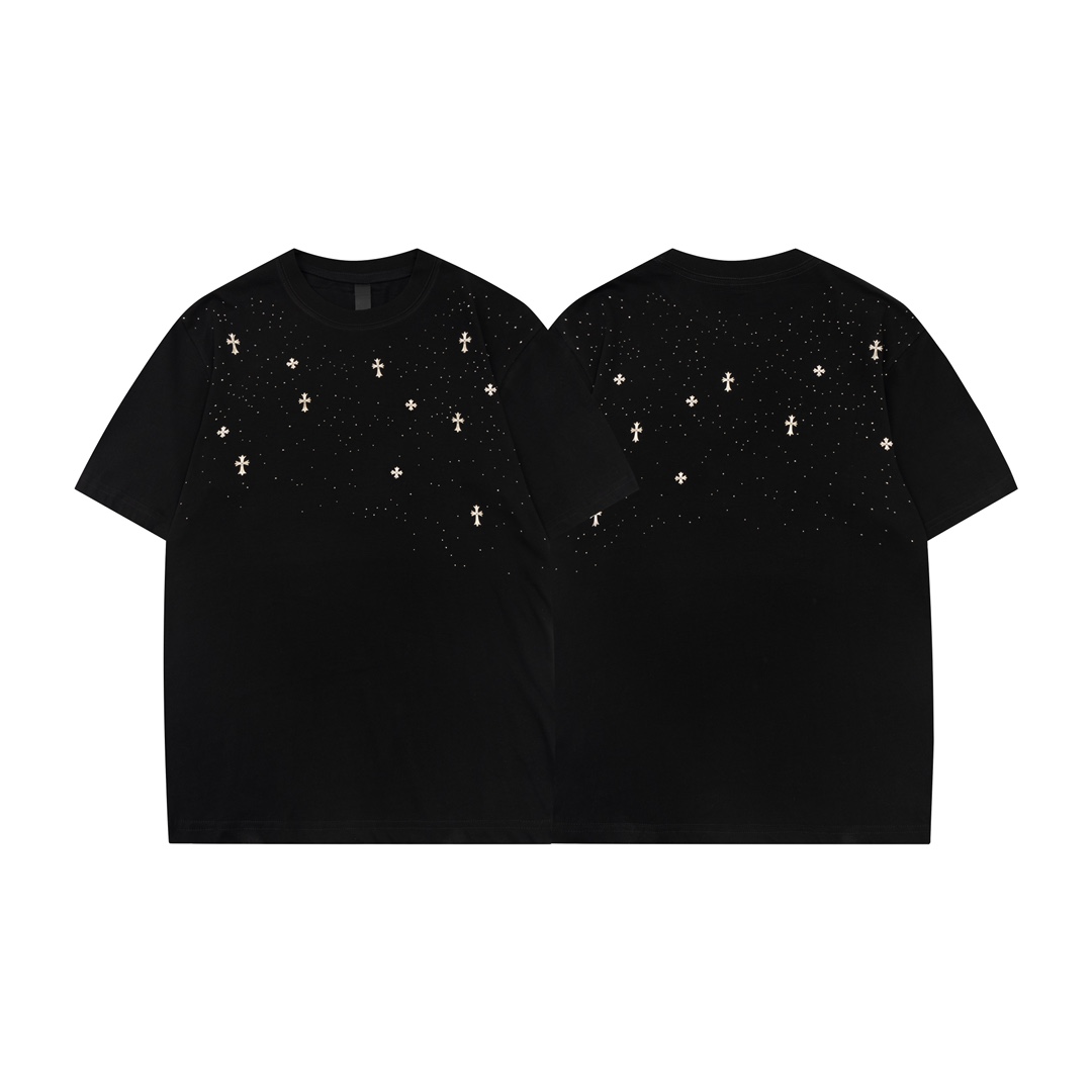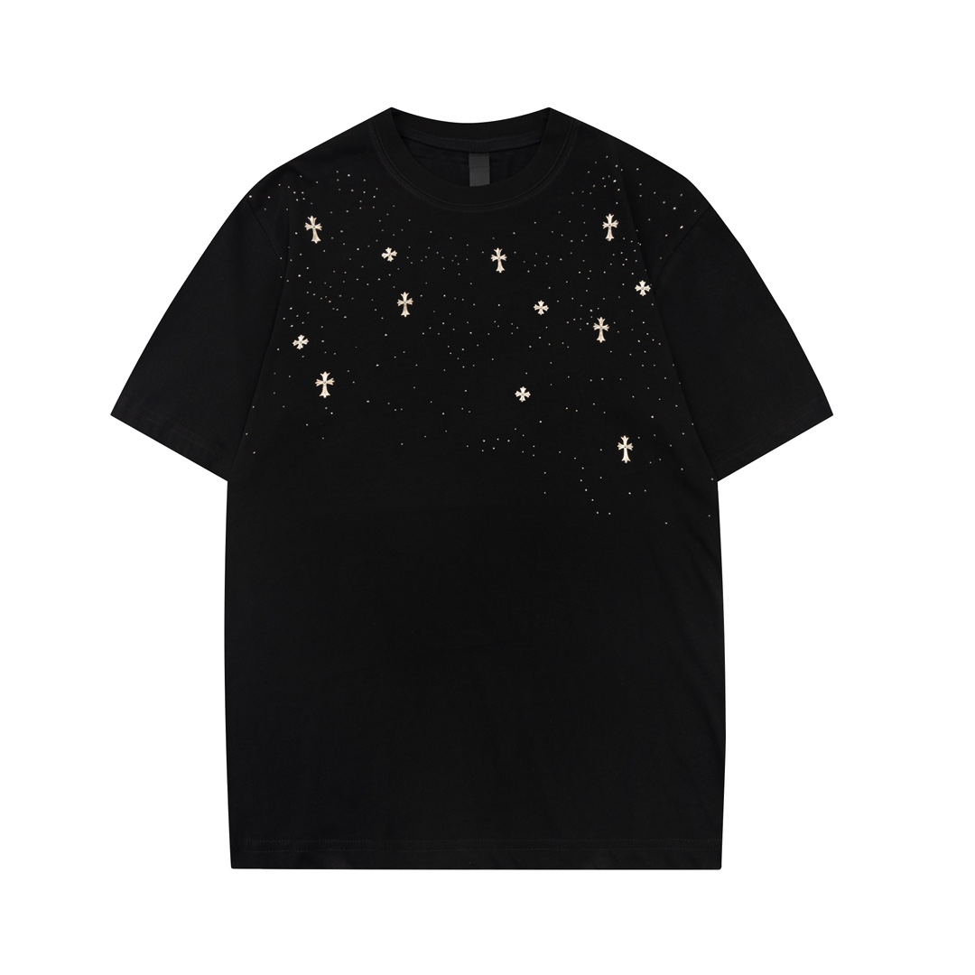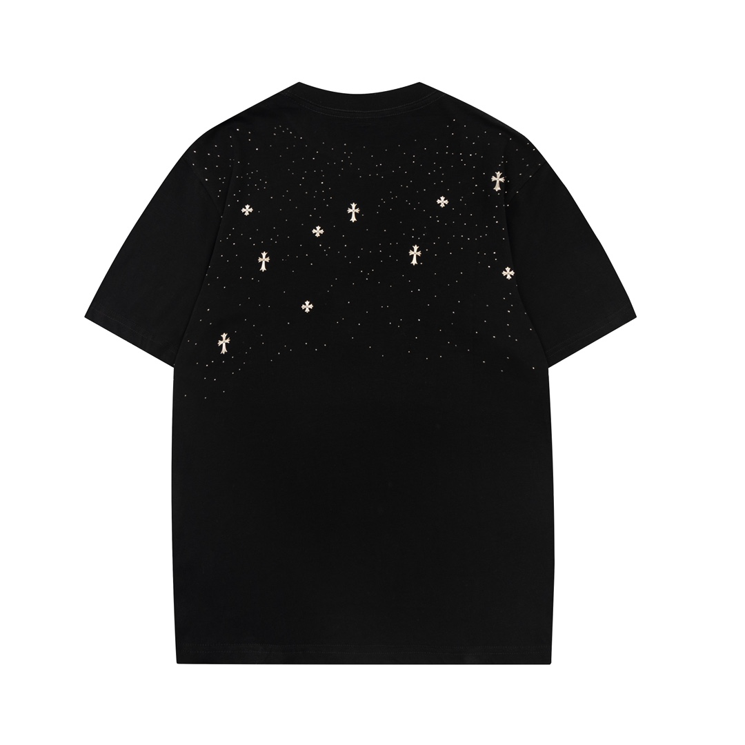 CH克家满天星十字架烫钻水洗做旧复古圆领短袖! 【男女同款 官网热门爆款|网红明星同款】