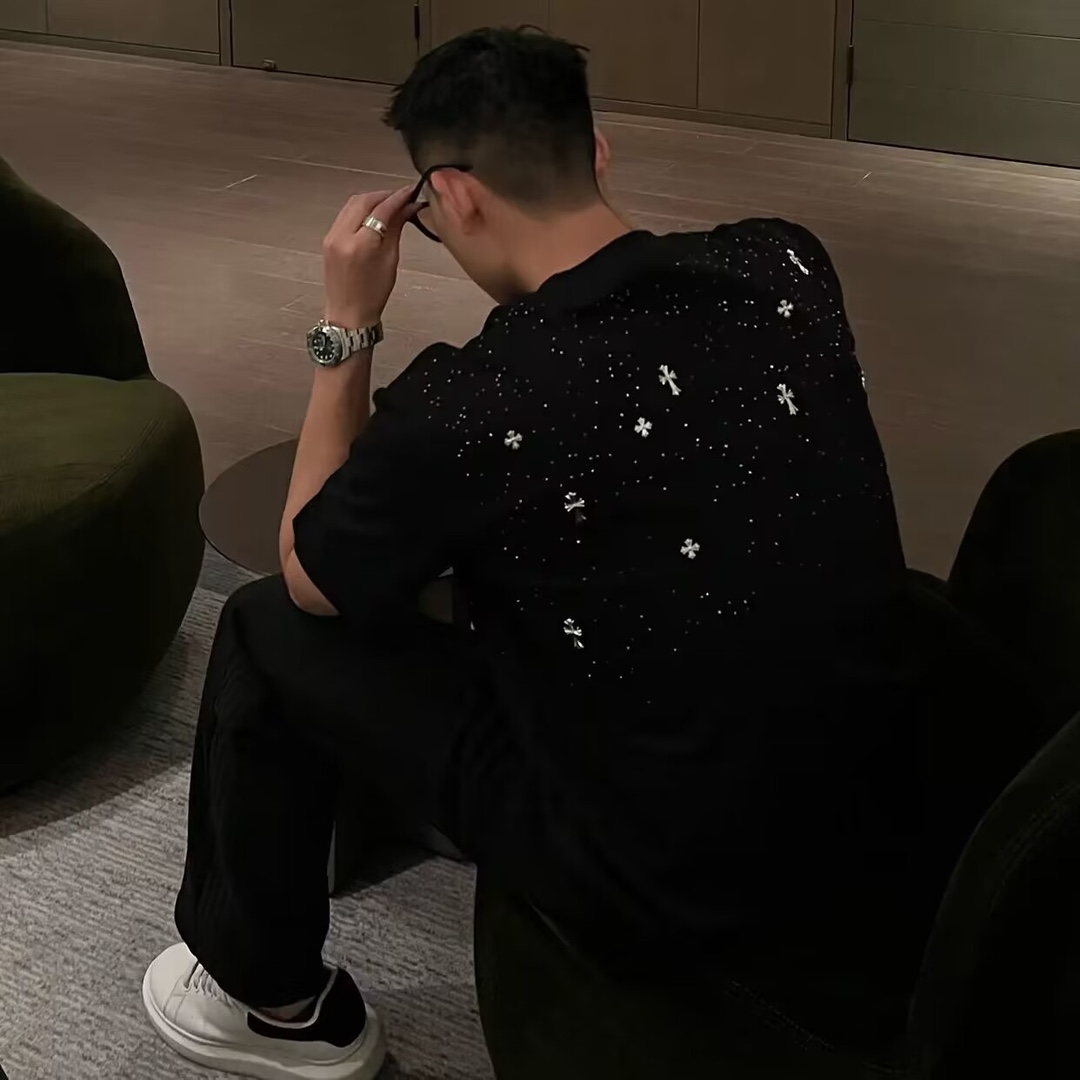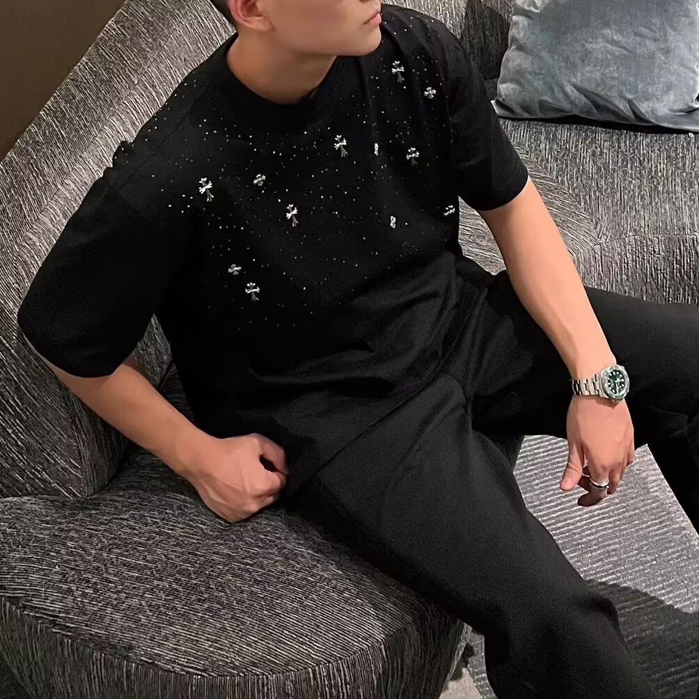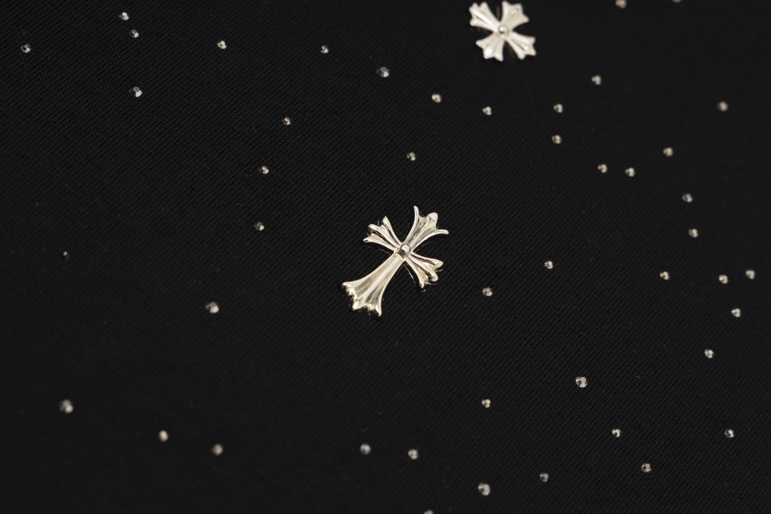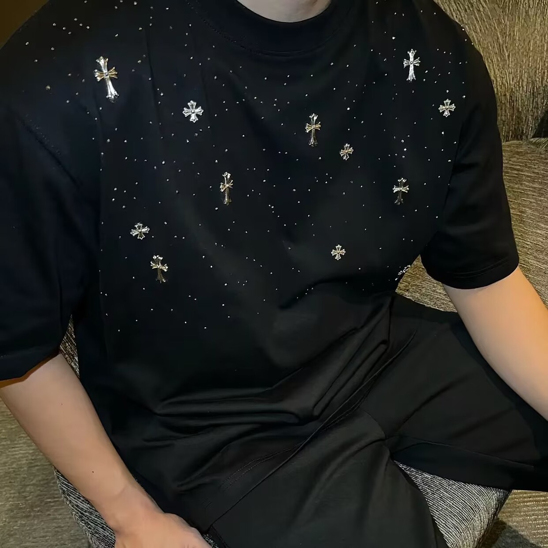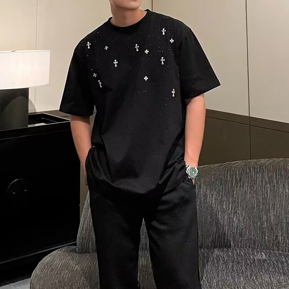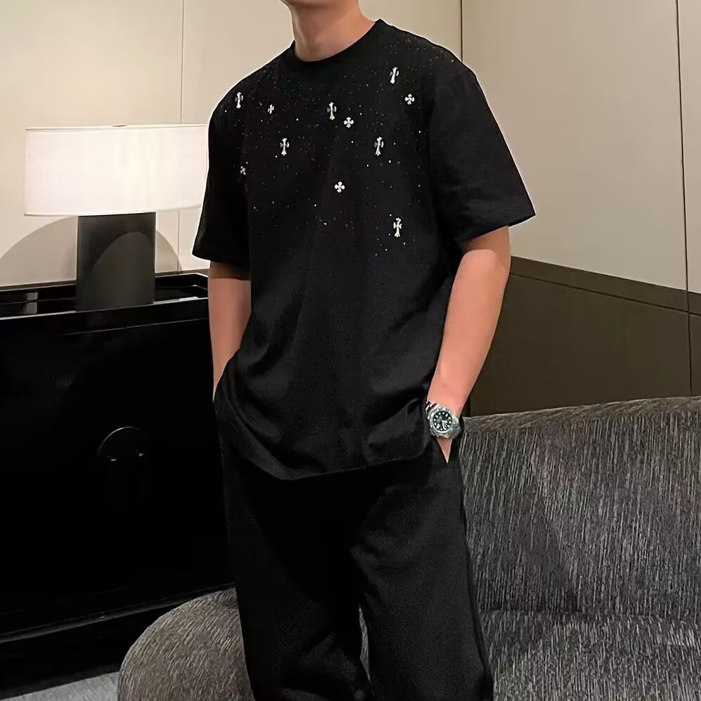 CH克家满天星十字架烫钻水洗做旧复古圆领短袖! 【男女同款 官网热门爆款|网红明星同款】