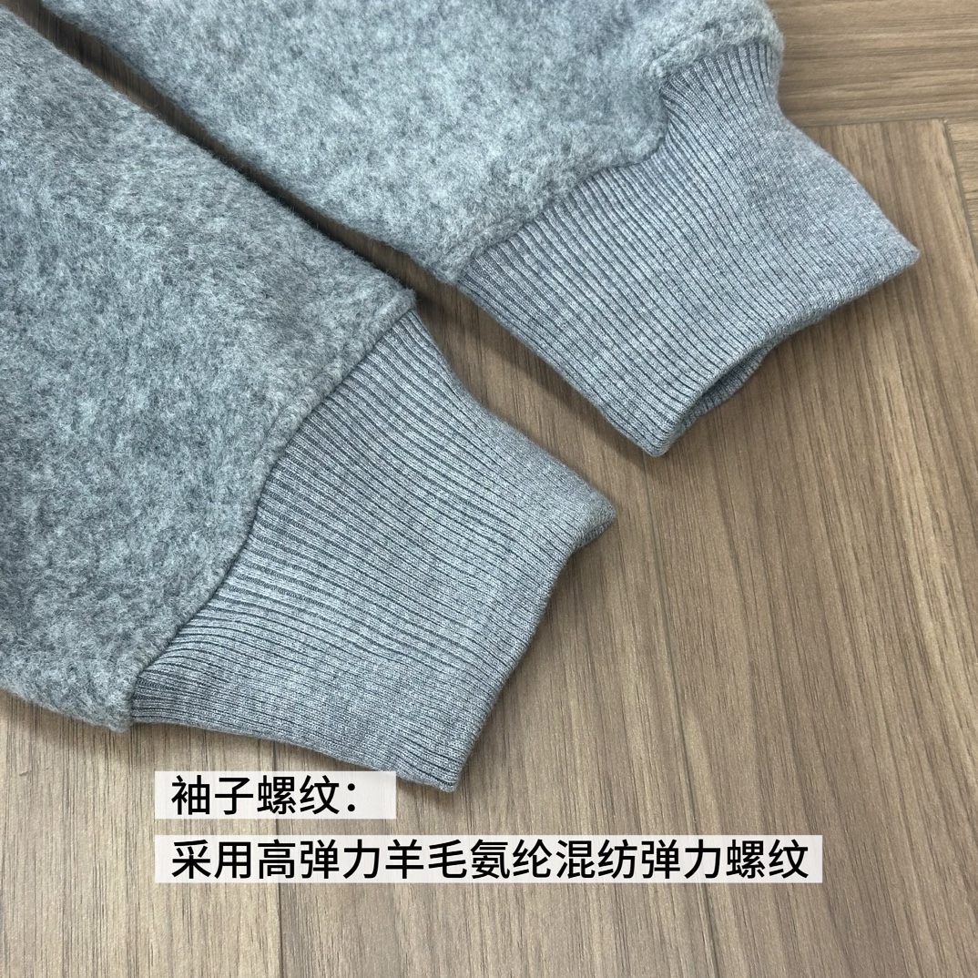 袖子螺纹:采用高弹力羊毛氨纶混纺弹力螺纹