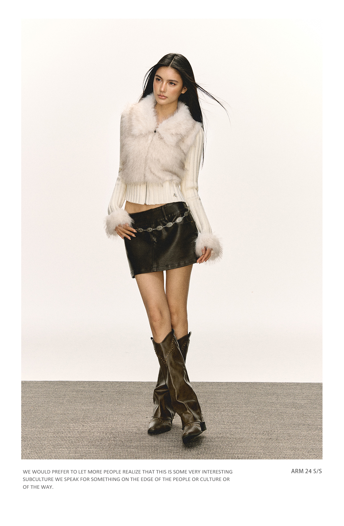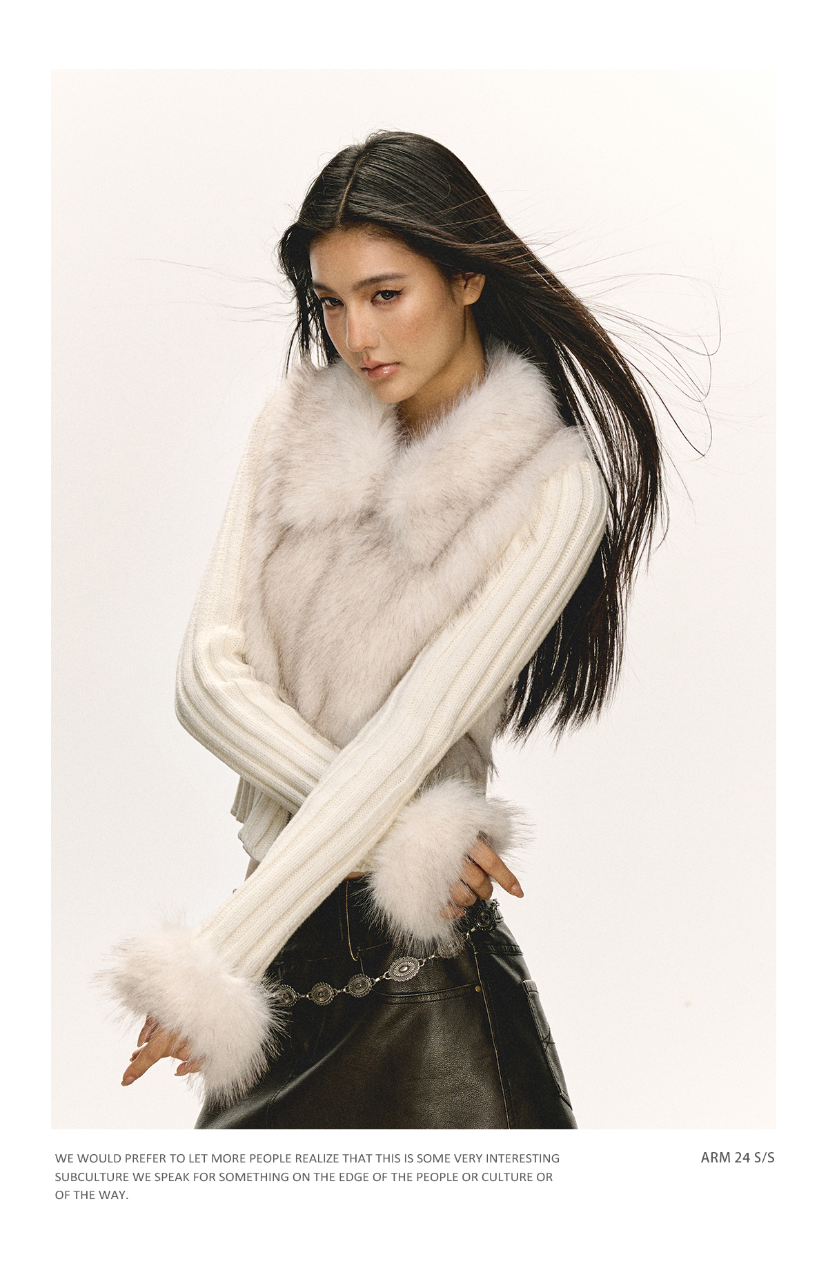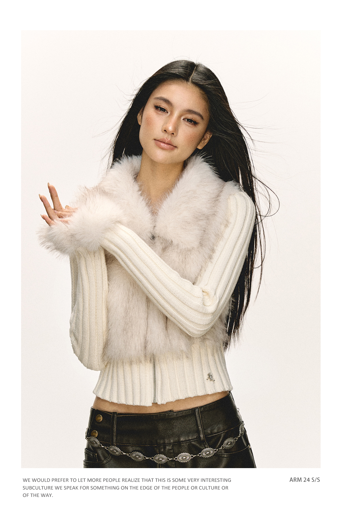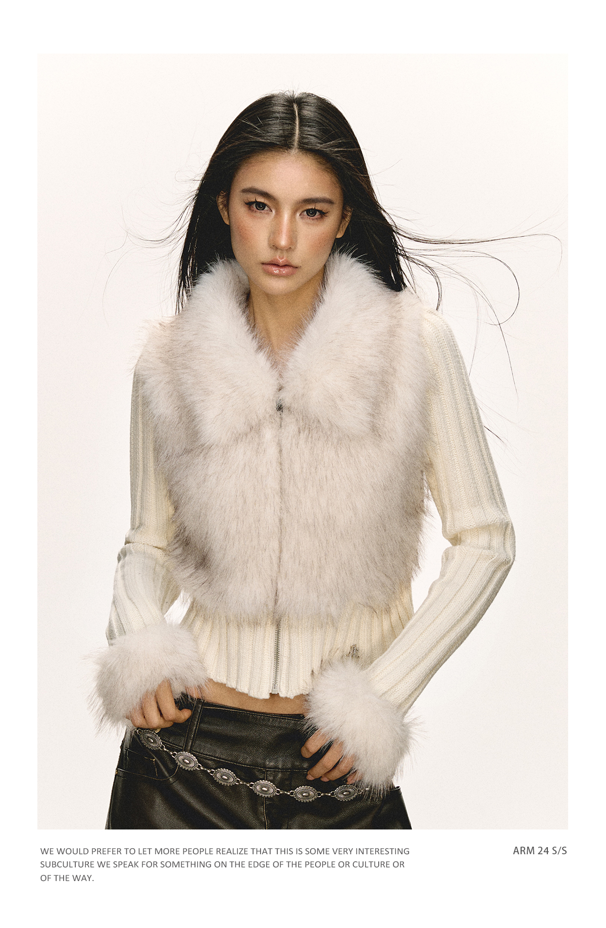 Ariseism 美式复古设计感拼接毛毛毛衣外套女秋冬新款修身上衣