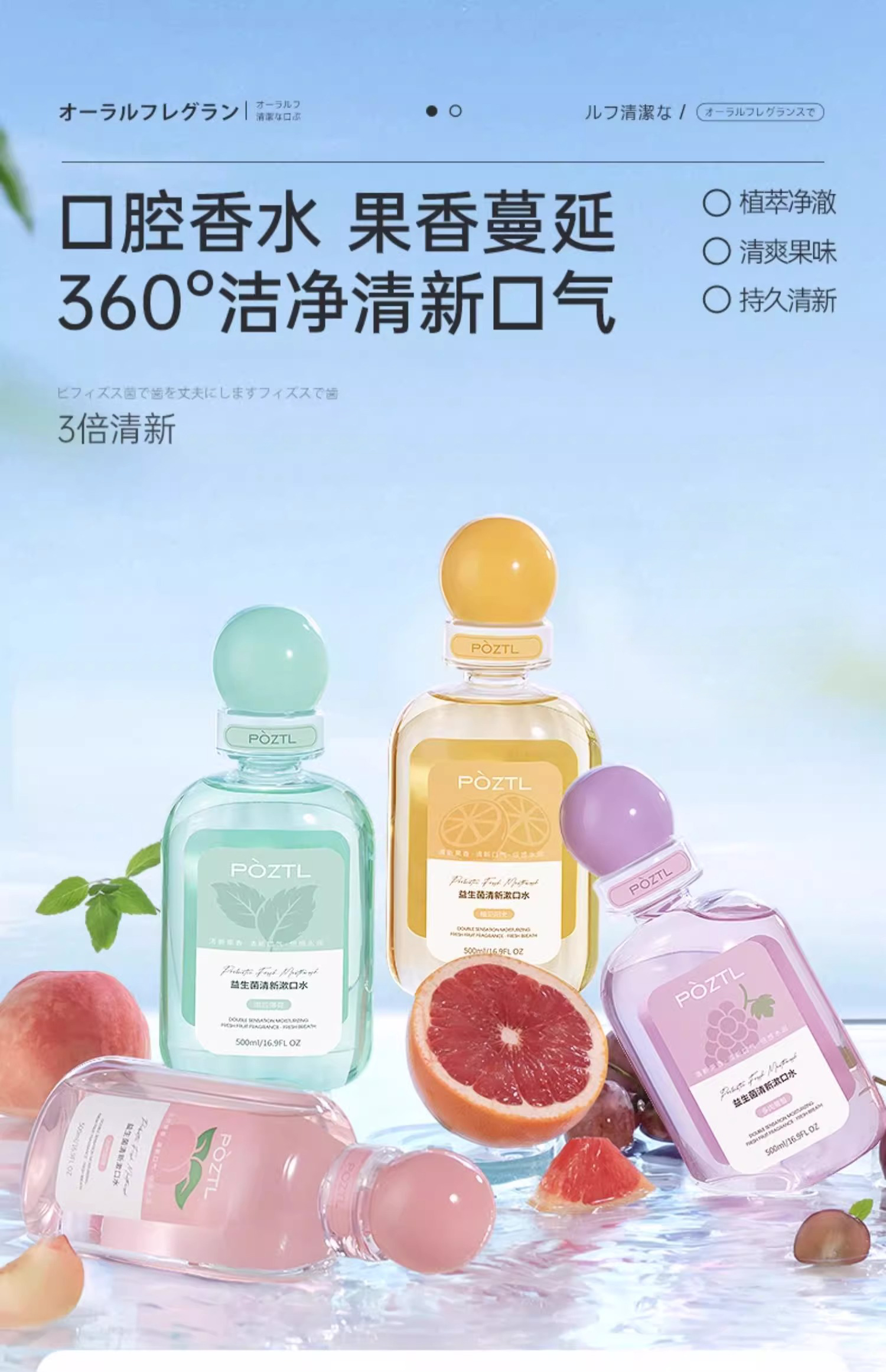 【买一送一,到手500ml*2瓶】POZTL泊紫汀兰 大容量益生菌漱口水 | 四个口味 清洁口腔 清新口气