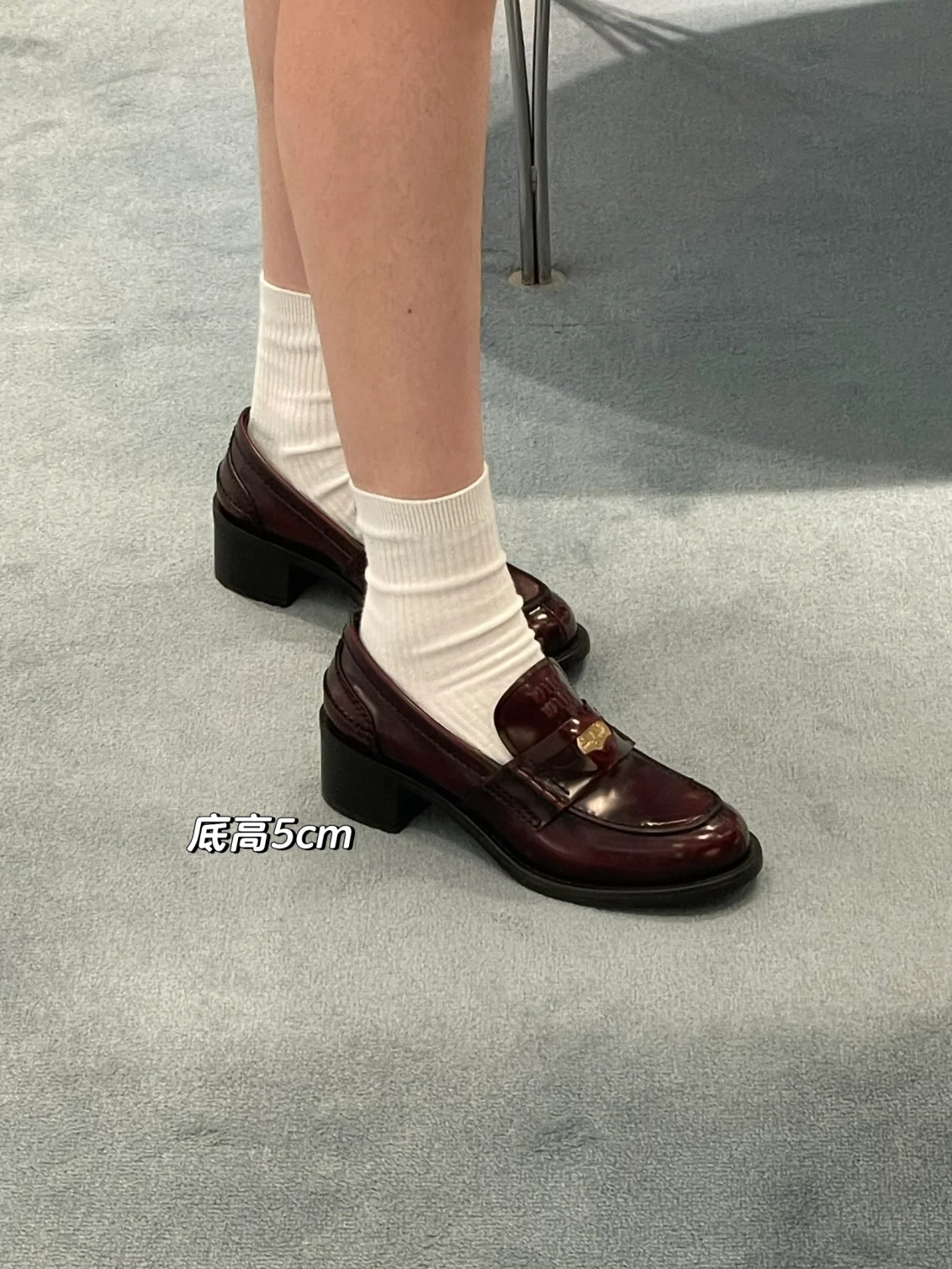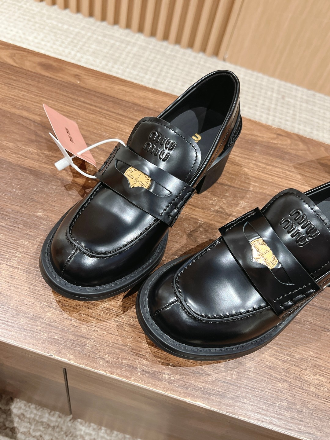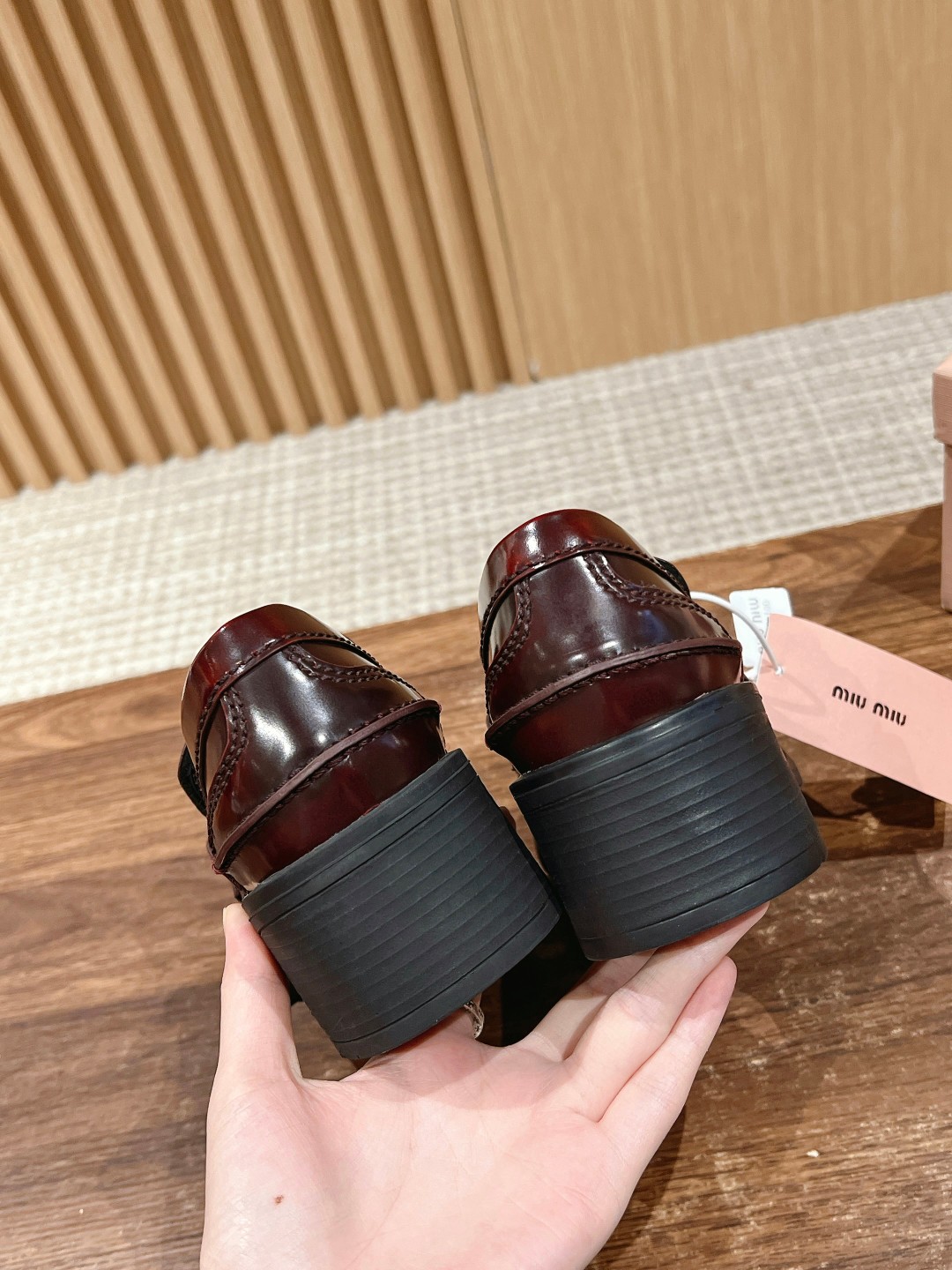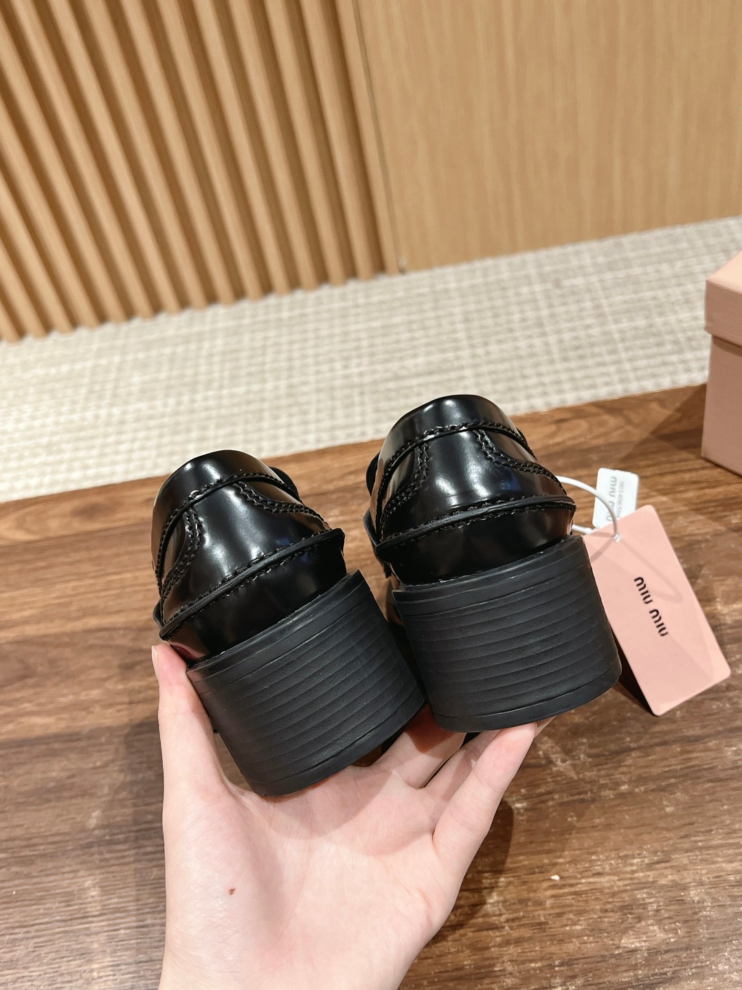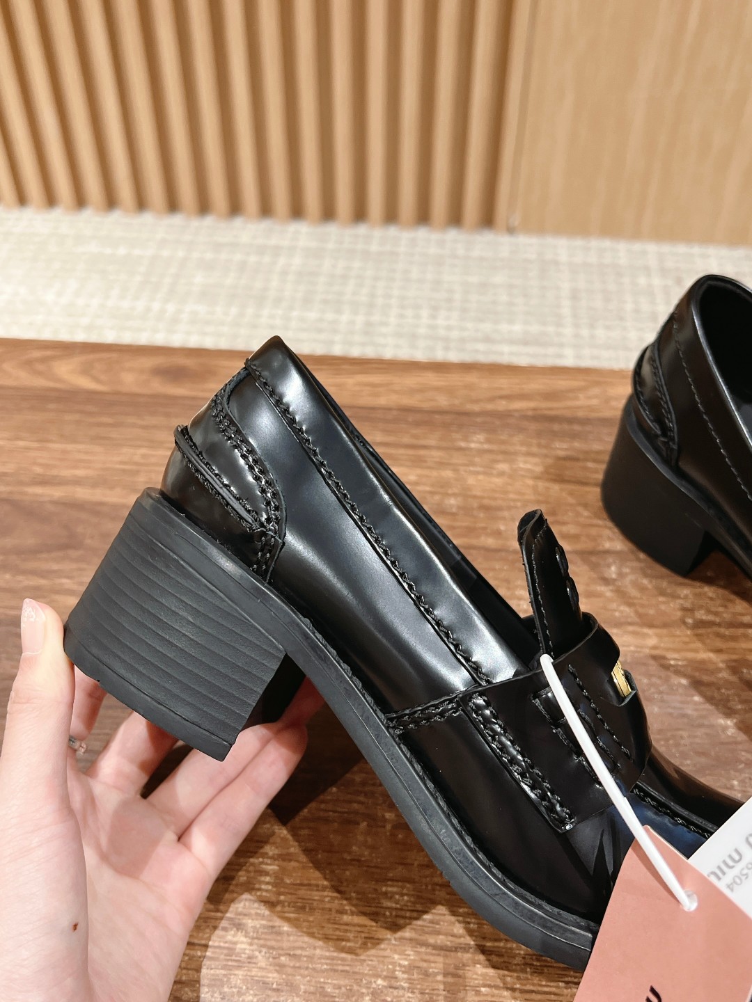 今年Miu简直是火爆了 区别于经典款!增加了跟高!粗跟6CM超级好走!拉腿型拉身高!专柜新款厚底加持,轻松拉长腿型 进口开边珠牛皮材质,羊皮内里,设计细节丰富,一整个爱住
