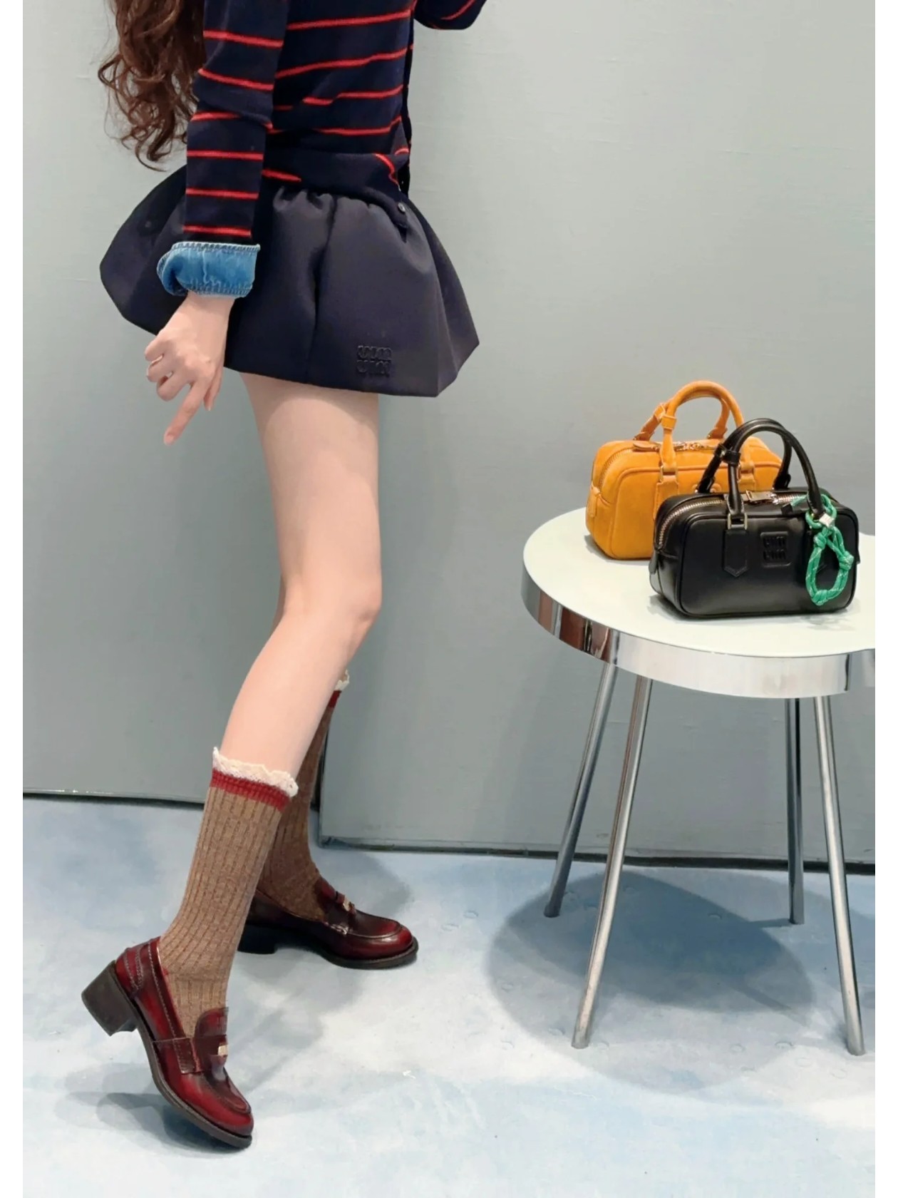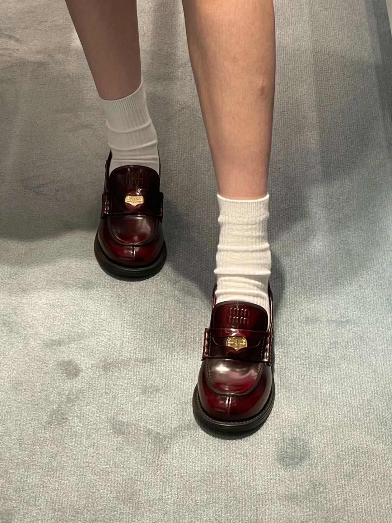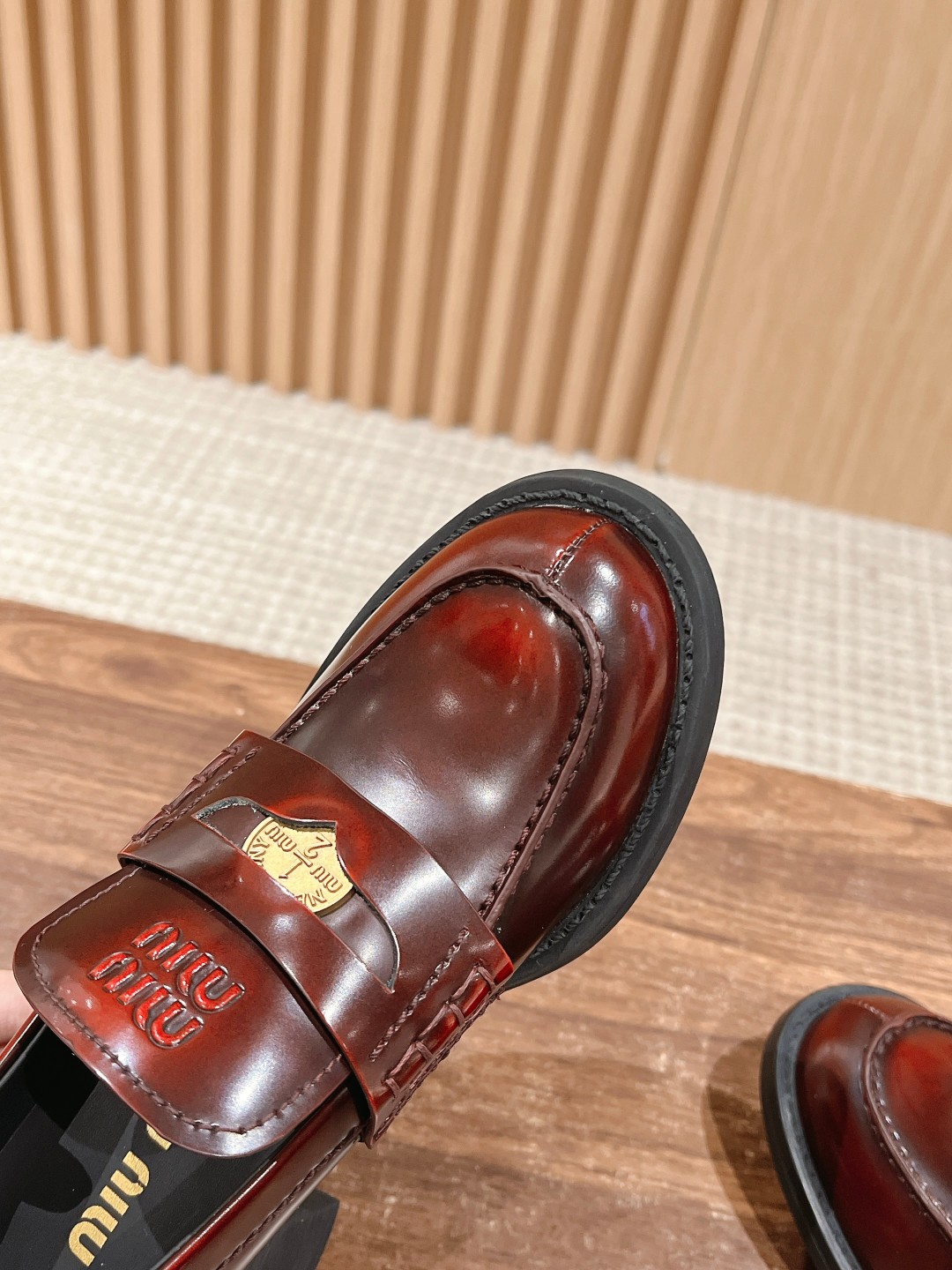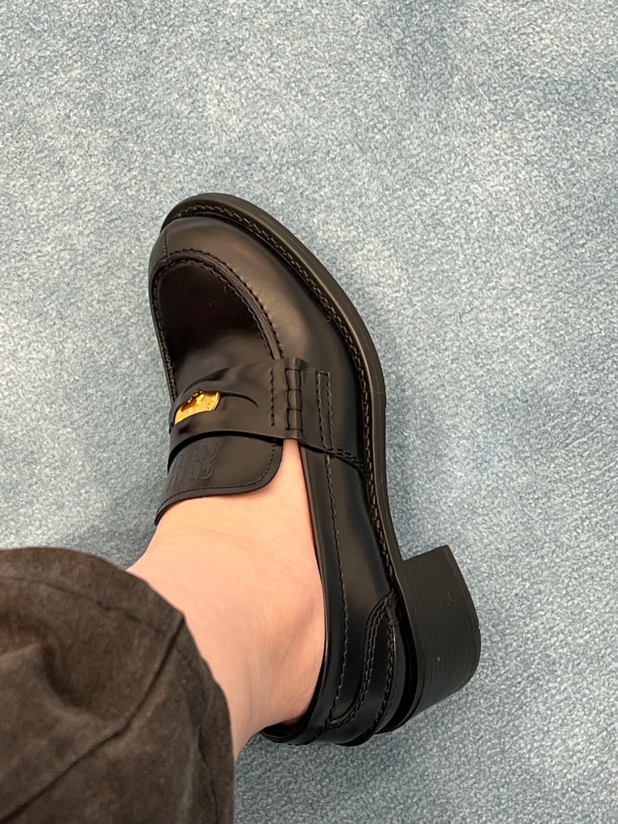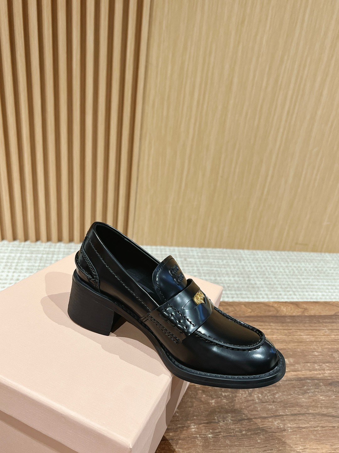 今年Miu简直是火爆了 区别于经典款!增加了跟高!粗跟6CM超级好走!拉腿型拉身高!专柜新款厚底加持,轻松拉长腿型 进口开边珠牛皮材质,羊皮内里,设计细节丰富,一整个爱住