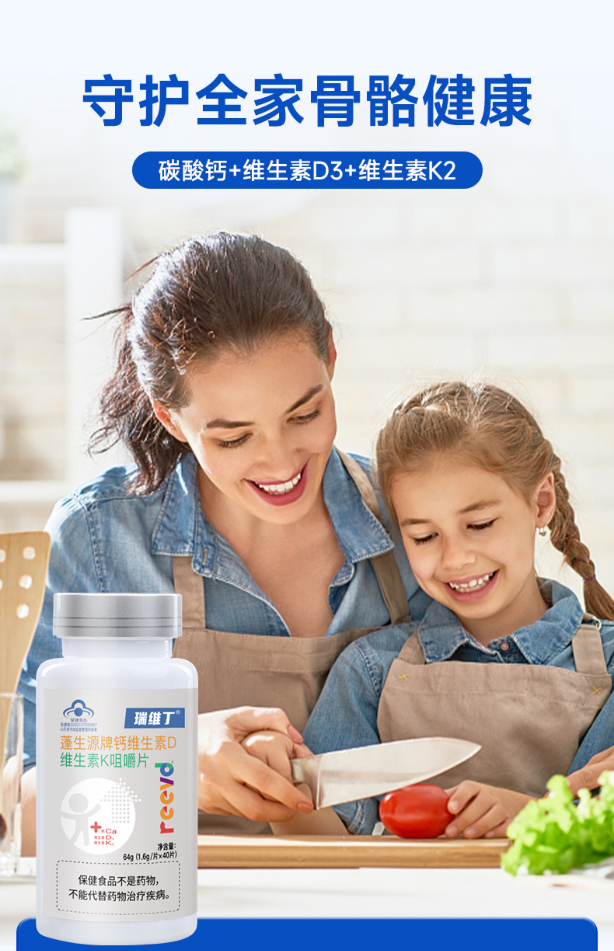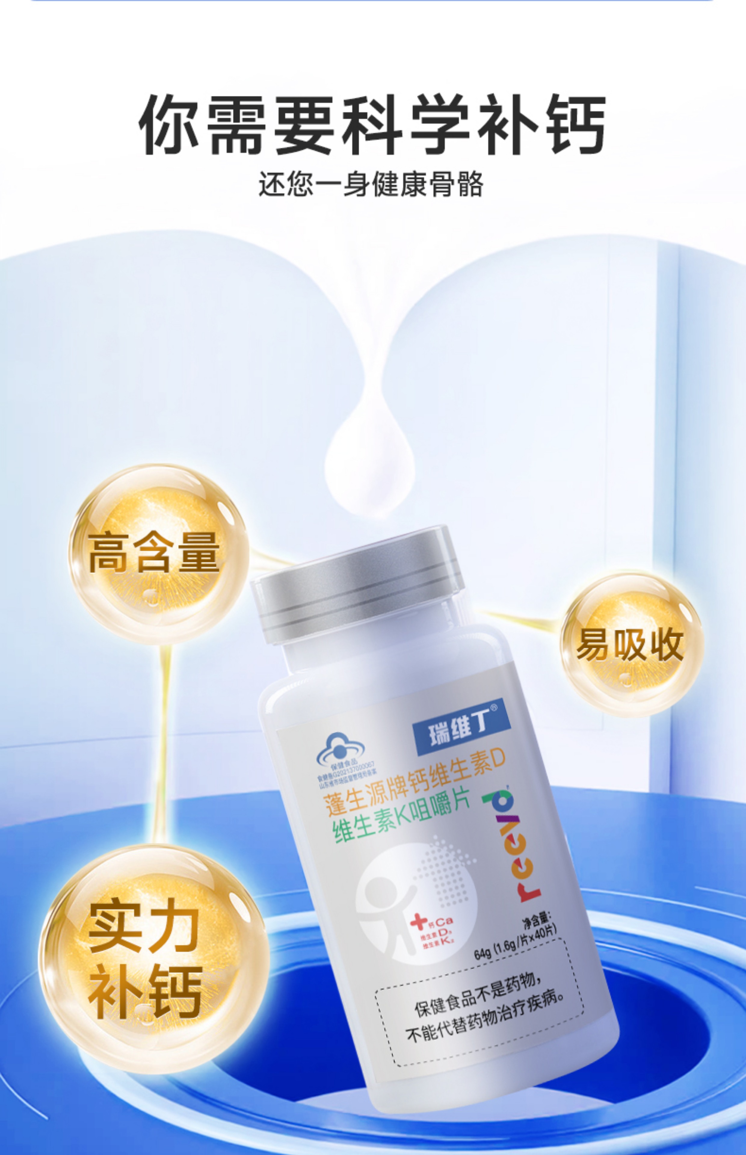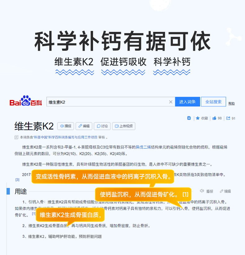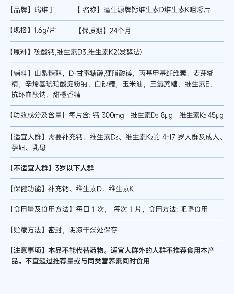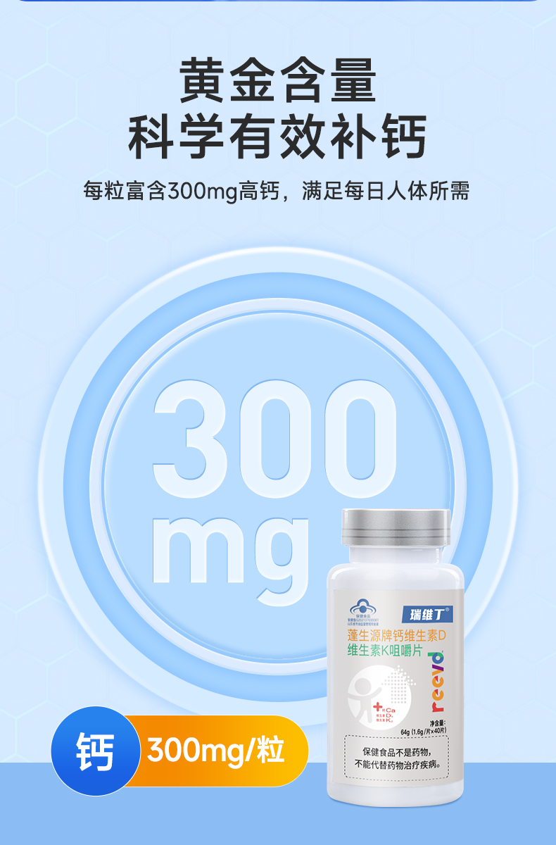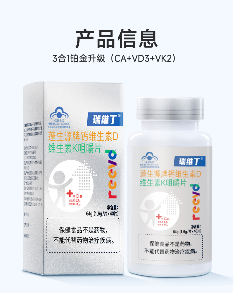 【瑞维丁钙片】百杏安钙片碳酸钙维生素DK 咀嚼片钙d同补强健骨骼