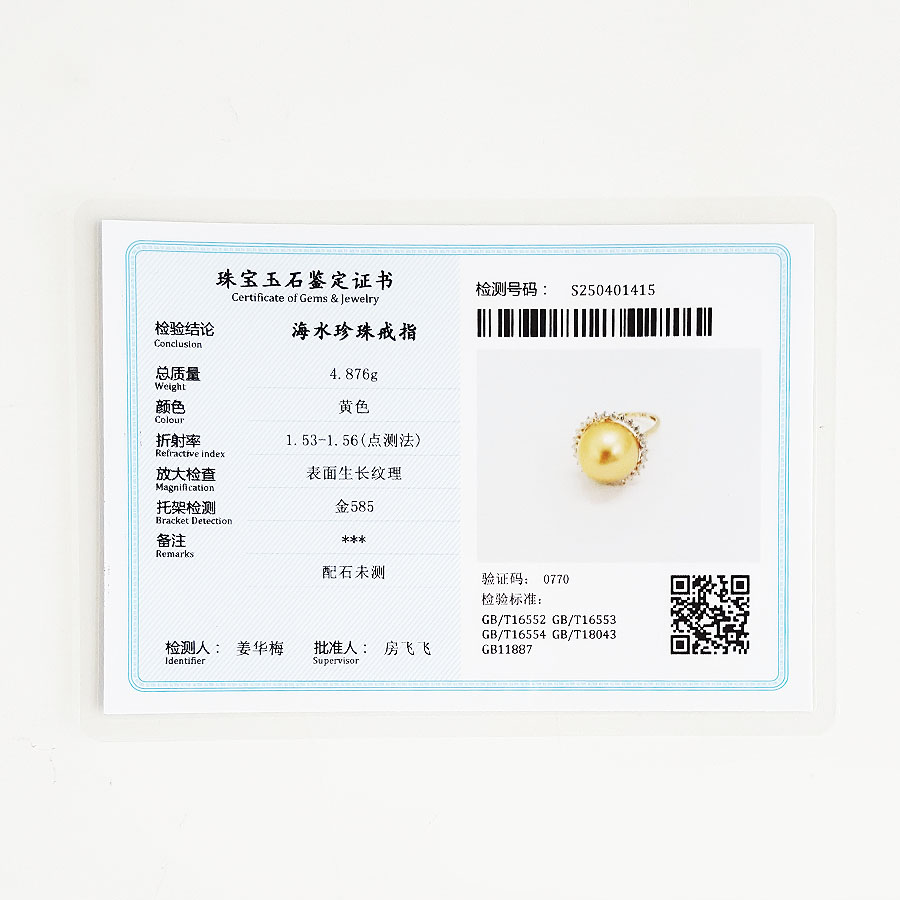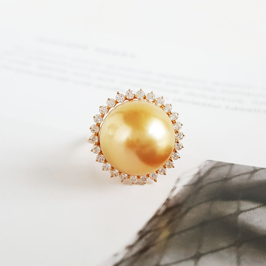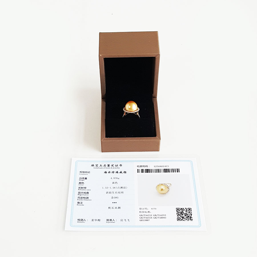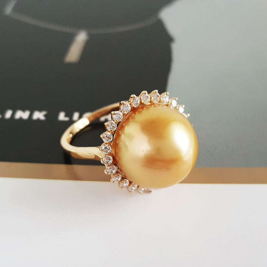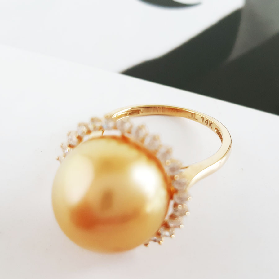 名称 | AU585黄金镶天然近完美约13MM浓金色南洋海水金珠戒指 |