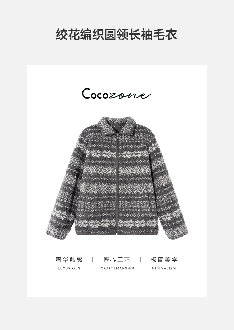 COCO ZONE 刘 一一“雪岭”费尔岛翻领拉链外套 CD1A1740