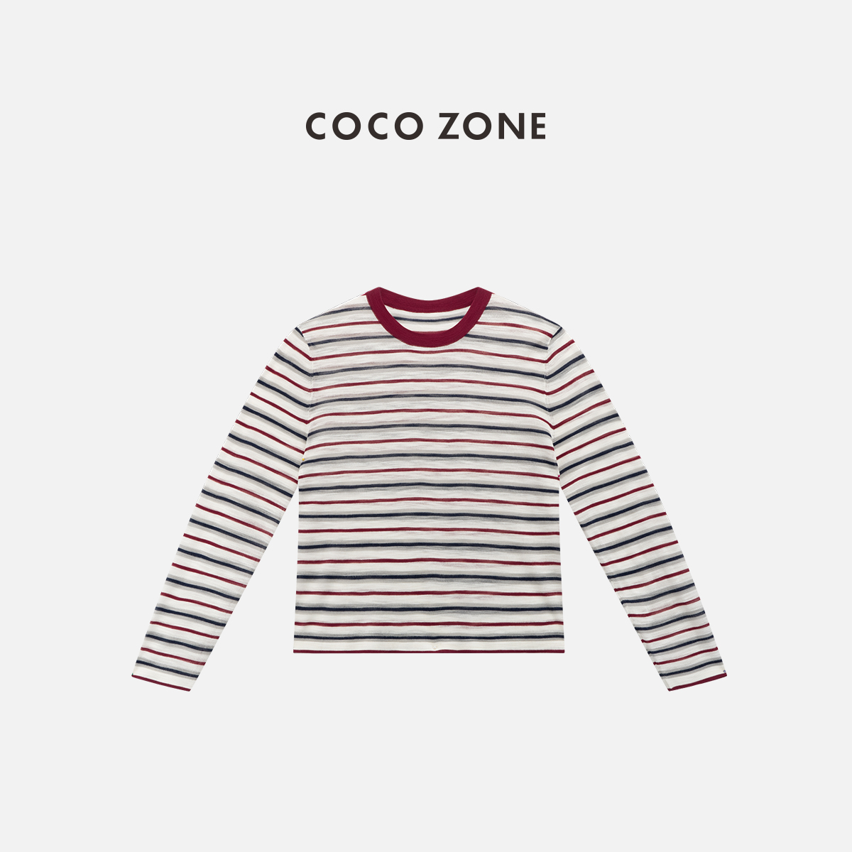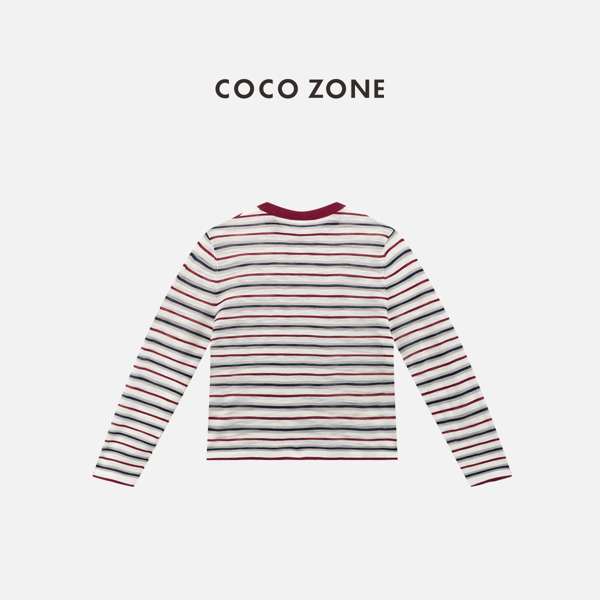 COCO ZONE 时尚彩条纹长袖针织衫休闲圆领上衣CC1B1518