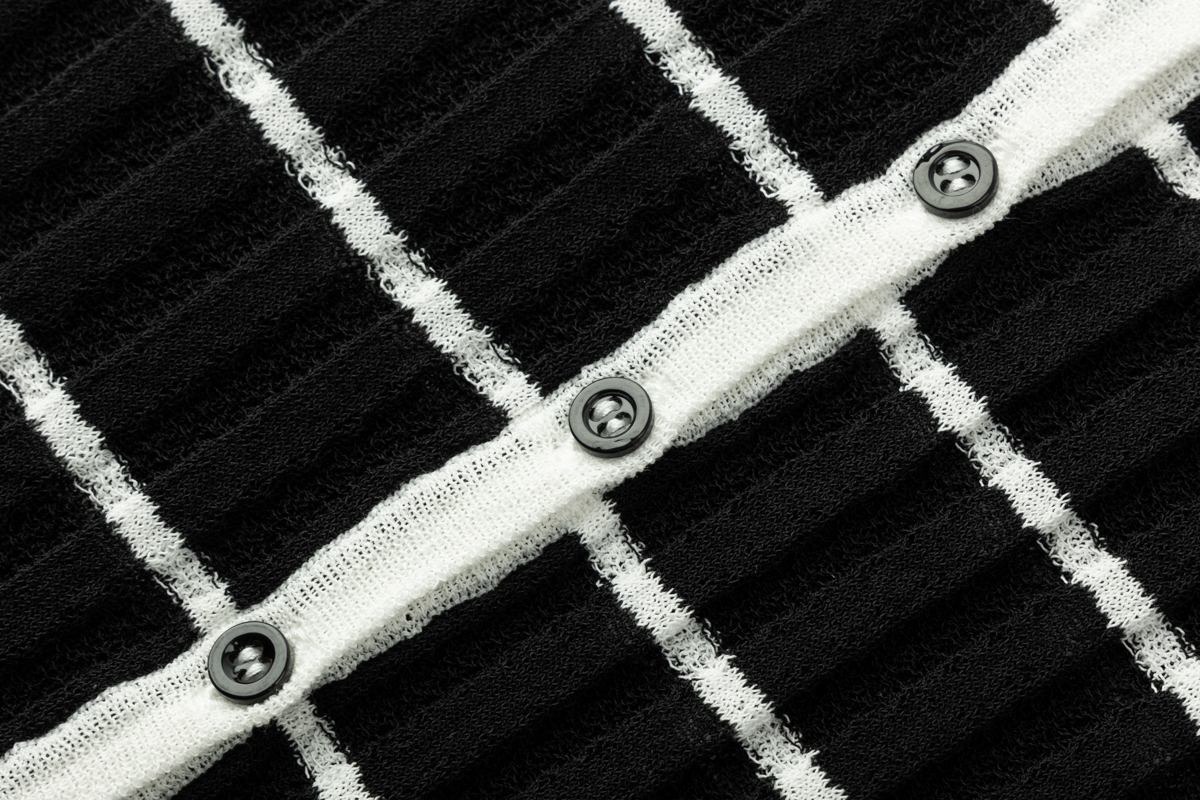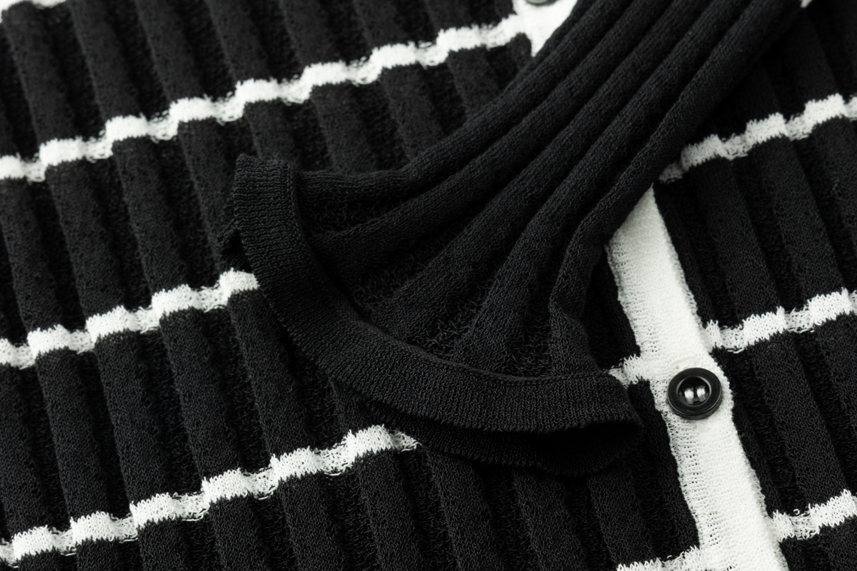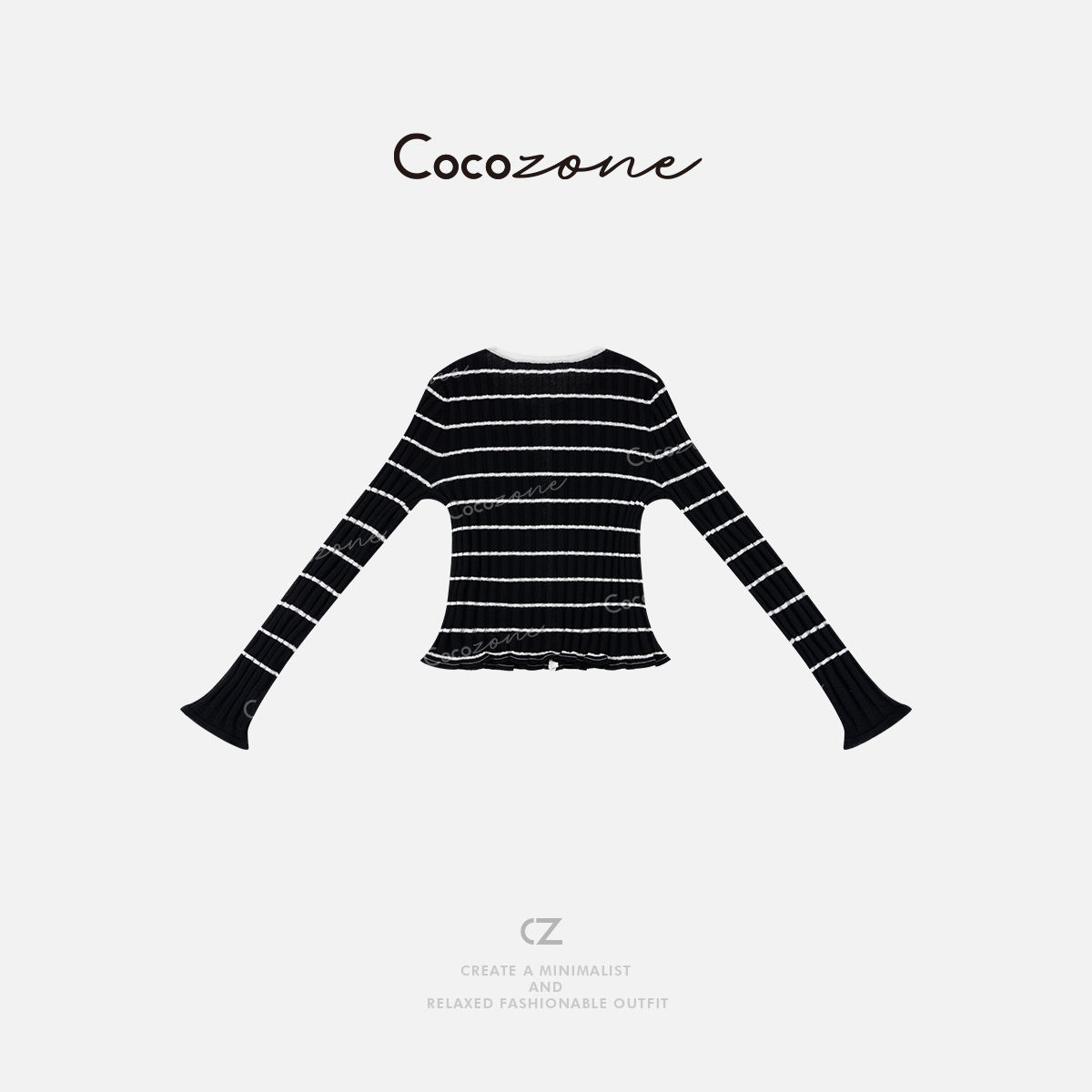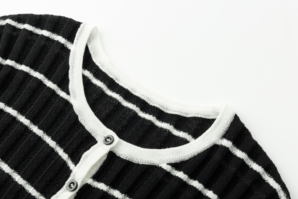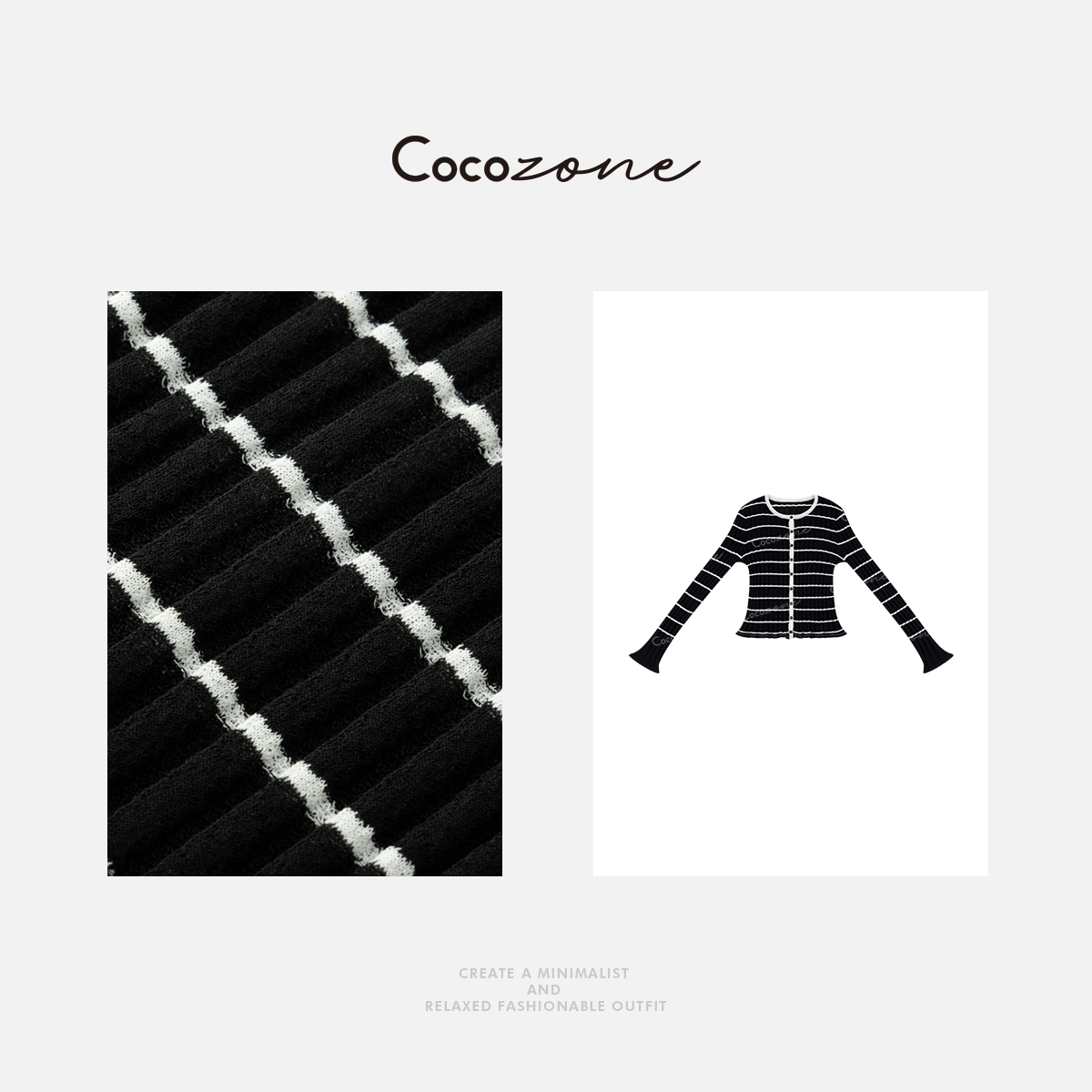 COCO ZONE 刘一一 25早春新款条纹撞色圆领女式针织开衫ACD1A0370