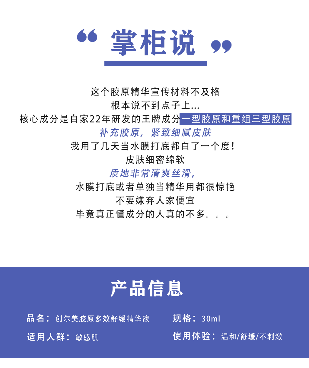 创尔美胶原多效舒缓精华液30ml修护保湿舒缓敏感肌适用温和无刺激