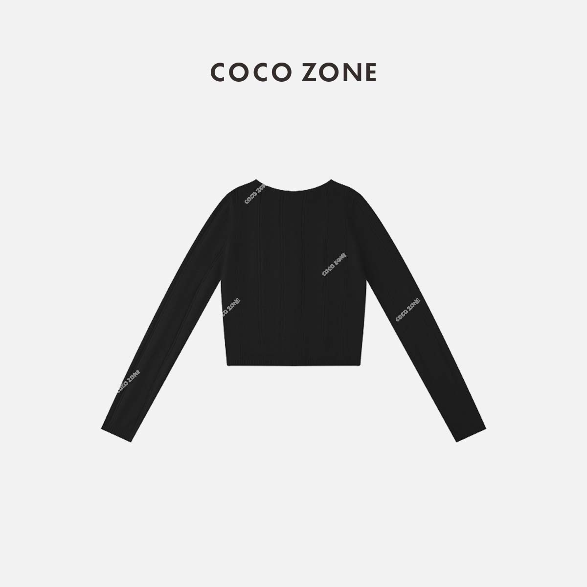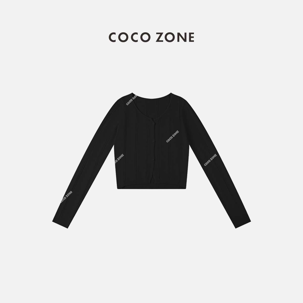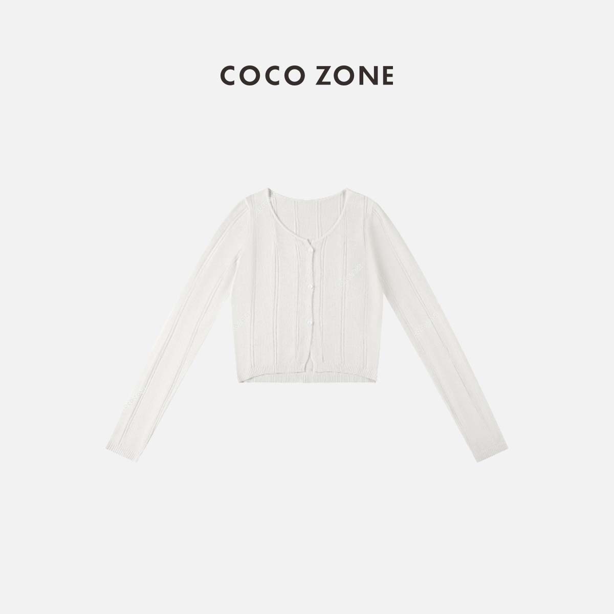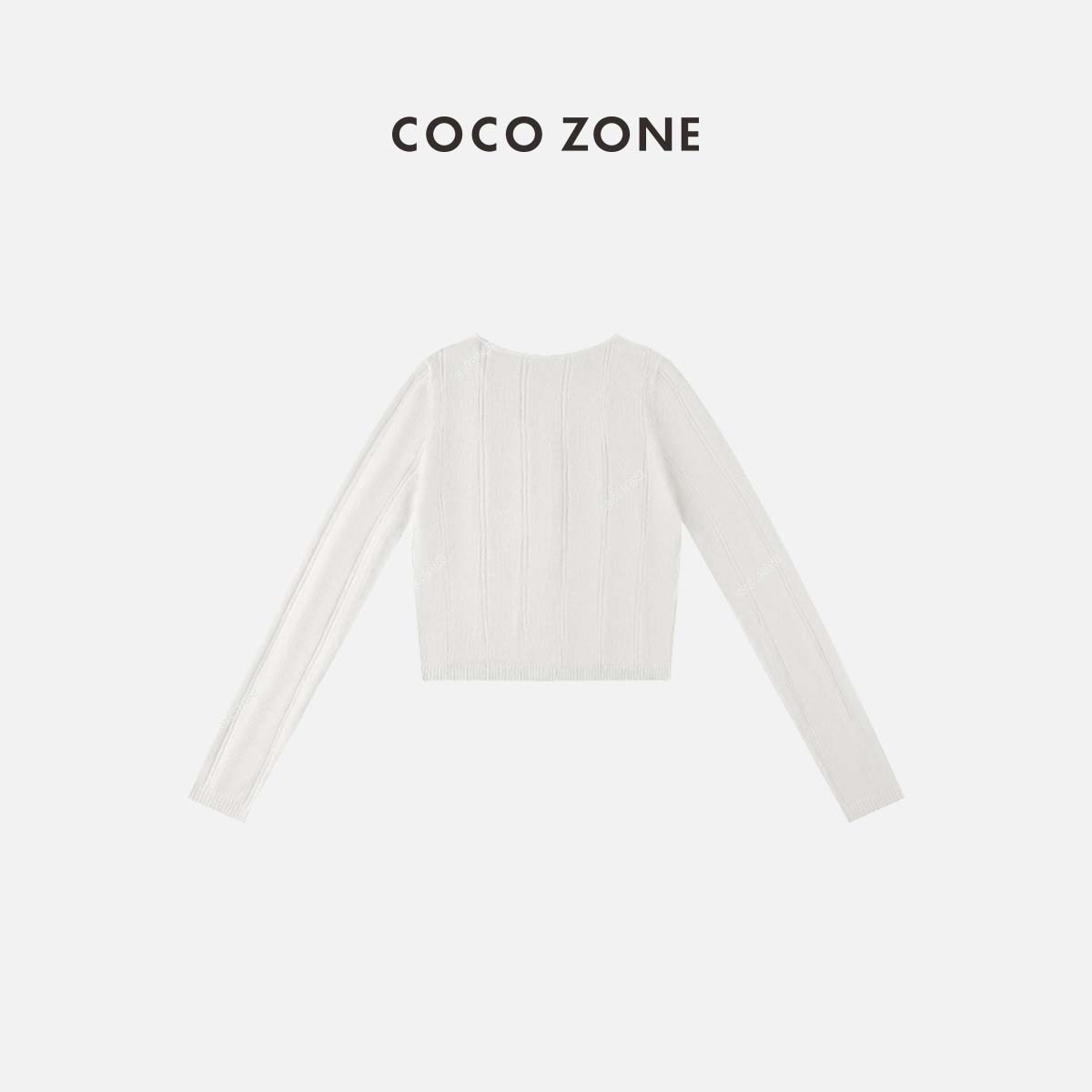 COCO ZONE 长袖针织上衣暗条纹圆领排扣开衫 23C18588