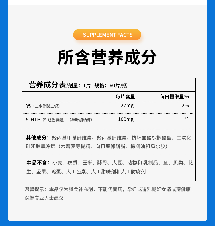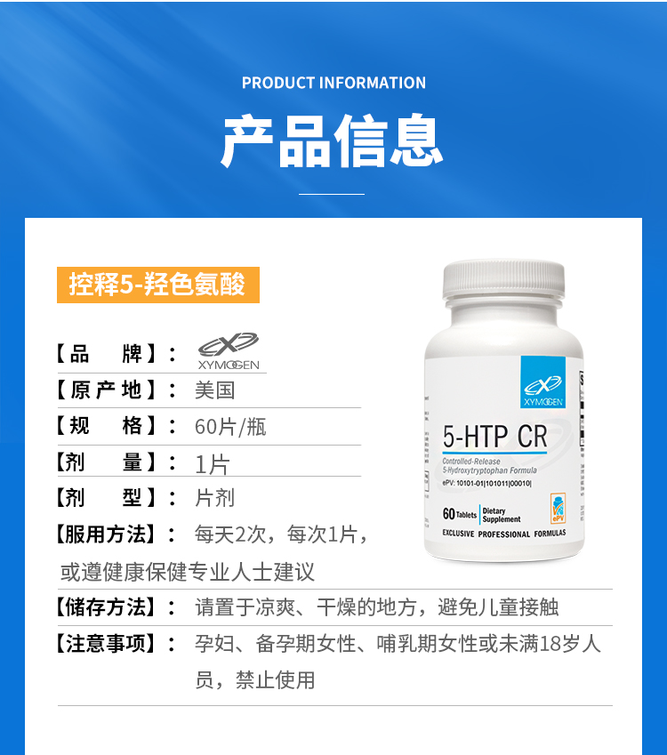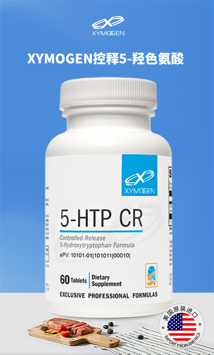 【效期至28年2月】控释5-羟色氨酸片 XYMOGEN 5-HTP CR 60 T 60片/瓶