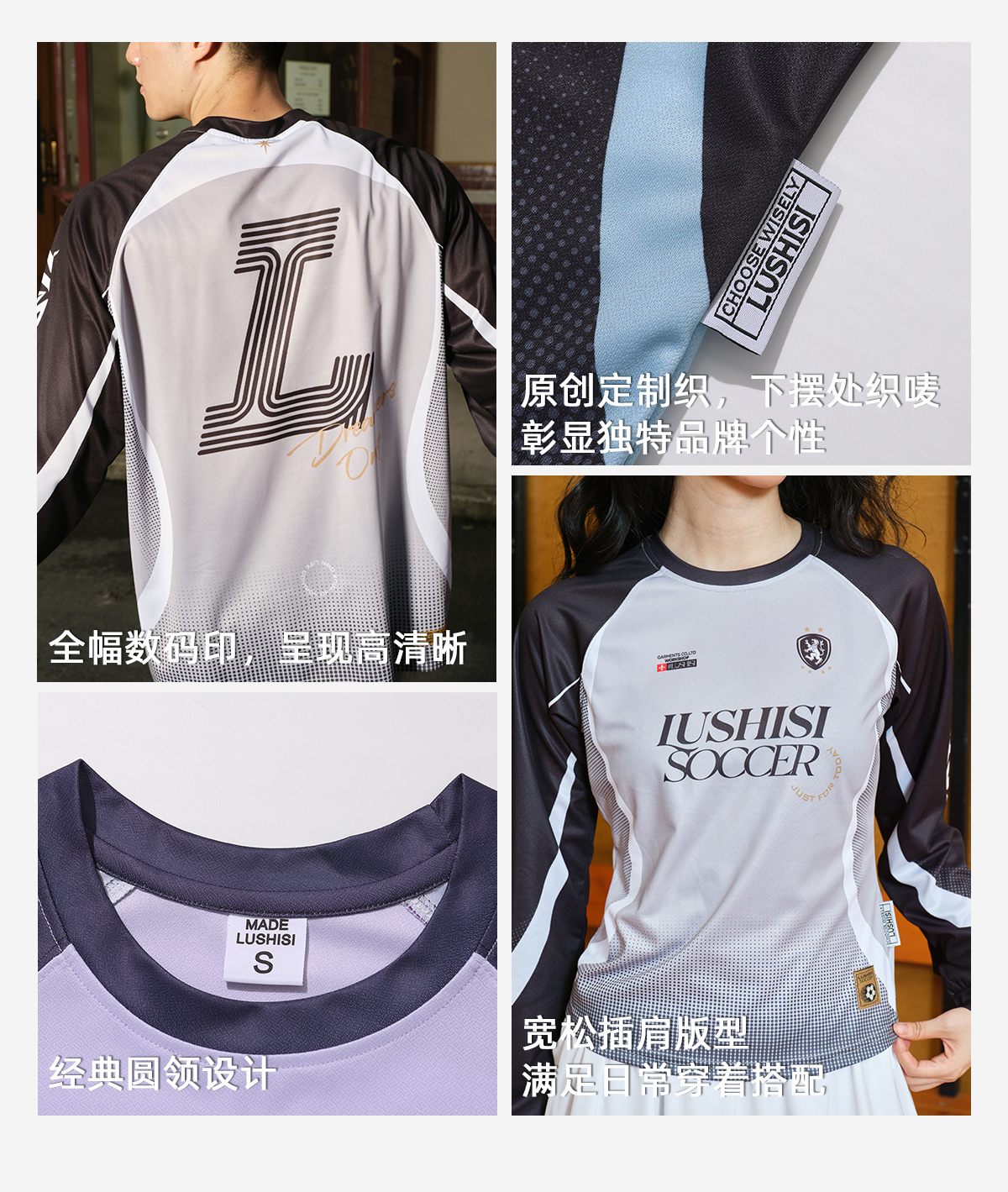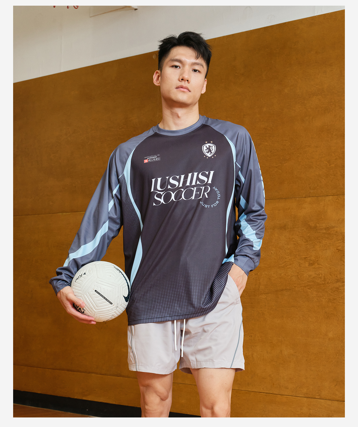 录士LUSHISI草根足球2.0足球风长袖吸湿速干街头投篮服t恤运动服