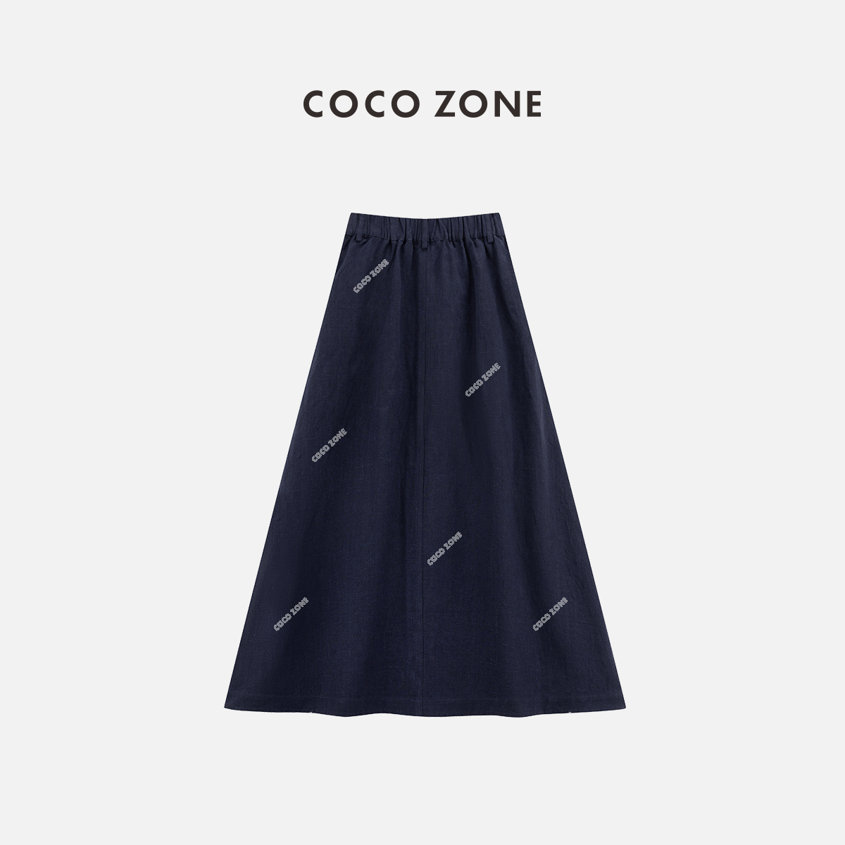 COCO ZONE“安迪半裙”夏季后松紧腰设计半身裙气质百搭纯色中长裙CC1B0938