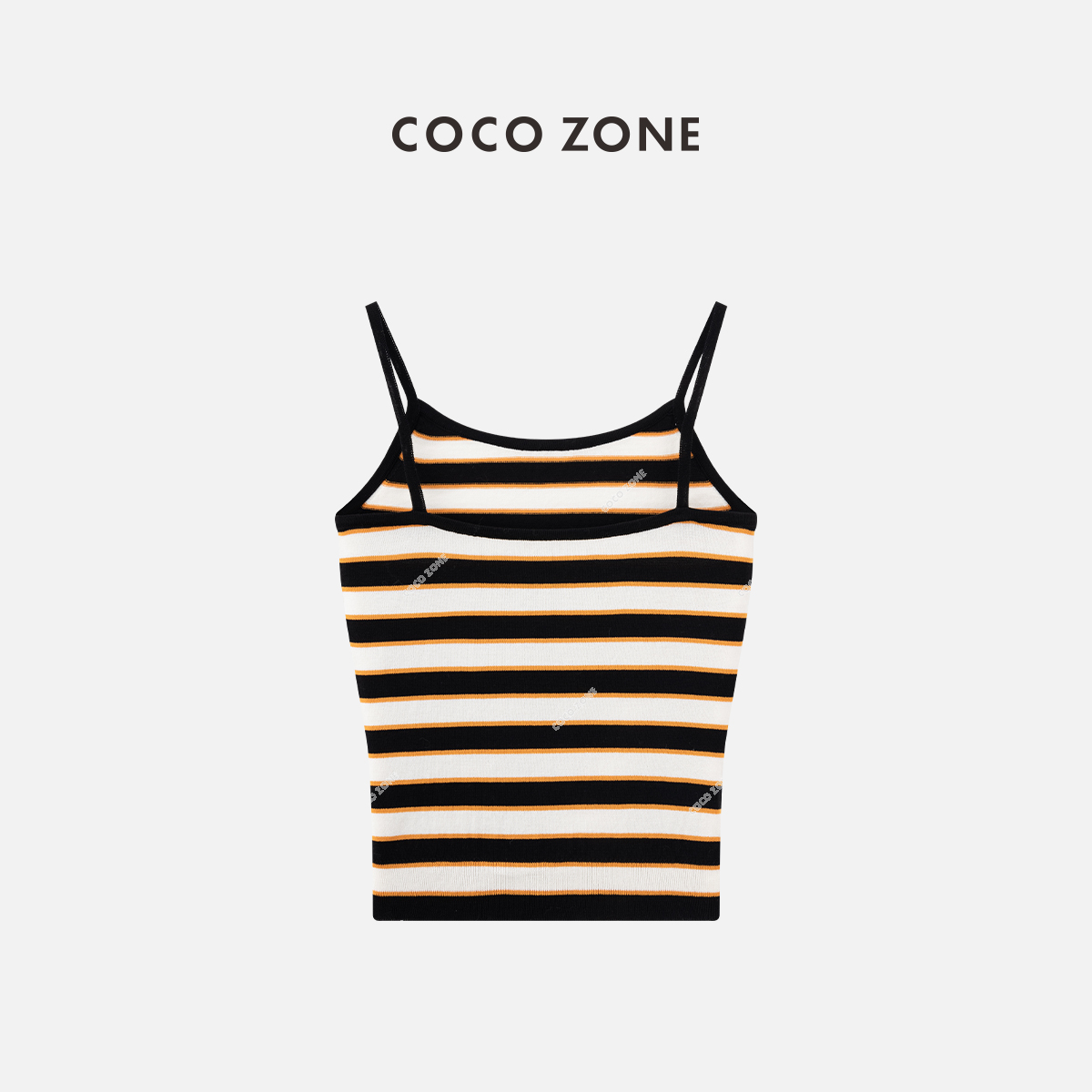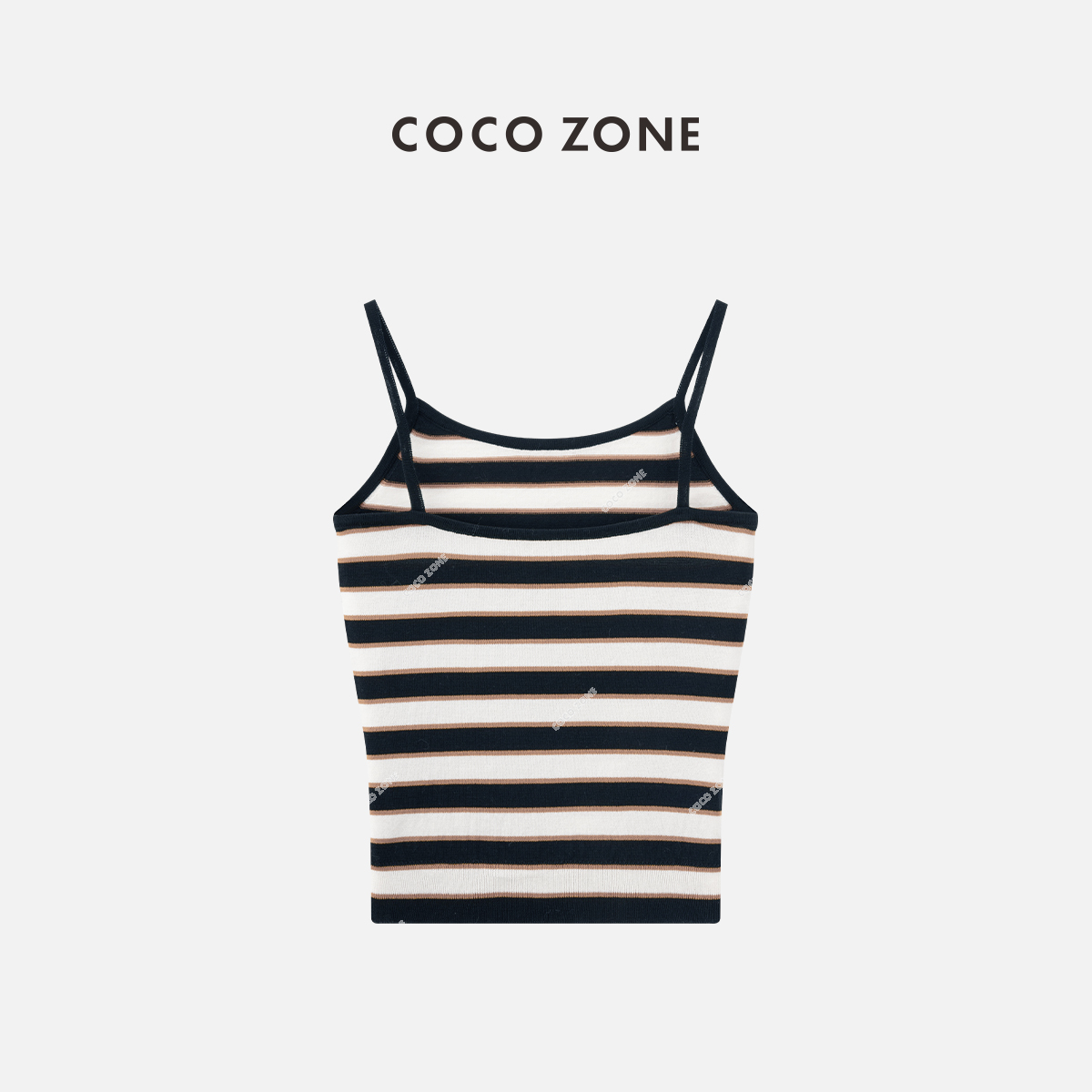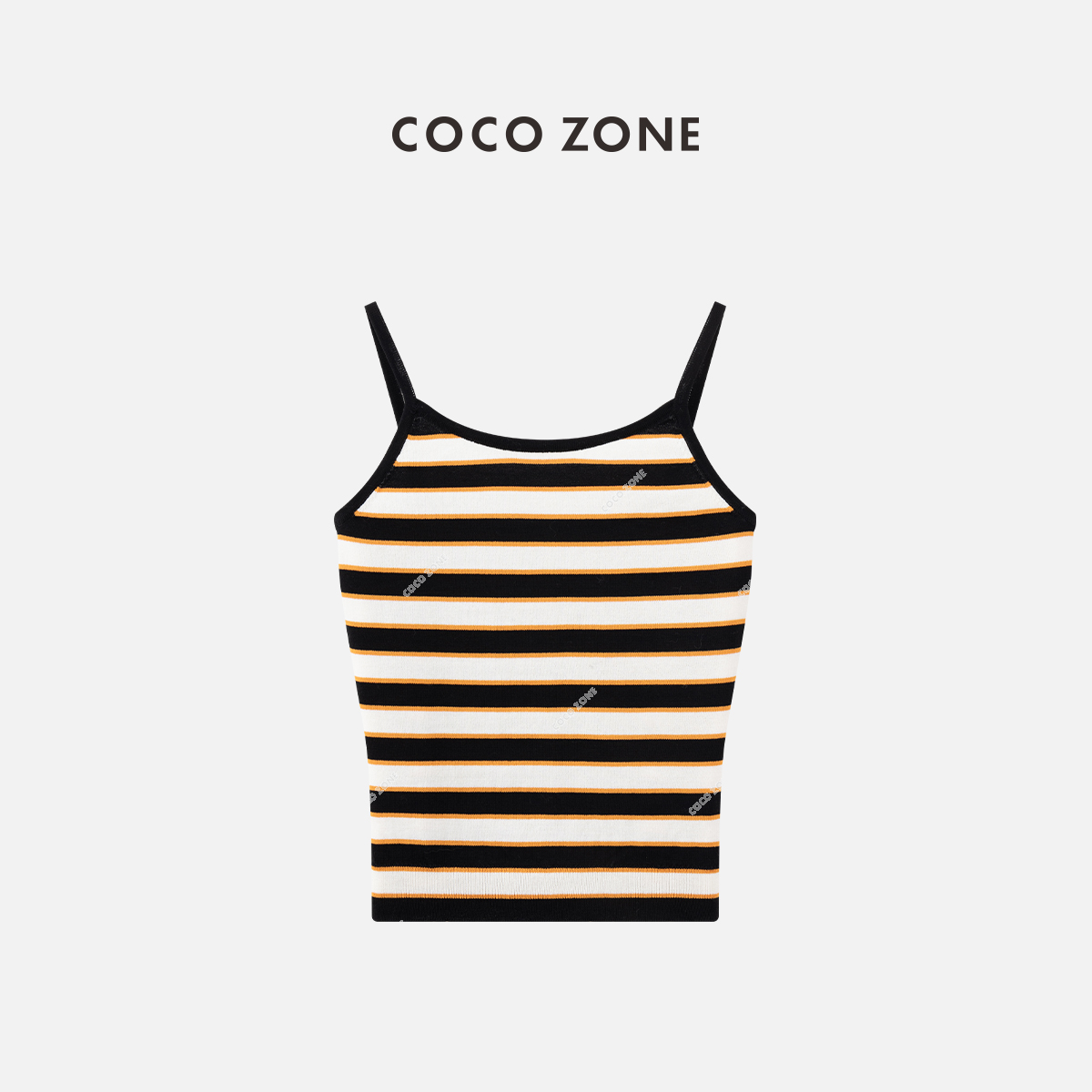 COCO ZONE2024夏季休闲条纹针织吊带修身显瘦无袖上衣CC2B0428