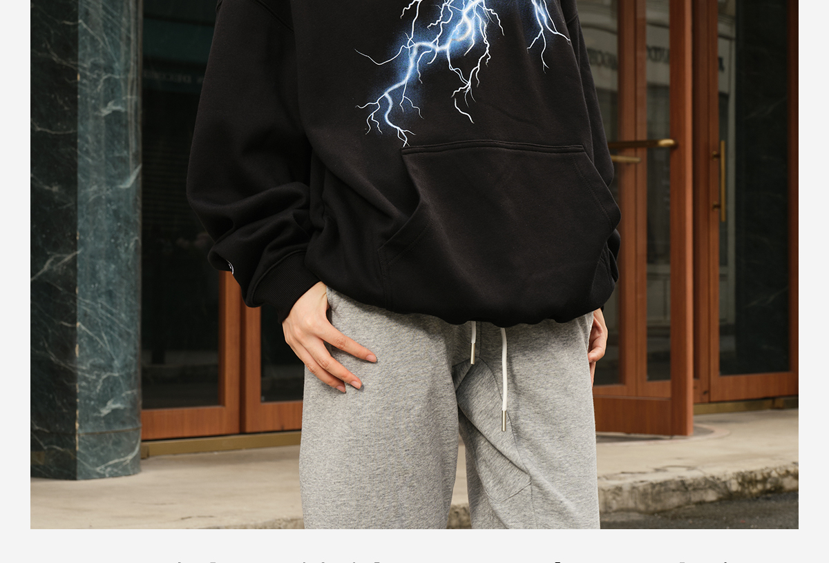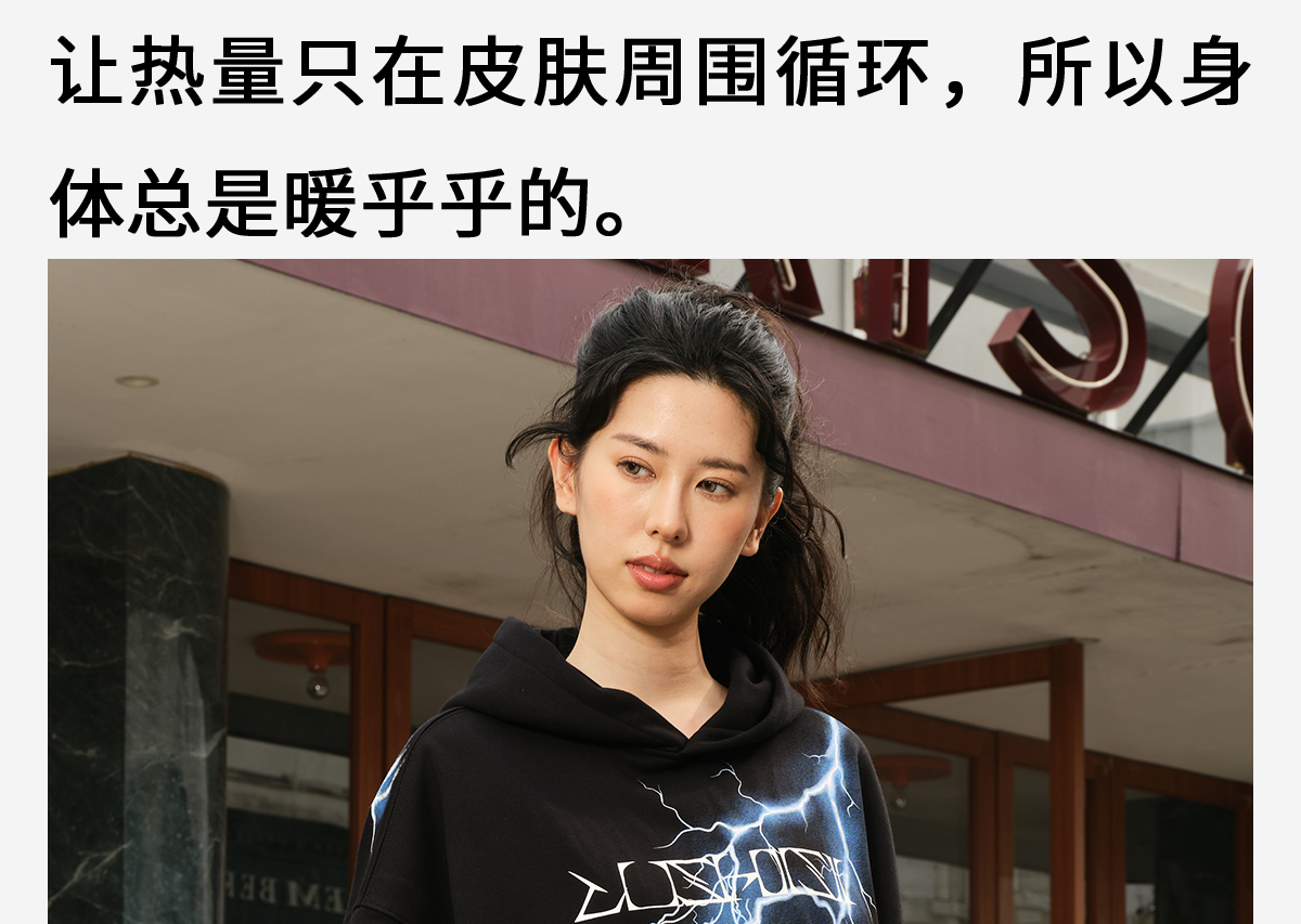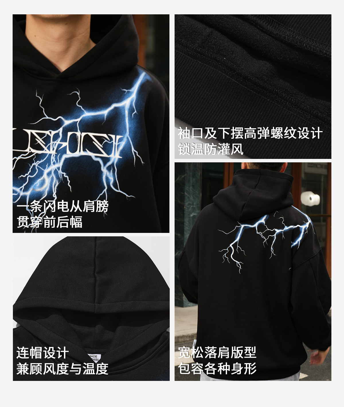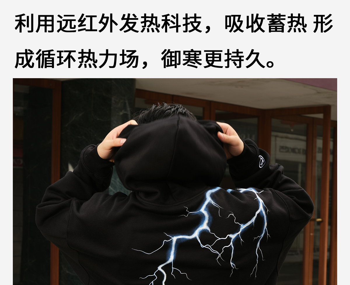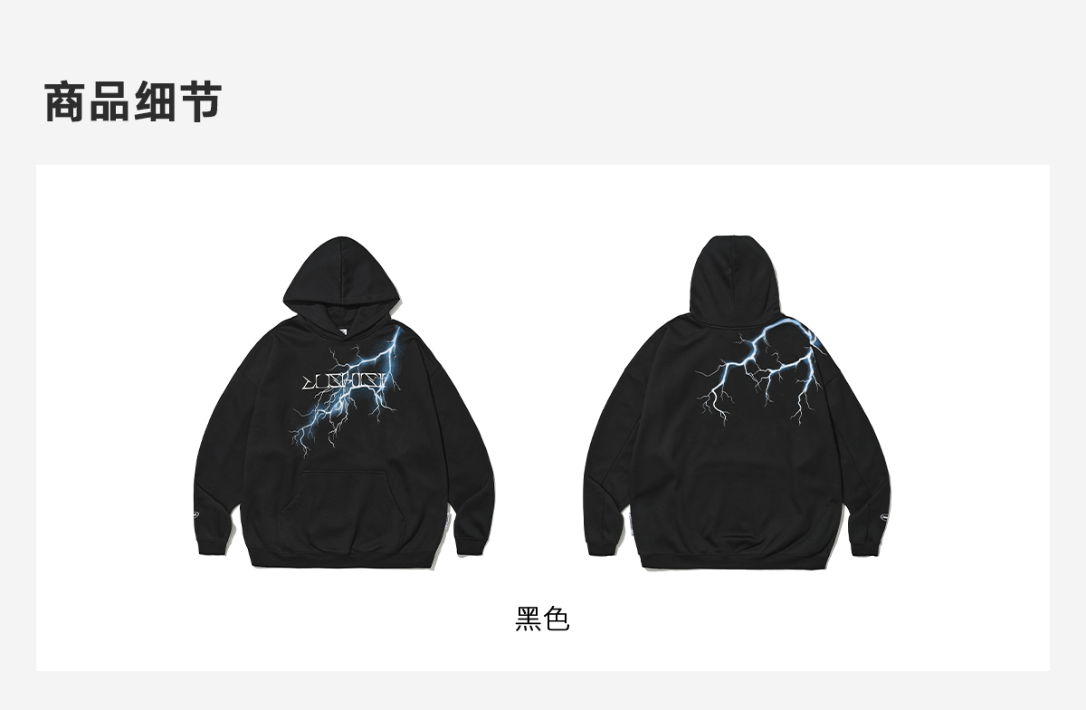 录士LUSHISI电光主题闪电抓绒恒温保暖连帽潮流宽松情侣宽松卫衣