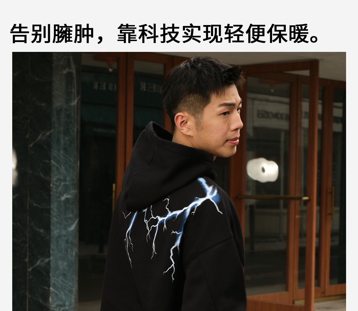LUSHISI「温暖盔甲」白鸭绒90连帽厚羽绒服特氟龙内层发热石墨烯