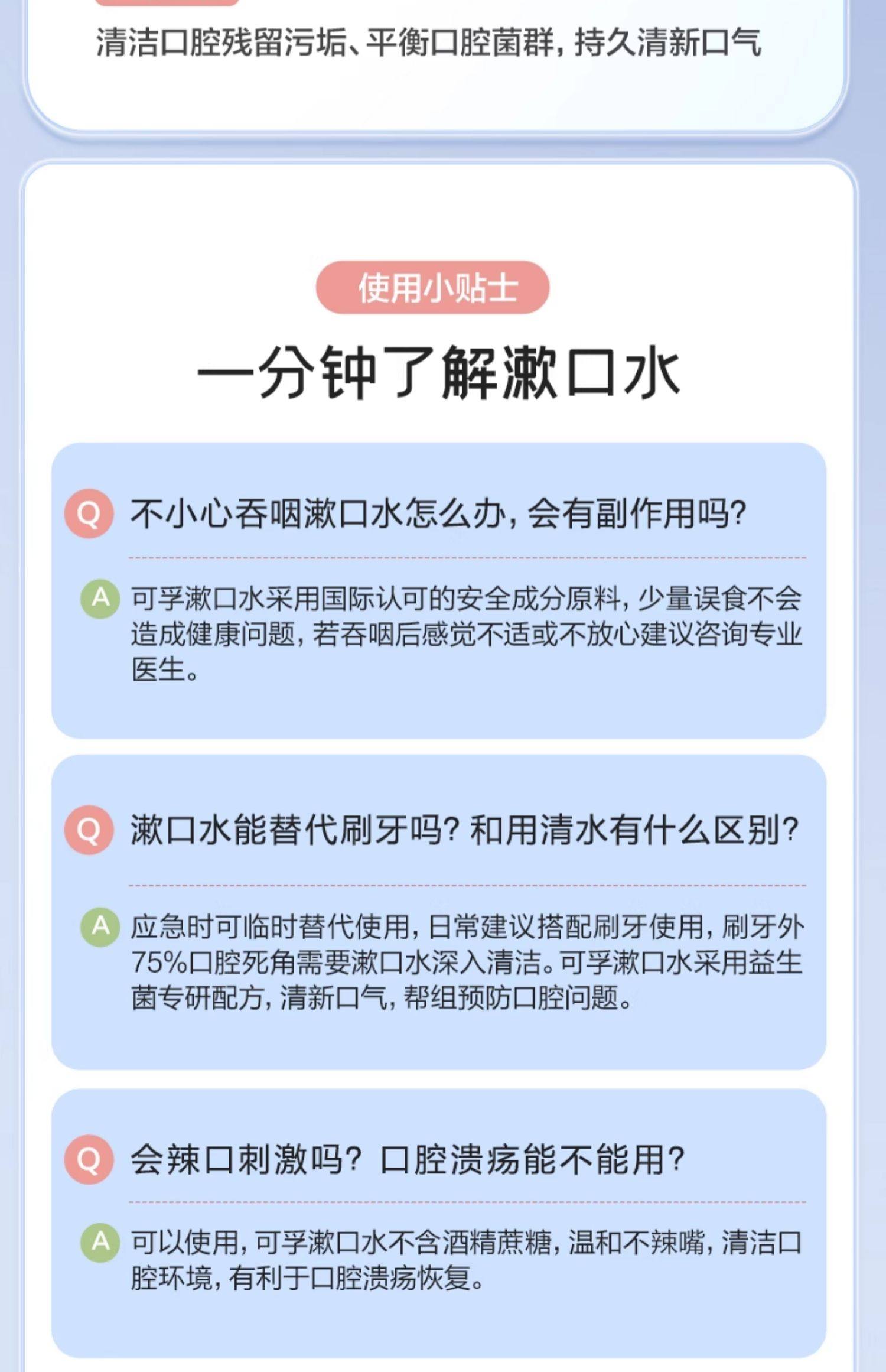 可孚漱口水便携式牙结石正畸口臭专用持久留香非除一次性杀菌