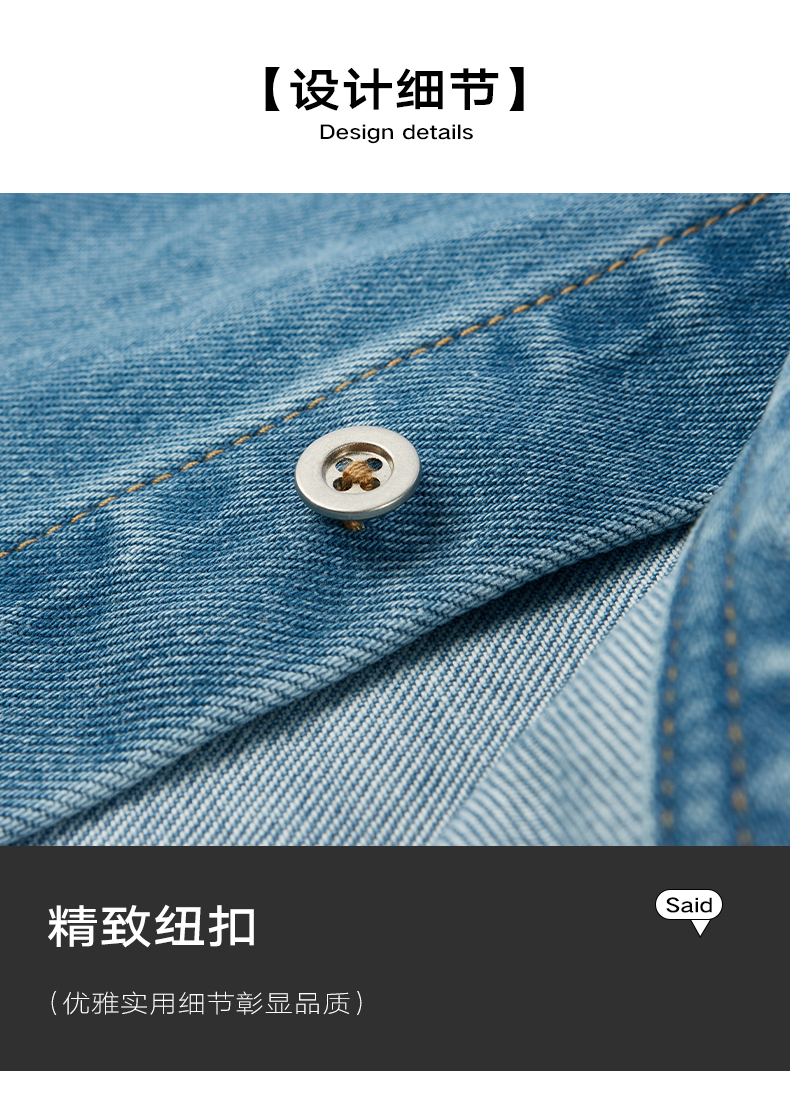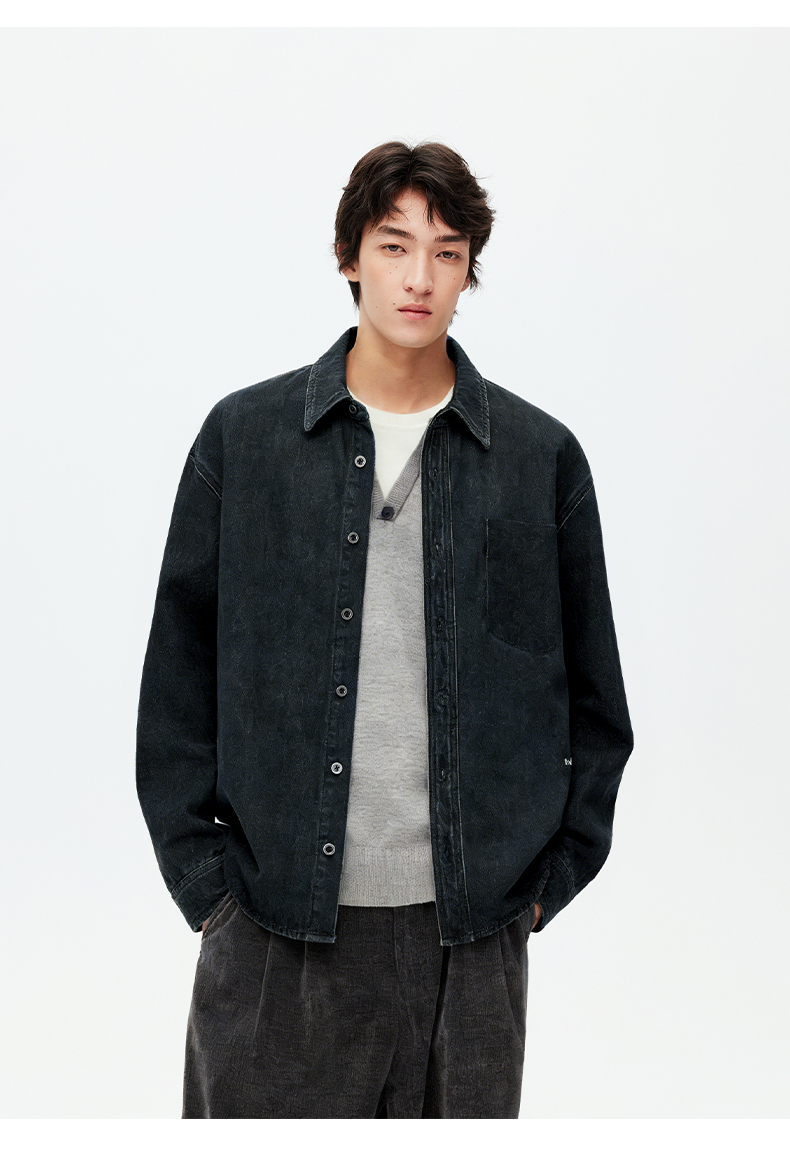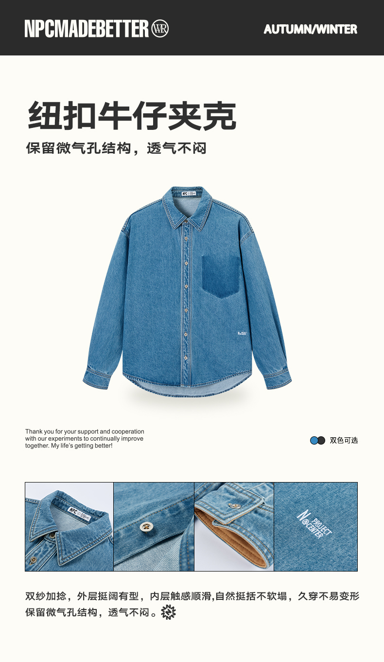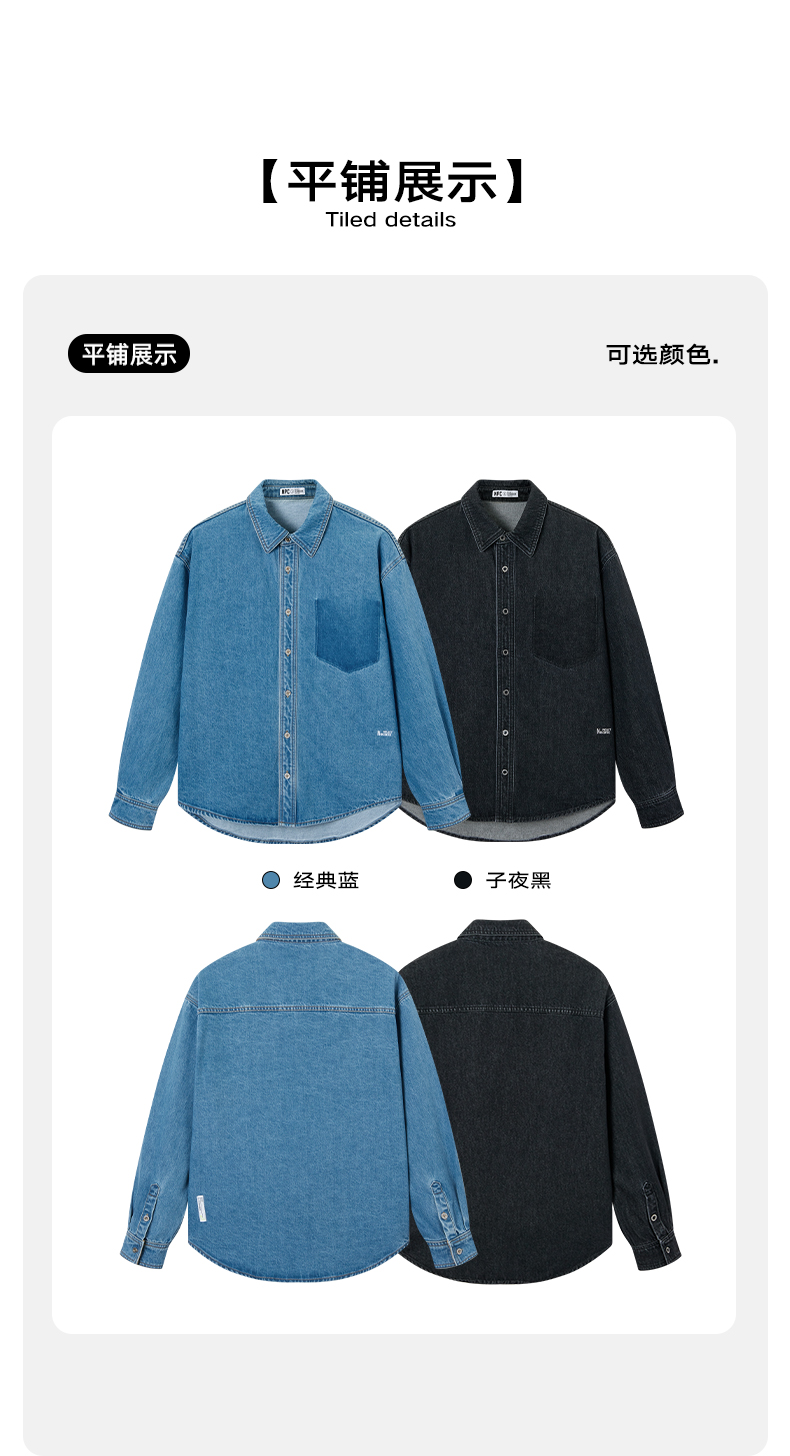 NPC潮牌100%棉做旧复古牛仔衬衫秋渐变装饰口袋炒盐工艺NP5CDC25