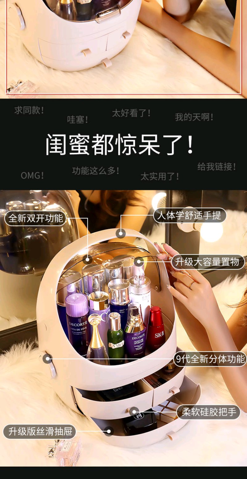 KAMAN化妆品收纳盒 桌面首饰盒护肤品整理盒
