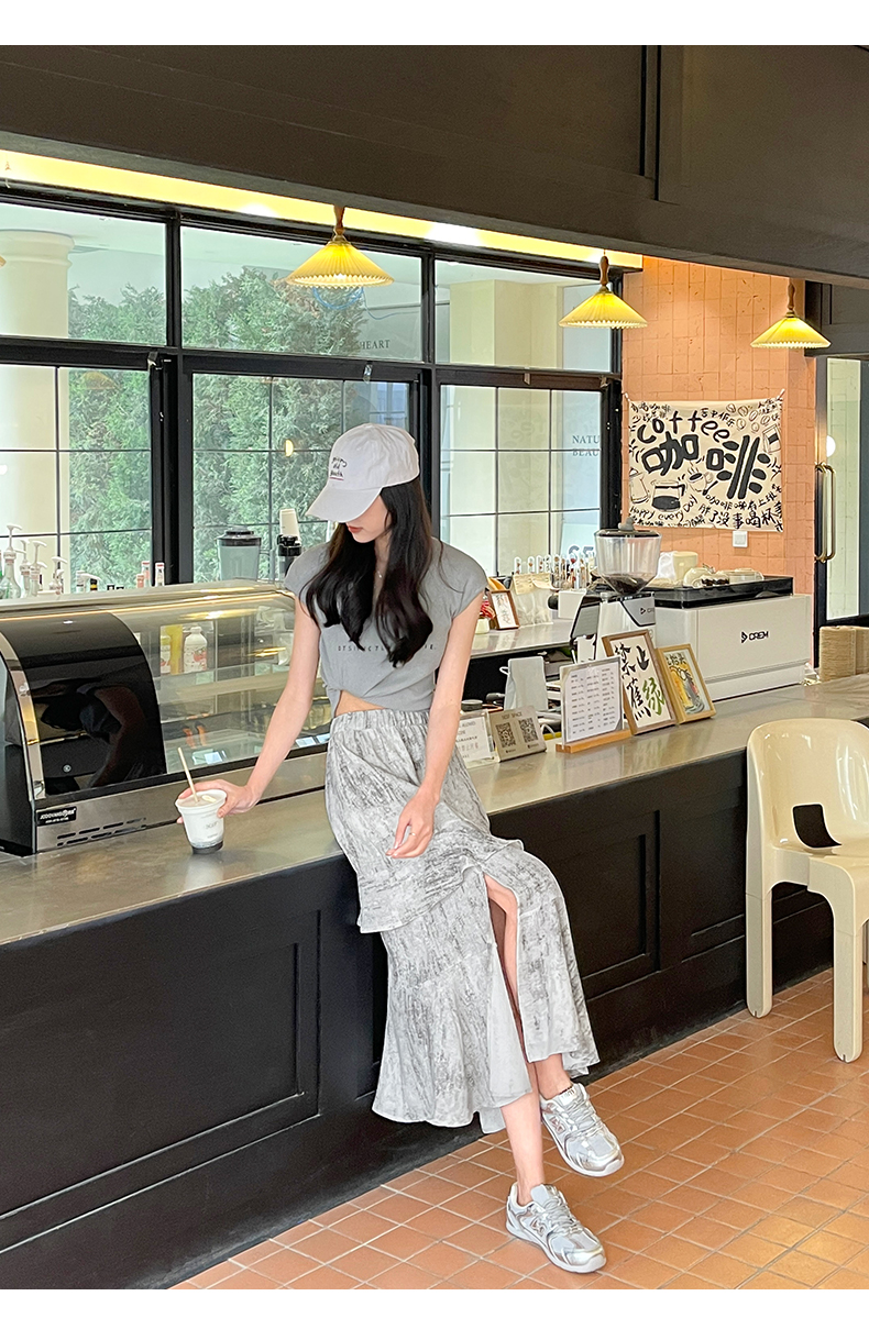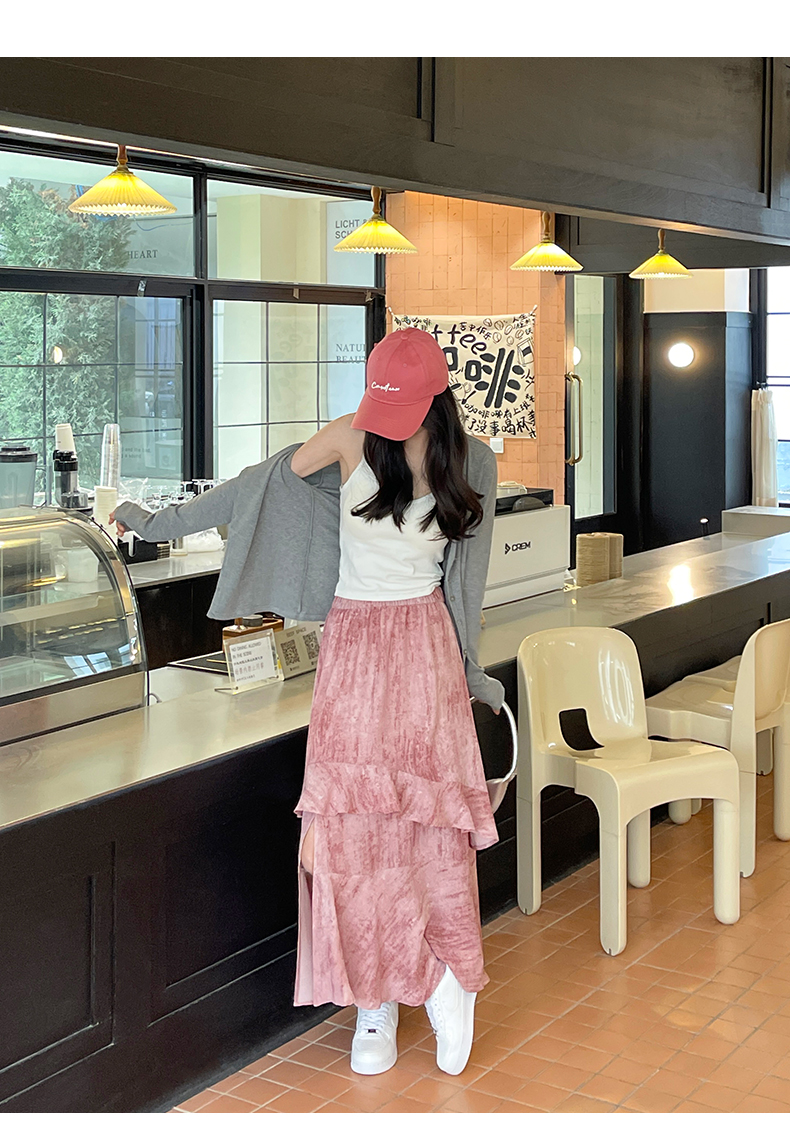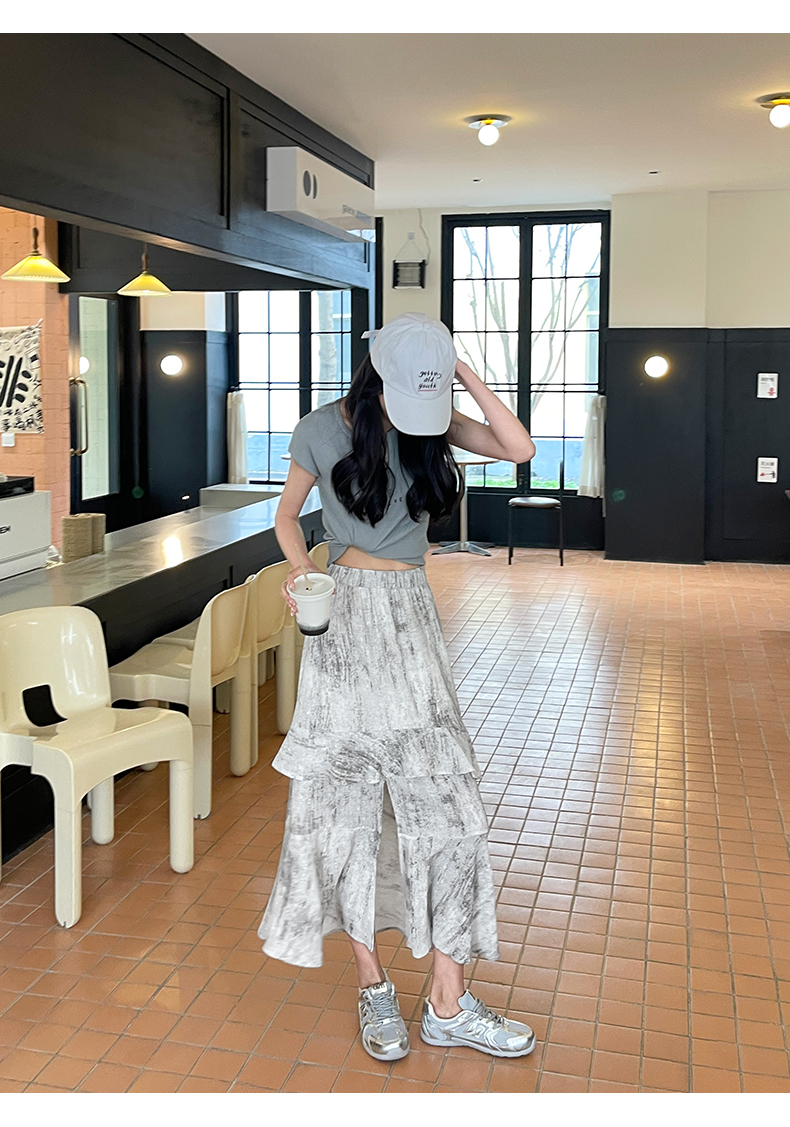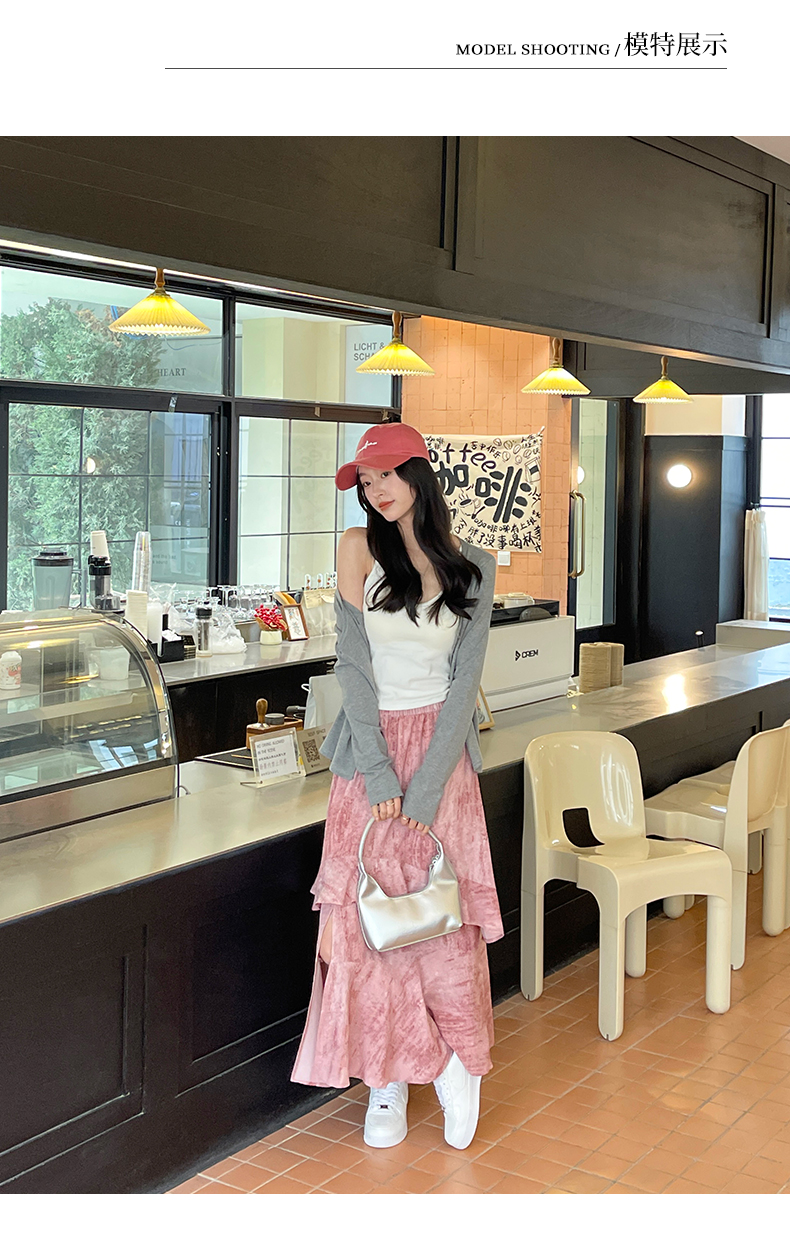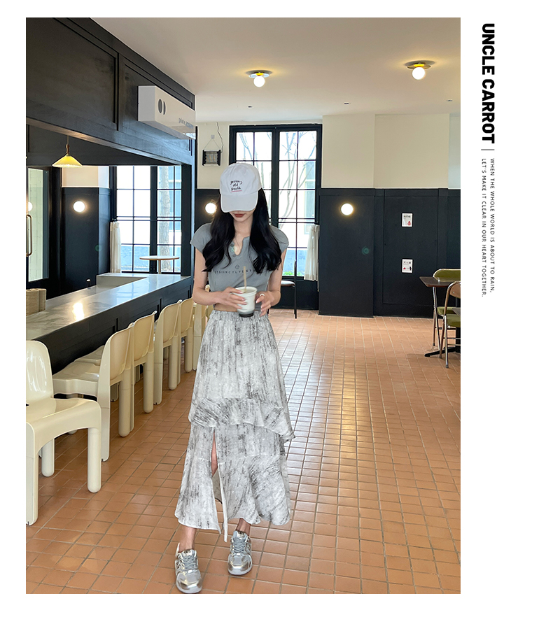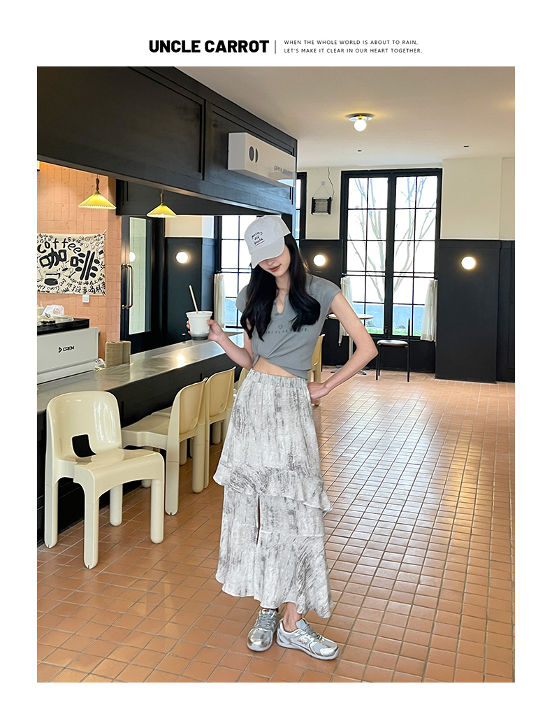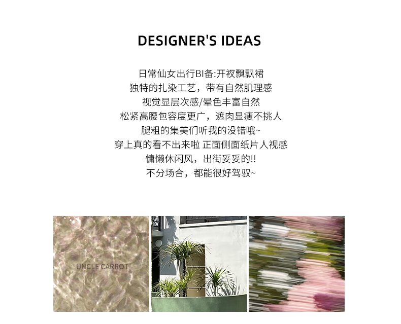 慵懒休闲风【 MUYANHUAN 】开叉飘飘裙 独特扎染工艺,自然肌理感,遮肉显瘦不挑人,不规则层次感,视觉增高6cm,内有内衬不透不走光