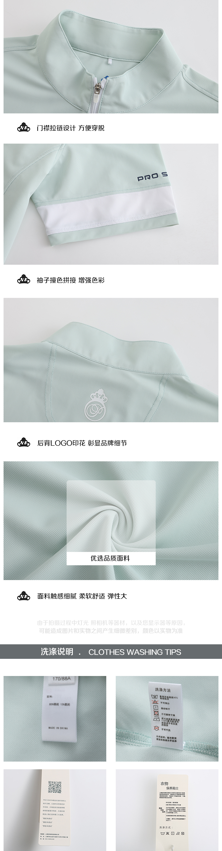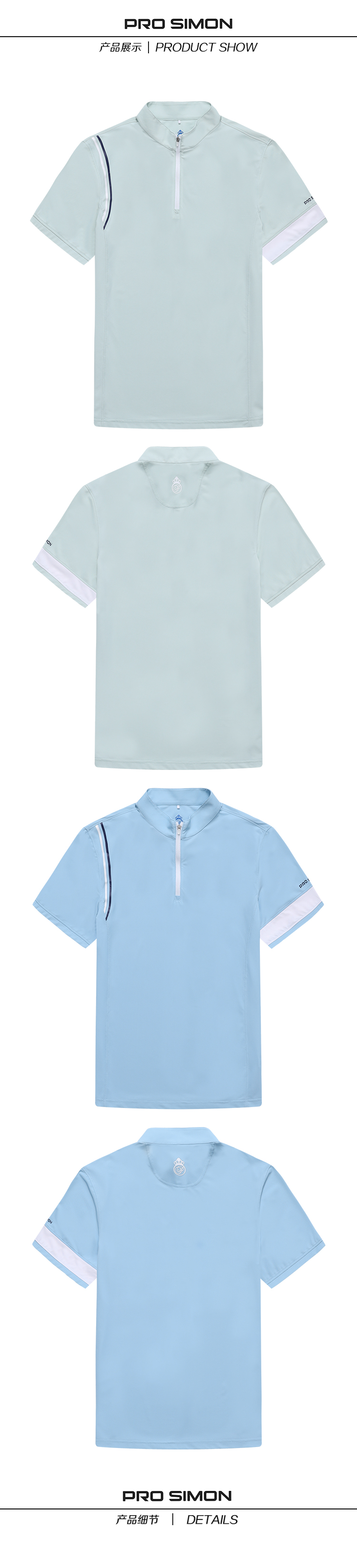 BNS-109A(PROSIMON高尔夫男款春夏拉链立领简约风短袖T恤)