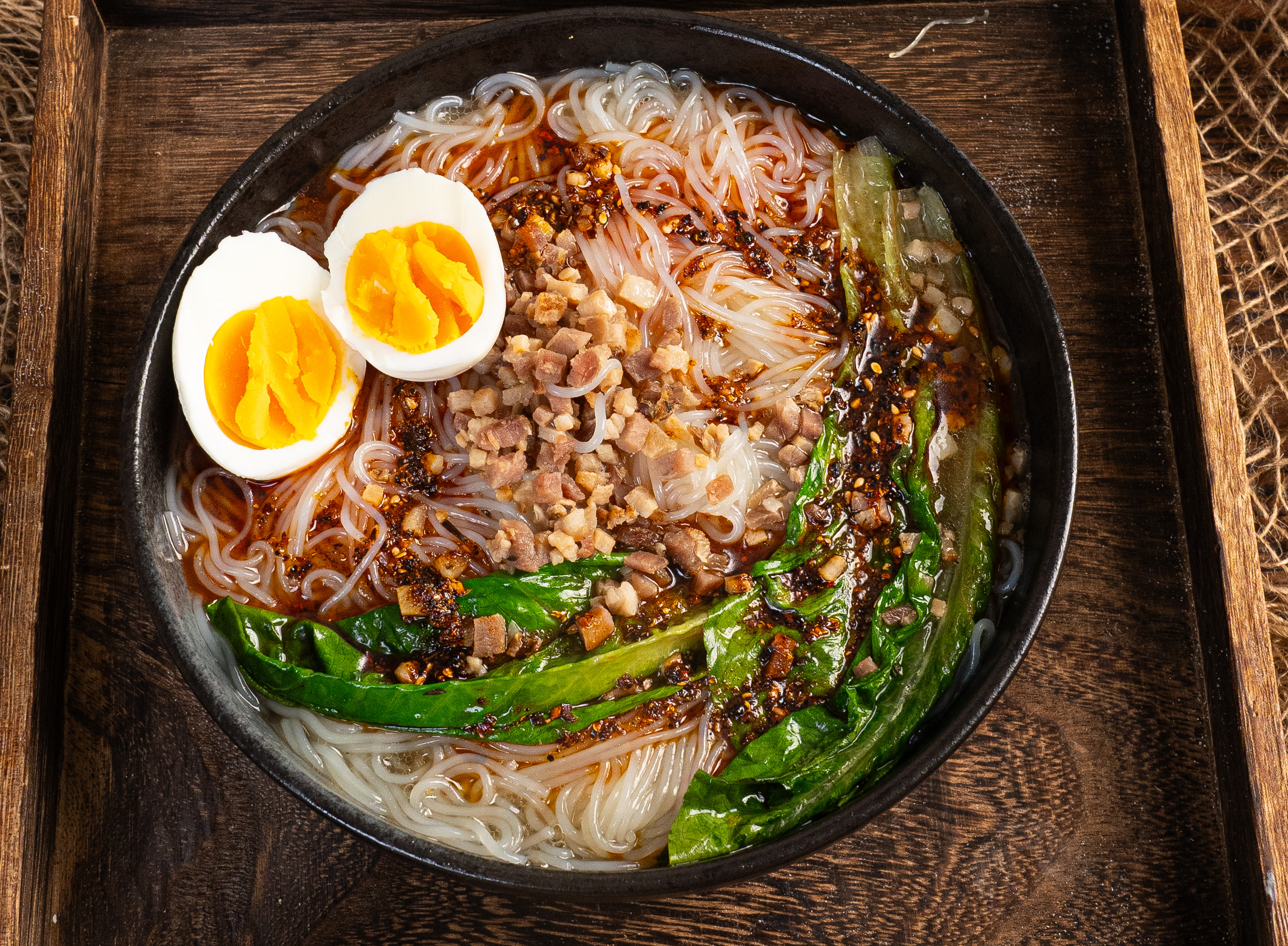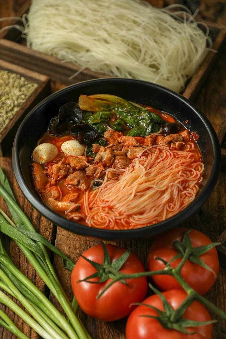 3.将煮好的米线倒入稀释后的鸡汤,根据个人口味适当加入麻辣料包后即可食用(可根据个人喜好适当加入各种蔬菜或者肉类)