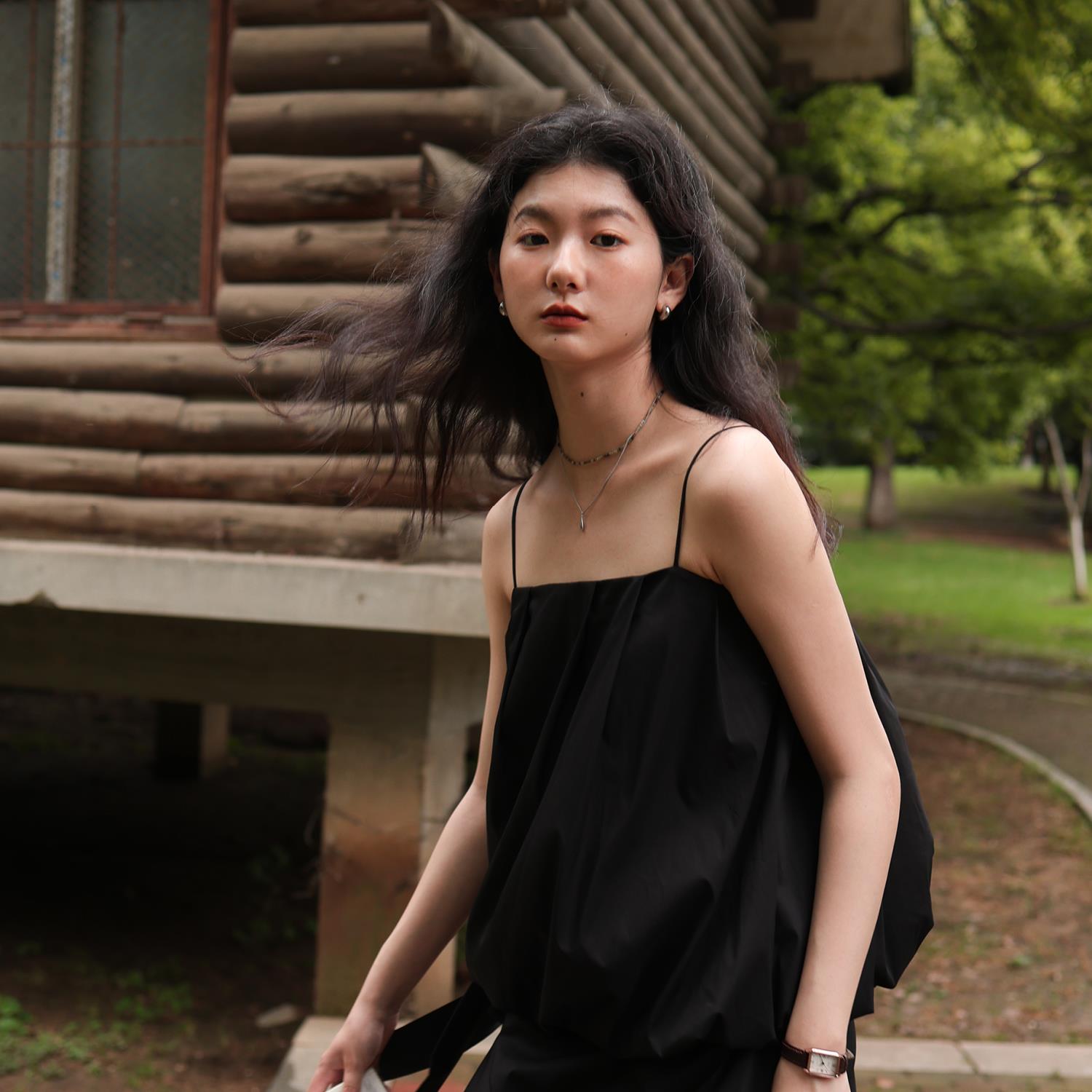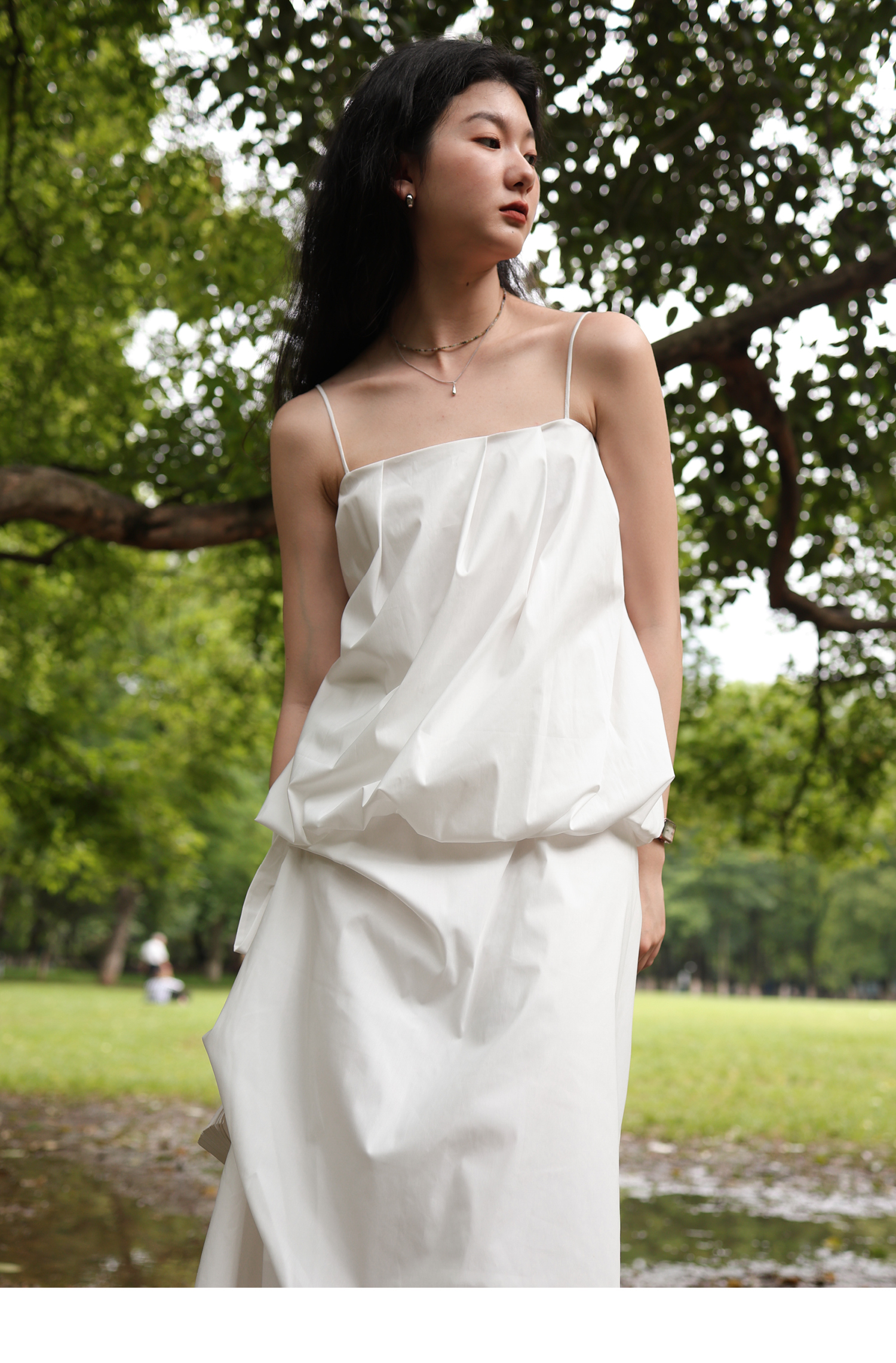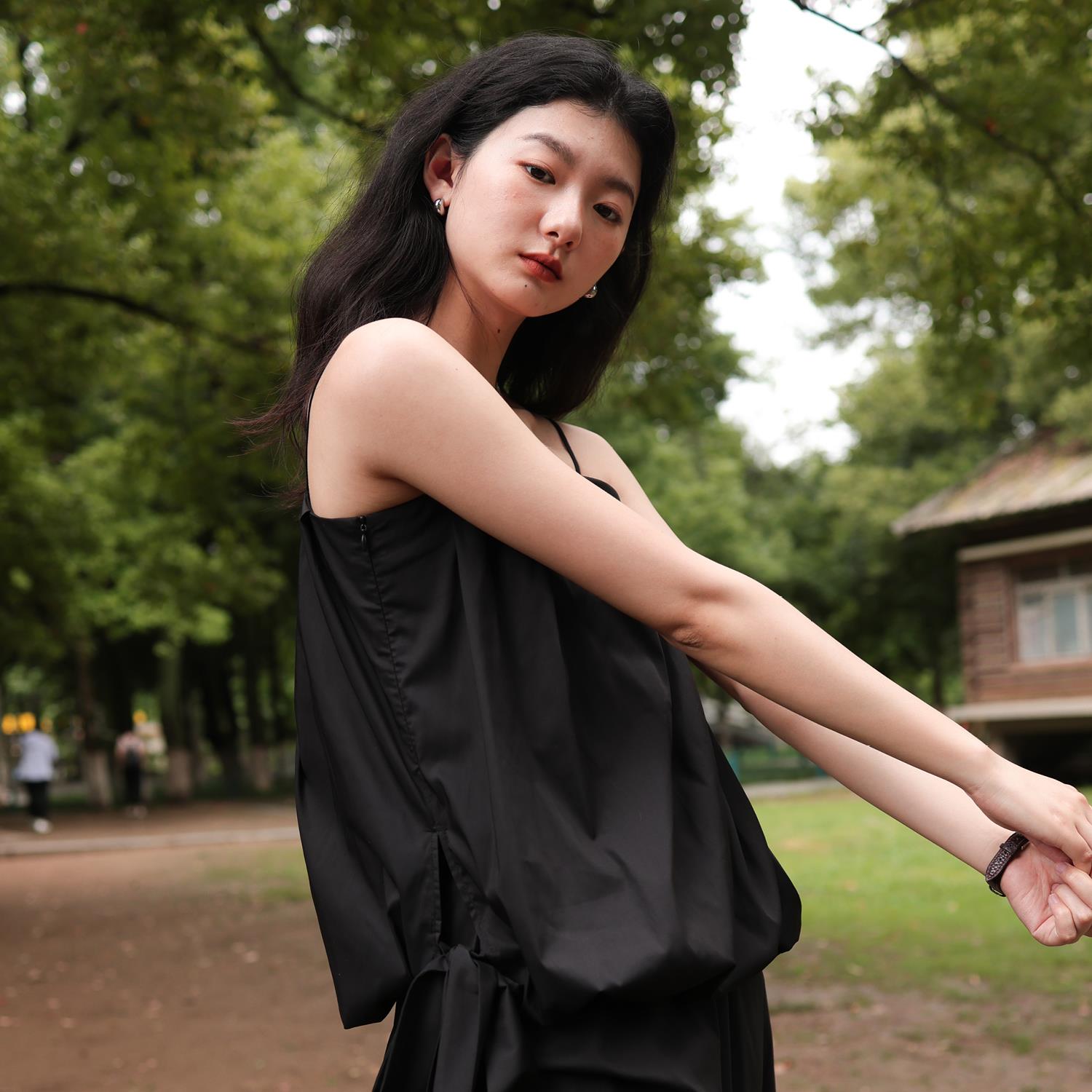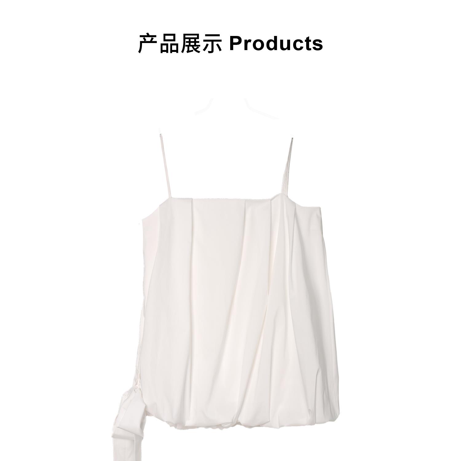 【4折不退换 买六免一】花苞量感褶皱设计感不对称系带吊带上衣
