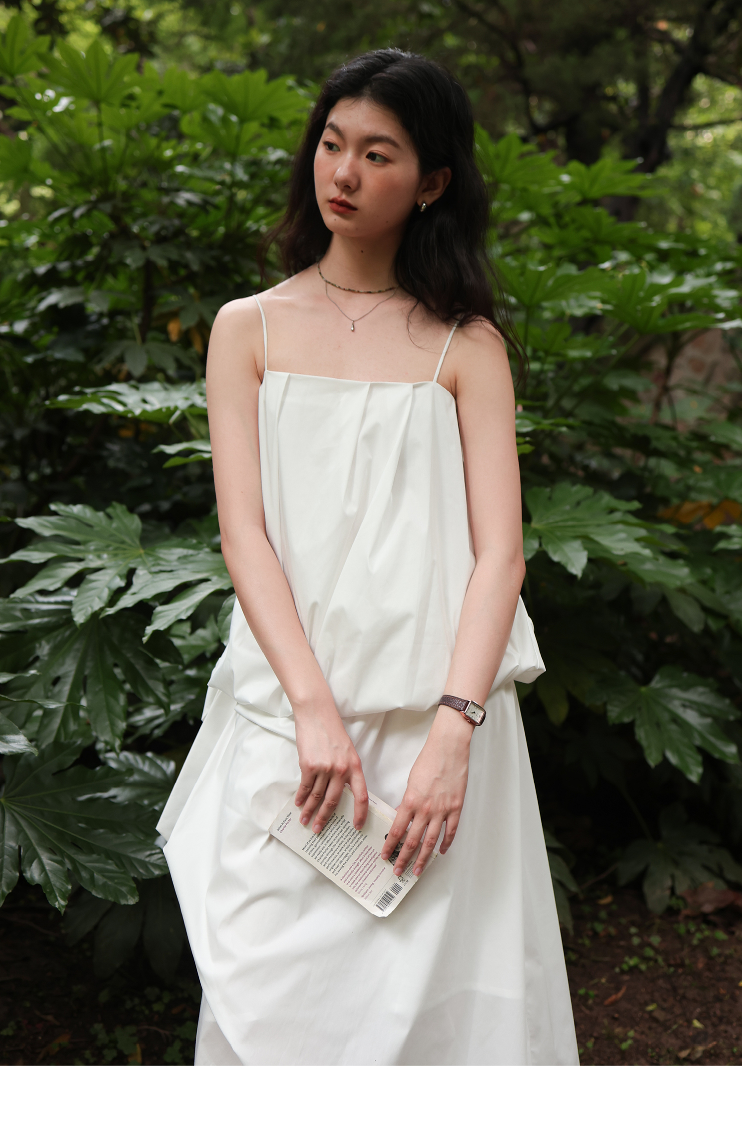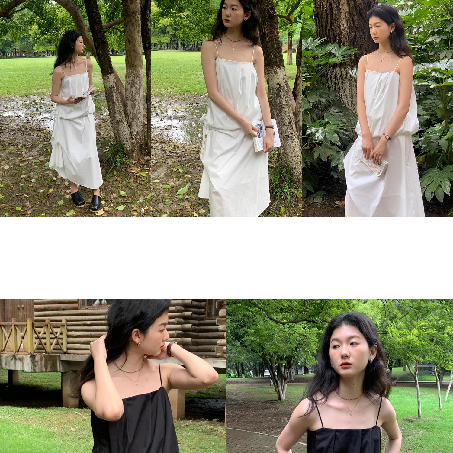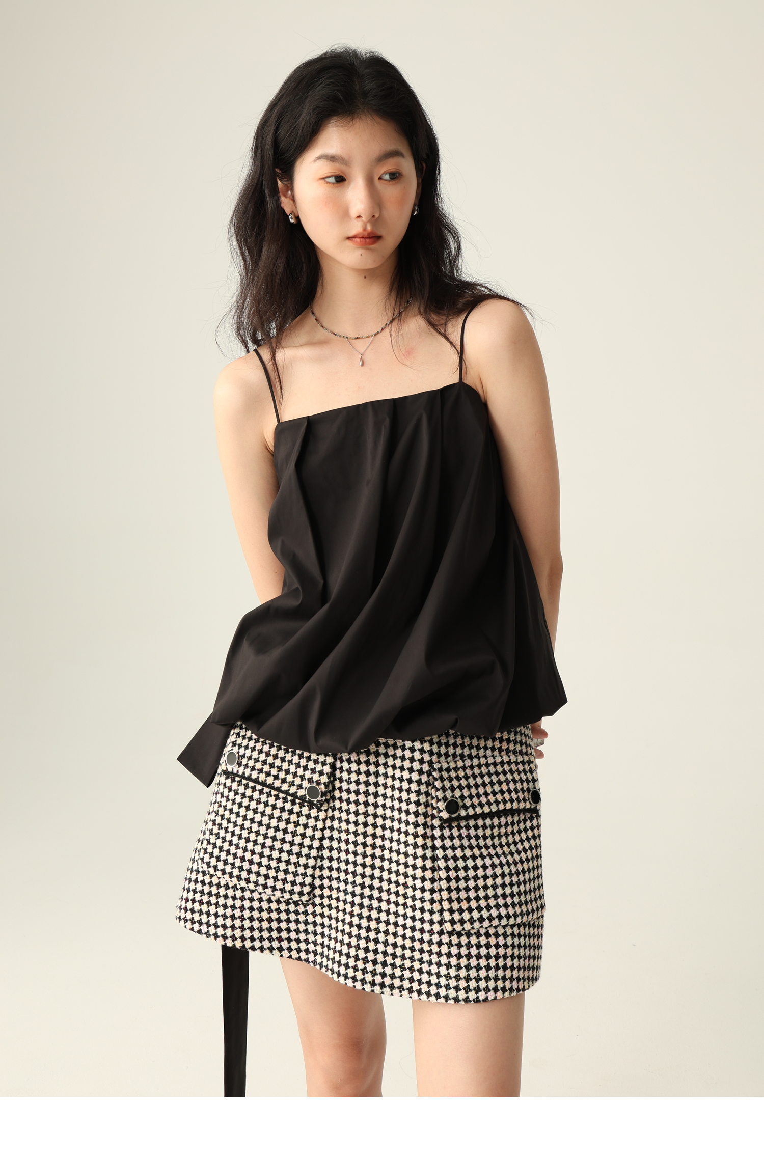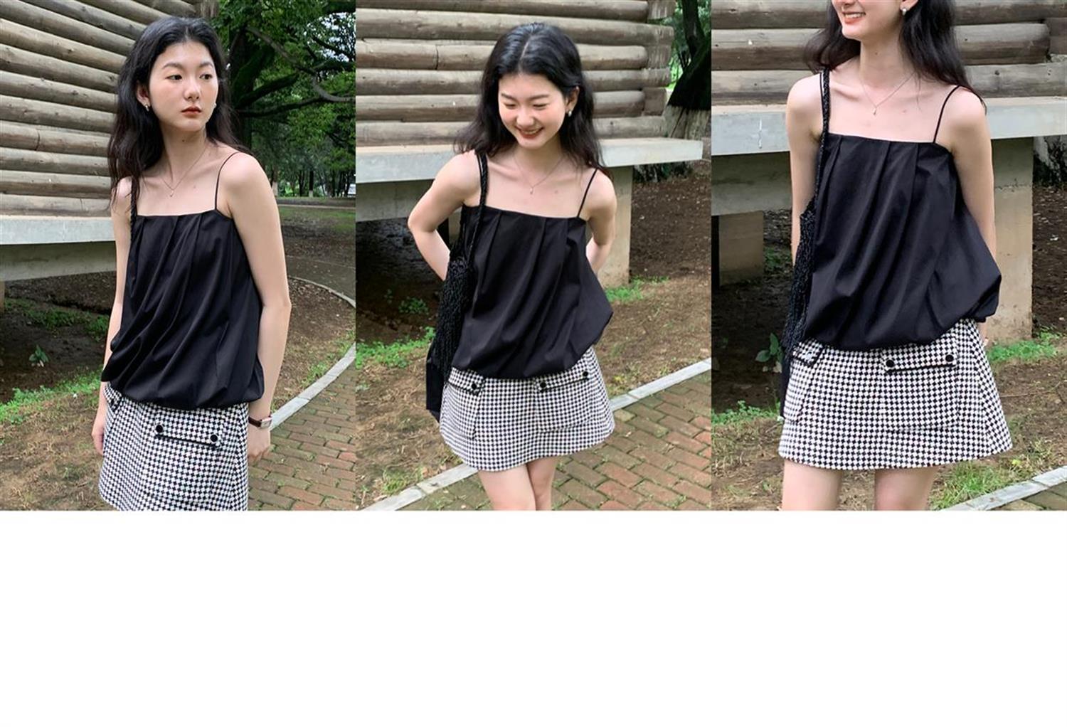 【4折不退换 买六免一】花苞量感褶皱设计感不对称系带吊带上衣