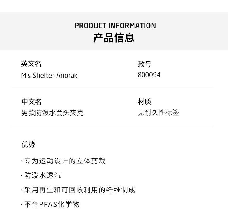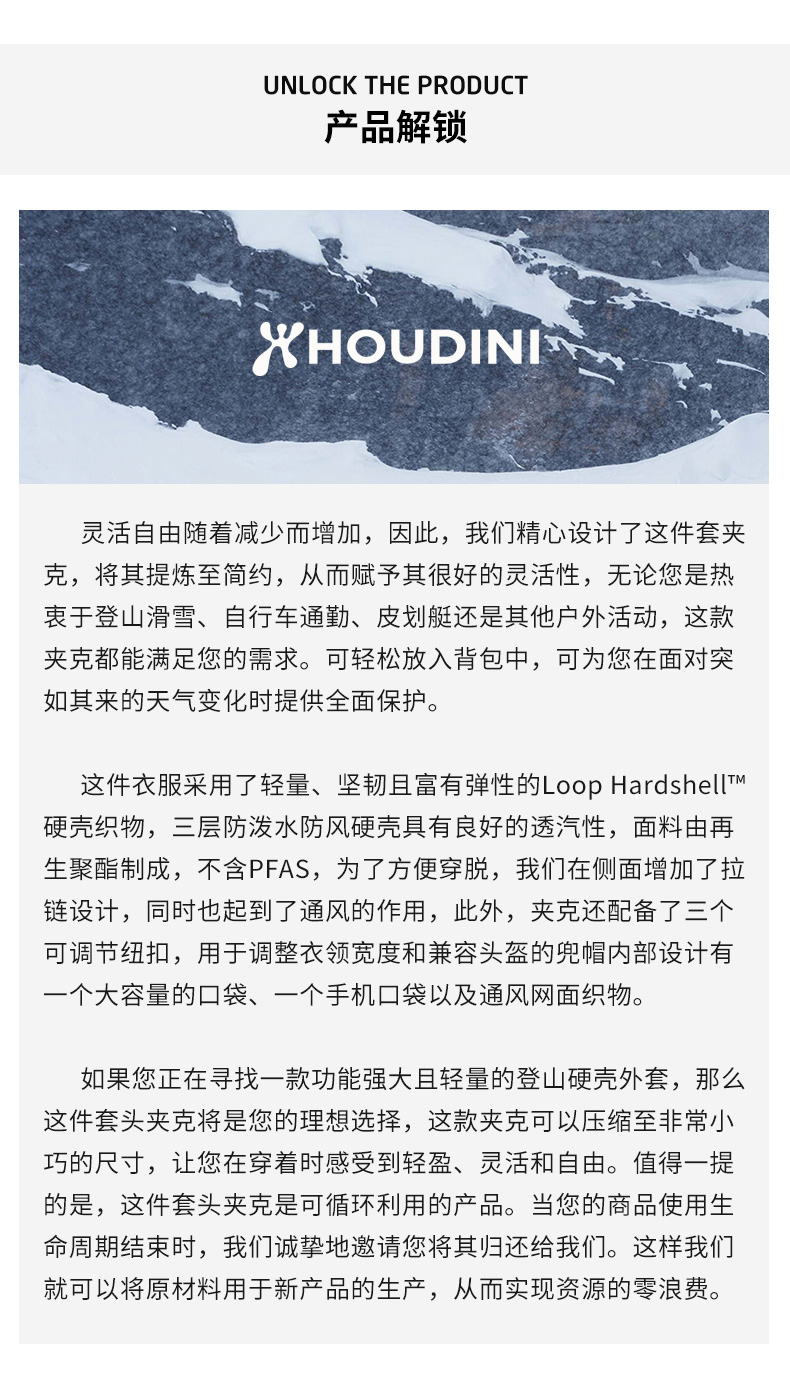 HOUDINI胡丁尼 Shelter Anorak 安全屋 男户外秋冬防泼水滑雪冲锋衣800094
