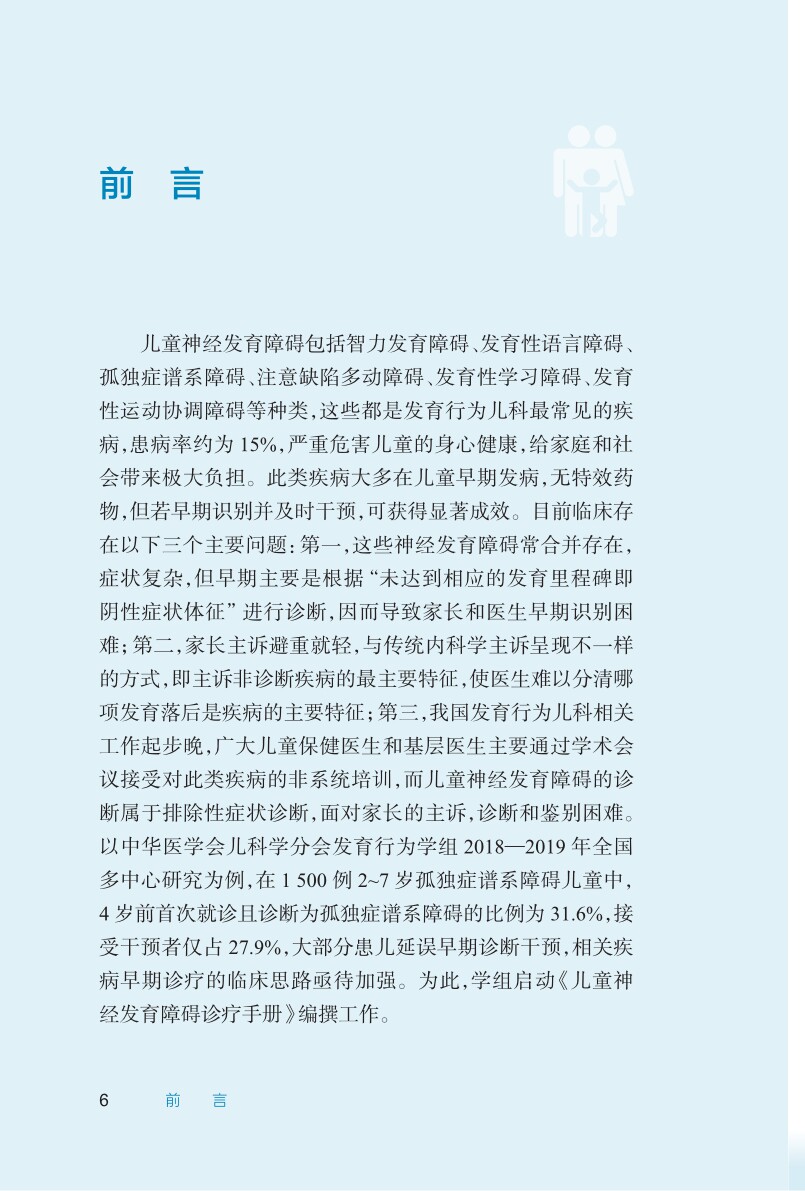 1.共包含3篇,主要内容有:神经发育障碍相关基础知识;常见儿童神经发育障碍的早期筛查、诊断标准与鉴别诊断、治疗方法、心理教育、家庭干预、诊疗与分层流程;WHO推荐和发育行为学组所发表共识、指南及解读。 2. 全书力求系统、实用、规范,指导临床实践。内容丰富,条理清晰,重点突出,可切实指导和规范规范神经发育障碍的诊治流程。