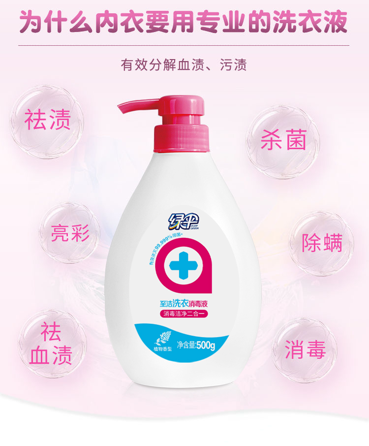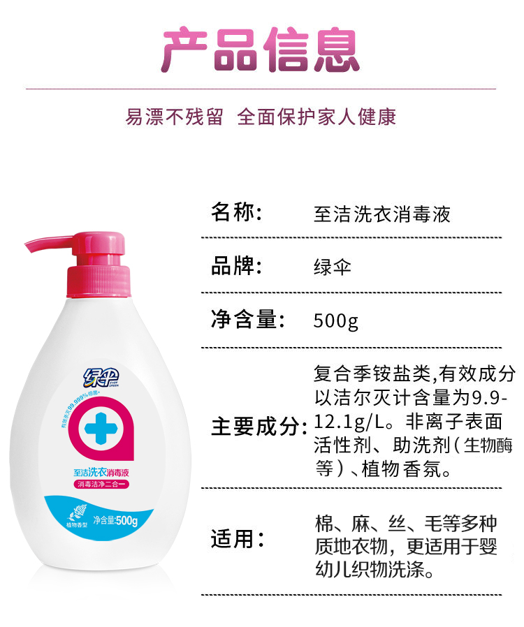 绿伞至洁洗衣消毒液500g强力去污杀菌洁净衣物宿舍家用