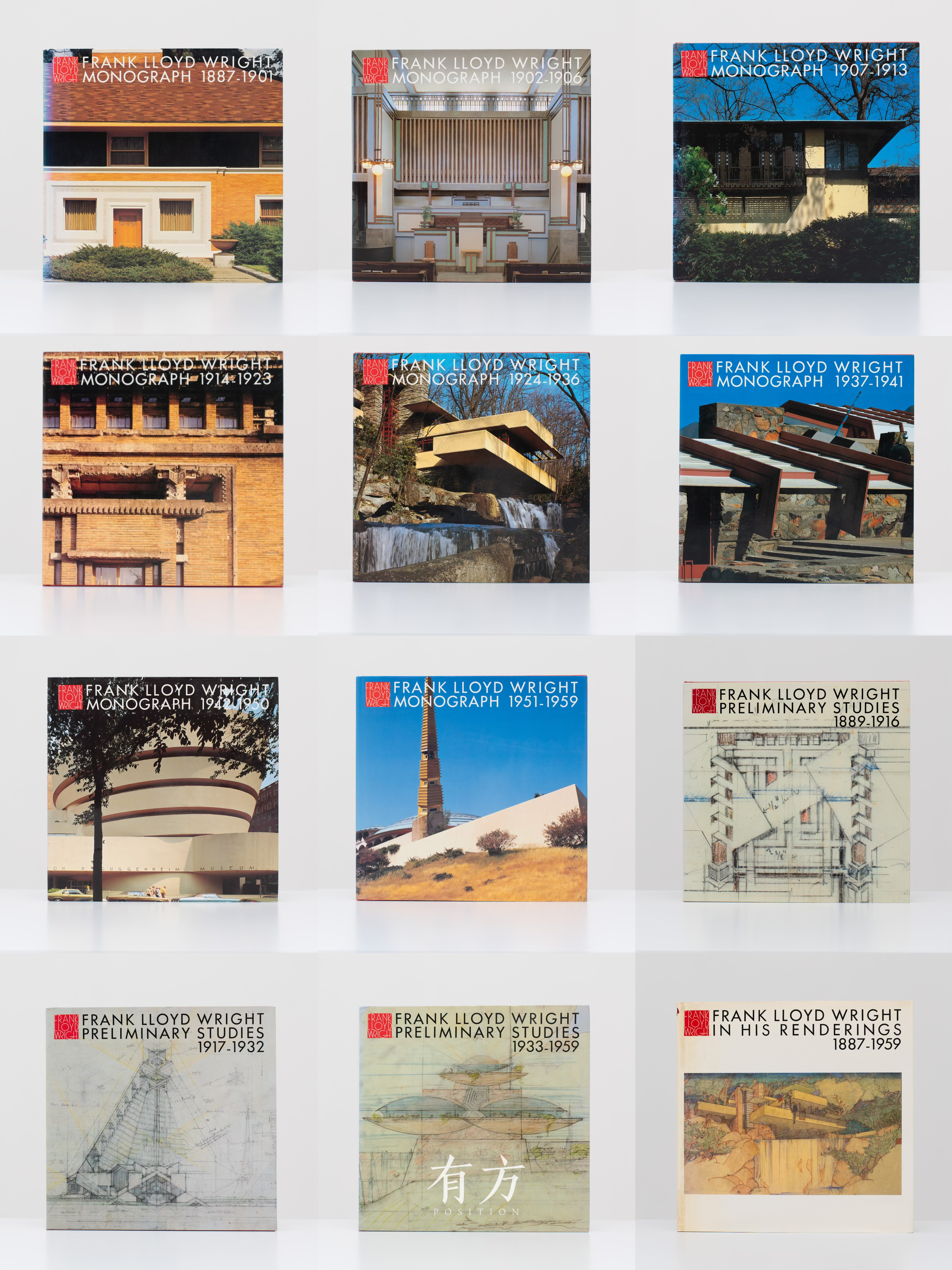 12卷书中,第1—8卷是赖特的作品展示,通过照片、图纸和文本全面研究了赖特的已知建筑和项目。