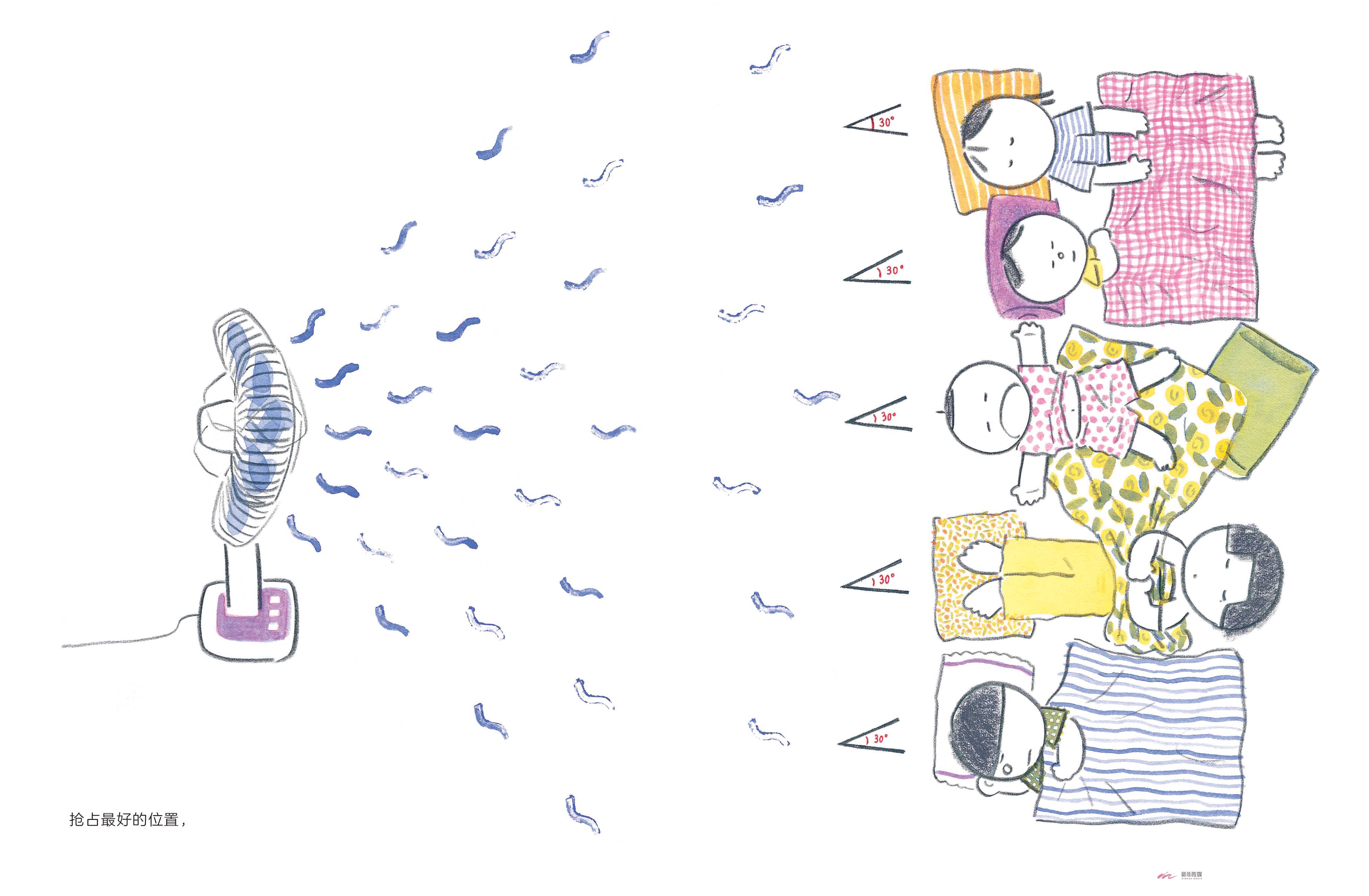 分享的方法太有趣,没想到还能这样分!1台电风扇吹出的风?大家并排睡就能每人平分30deg;,很公平!一双黄色雨靴?从老大、老二传到了老幺!